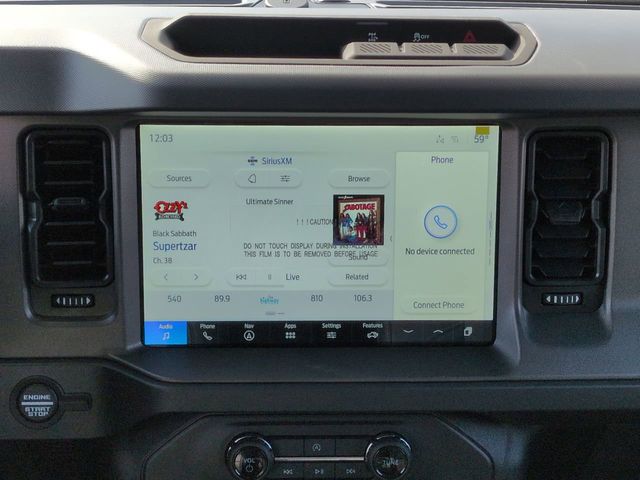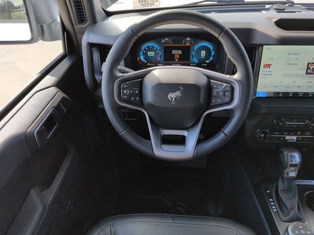 2025 Oxford White 2025 Ford Bronco Big Bend Big Bend 4D Sport Utility 4WD 2.3L EcoBoost I-4 4D Sport Utility, 2.3L EcoBoost I-4, 10-Speed Automatic, 4WD, 12" LCD Productivity Touchscreen, 2-Door Intelligent Access w/Lock/Unlock, Ambient Footwell Lighting, Auto Emergency Braking, Auto LED Headlights, Backup Camera, Connected Navigation, Dr & Pass Illuminated Sliding Visor Vanity Mirrors, Dual Smart Charging USB Ports, Dual-Zone Electronic Automatic Temperature Control, Emergency communication system: 911 Assist, Equipment Group 222A Mid Package, Front Row Heated Seats, Hill Start Assist, Integrated roll-over protection, Power Mirror Package, Power Outlet - Back Side of Center Floor Console, Power Package, Rear Parking Sensors, Trailer Tow Package (DIO). Equipment Group 222A Mid Package (2-Door Intelligent Access w/Lock/Unlock, Ambient Footwell Lighting, Connected Navigation, Dr & Pass Illuminated Sliding Visor Vanity Mirrors, Dual Smart Charging USB Ports, Dual-Zone Electronic Automatic Temperature Control, Front Row Heated Seats, Power Outlet - Back Side of Center Floor Console, and Rear Parking Sensors), Trailer Tow Package (DIO), 4D Sport Utility, 2.3L EcoBoost I-4, 10-Speed Automatic, 4WD, 12" LCD Productivity Touchscreen, Auto Emergency Braking, Auto LED Headlights, Backup Camera, Emergency communication system: 911 Assist, Hill Start Assist, Integrated roll-over protection, Power Mirror Package, Power Package, 4-Wheel Disc Brakes, 4.46 Axle Ratio, 7 Speakers, ABS brakes, Air Conditioning, Alloy wheels, AM/FM radio: SiriusXM with 360L, AM/FM Stereo, Auto High-beam Headlights, Brake assist, Carbonized Gray Molded-In-Color Hard Top, Cloth Bucket Seats, Compass, Delay-off headlights, Driver door bin, Driver vanity mirror, Dual front impact airbags, Dual front side impact airbags, Electronic Stability Control, Exterior Parking Camera Rear, Front anti-roll bar, Front Bucket Seats, Front Center Armrest, Front reading lights, Front wheel independent suspension, Fully automatic headlights, Hard Top Sound Deadening Headliner, Heated door mirrors, Illuminated entry, Leather Shift Knob, Low tire pressure warning, Occupant sensing airbag, Outside temperature display, Overhead airbag, Overhead console, Panic alarm, Passenger door bin, Passenger vanity mirror, Power door mirrors, Power steering, Power windows, Radio data system, Rear-Window Defroster & Washer, Remote keyless entry, Security system, SiriusXM w/360L, Speed control, Split folding rear seat, Steering wheel mounted audio controls, SYNC 4, Tachometer, Telescoping steering wheel, Tilt steering wheel, Traction control, Trip computer, Variably intermittent wipers, and Wheels: 17" Carbonized Gray-Painted Aluminum. Price includes: $1,000 - Exp. 12/31/2026 Retail Trade Assistance. Must trade in a vehicle to qualify $1,000 - Exp. 12/31/2026 Dealer Finance Assistance. Must finance through dealer lender to qualify.