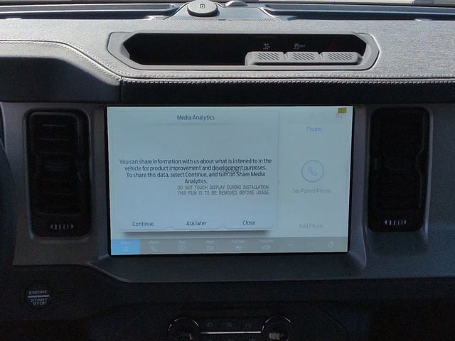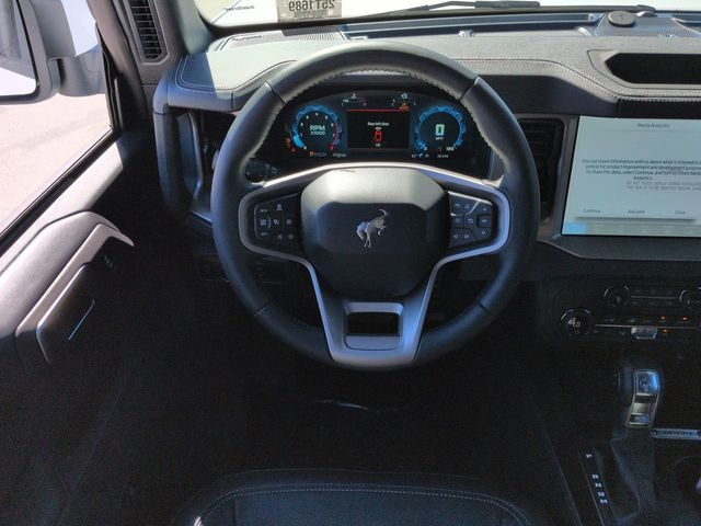 2025 Oxford White 2025 Ford Bronco Outer Banks Outer Banks 4D Sport Utility 4WD 2.7L EcoBoost V6 4D Sport Utility, 2.7L EcoBoost V6, 10-Speed Automatic, 4WD, 12" LCD Productivity Touchscreen, 360-Degree Camera, 360-Degree Camera, Adaptive Cruise Control, Adaptive Cruise Control, Equipment Group 314A Lux Package, Evasive Steering Assist, Front Parking Sensors, Hard Top Sound Deadening Headliner, Hill Start Assist, Information on Demand Panel, Leather Seats, Navigation system: Connected Navigation, Painted Hard Top, Power Mirror Package, Power Package, Push Button Start, Radio: B&O Sound System by Bang & Olufsen, Rear-Window Defroster & Washer, Sideview Mirrors, Trailer Tow Package (DIO), Universal Garage Door Opener. Equipment Group 314A Lux Package (360-Degree Camera, Adaptive Cruise Control, Evasive Steering Assist, Front Parking Sensors, Information on Demand Panel, Radio: B&O Sound System by Bang & Olufsen, Sideview Mirrors, and Universal Garage Door Opener), Trailer Tow Package (DIO), 4D Sport Utility, 2.7L EcoBoost V6, 10-Speed Automatic, 4WD, 12" LCD Productivity Touchscreen, 360-Degree Camera, Adaptive Cruise Control, Hard Top Sound Deadening Headliner, Hill Start Assist, Leather Seats, Navigation system: Connected Navigation, Painted Hard Top, Power Mirror Package, Power Package, Push Button Start, Rear-Window Defroster & Washer, 18" Bright Machined Aluminum Wheels, 3.73 Axle Ratio, 4-Wheel Disc Brakes, 7 Speakers, ABS brakes, Air Conditioning, Alloy wheels, AM/FM radio: SiriusXM with 360L, AM/FM Stereo, Auto High-beam Headlights, Auto-dimming Rear-View mirror, Automatic temperature control, Brake assist, Compass, Connected Navigation, Delay-off headlights, Driver door bin, Driver vanity mirror, Dual front impact airbags, Dual front side impact airbags, Electronic Stability Control, Emergency communication system: 911 Assist, Exterior Parking Camera Rear, Front anti-roll bar, Front Bucket Seats, Front Center Armrest, Front dual zone A/C, Front fog lights, Front reading lights, Front wheel independent suspension, Fully automatic headlights, Heated door mirrors, Heated front seats, Heated Leather-Trimmed/Vinyl Bucket Seats, Heated steering wheel, Illuminated entry, Integrated roll-over protection, Leather Shift Knob, Low tire pressure warning, Occupant sensing airbag, Outside temperature display, Overhead airbag, Overhead console, Panic alarm, Passenger door bin, Passenger vanity mirror, Power door mirrors, Power driver seat, Power passenger seat, Power steering, Power windows, Radio data system, Rear seat center armrest, Remote keyless entry, Security system, SiriusXM w/360L, Speed control, Split folding rear seat, Steering wheel mounted audio controls, SYNC 4, Tachometer, Telescoping steering wheel, Tilt steering wheel, Traction control, Trip computer, Variably intermittent wipers, and Voltmeter. $1,000 - Exp. 12/31/2026 Retail Trade Assistance. Must trade in a vehicle to qualify $1,000 - Exp. 12/31/2026 Dealer Finance Assistance. Must finance through dealer lender to qualify.