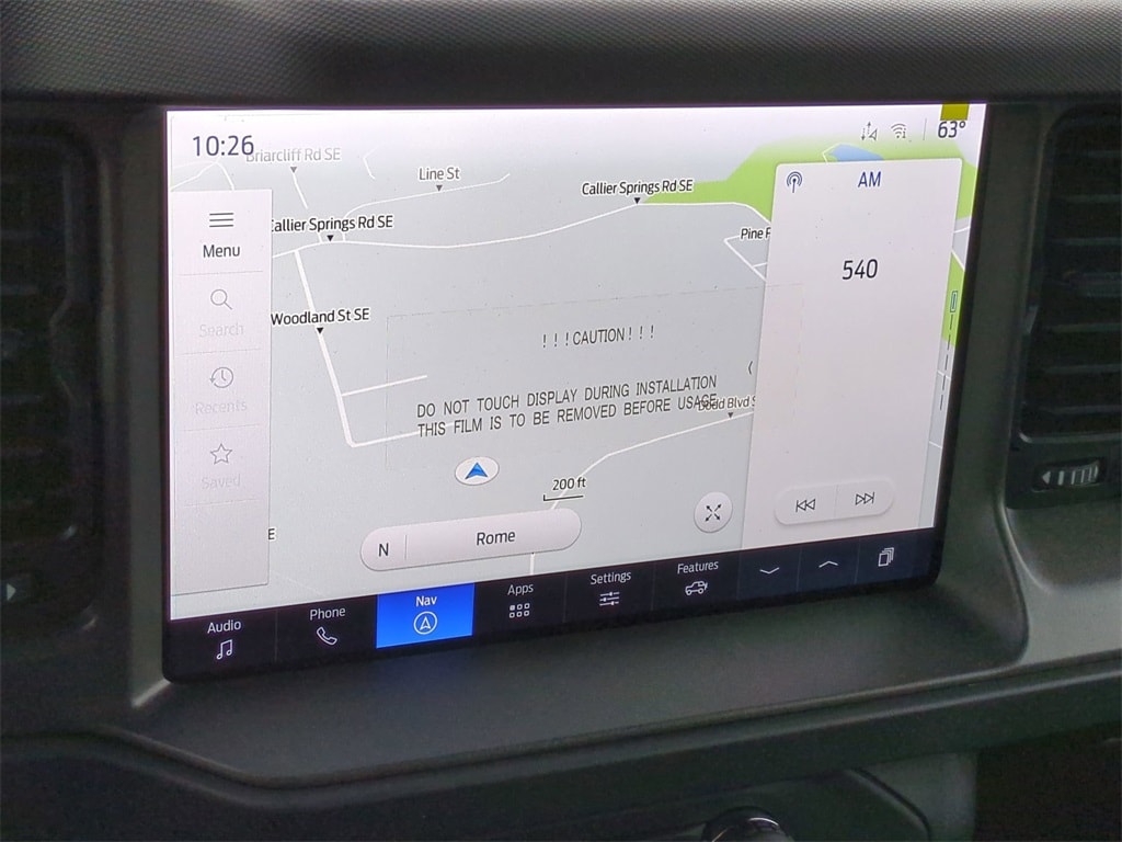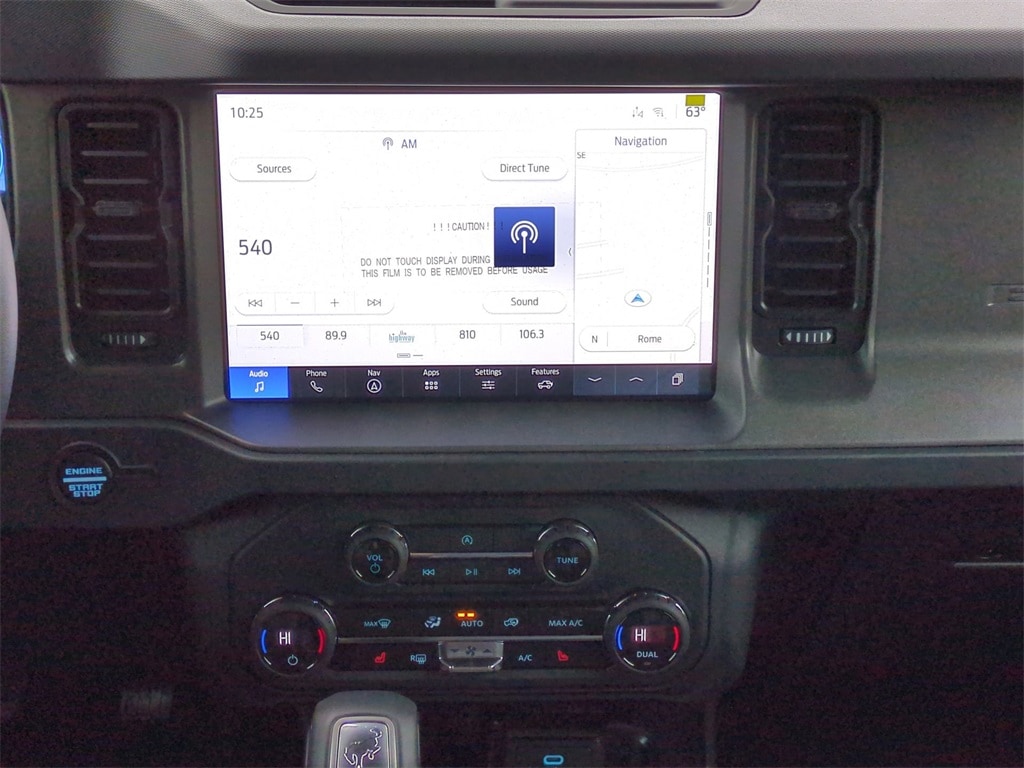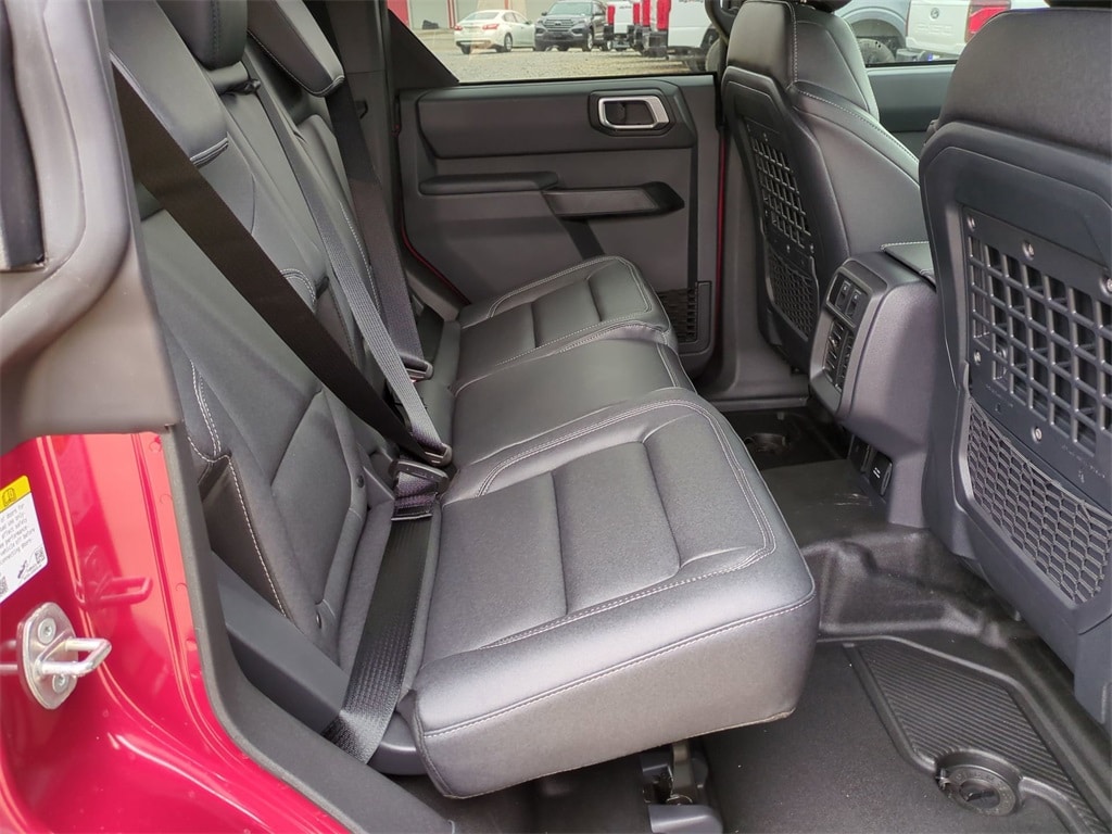 2025 Ruby Red Metallic Tinted Clearcoat 2025 Ford Bronco Big Bend 4WD 2.3L EcoBoost I-4 12" LCD Productivity Touchscreen, Auto LED Headlights, Backup Camera, Hill Start Assist, Power Mirror Package, Power Package, Push Button Start, Remote Start, 4D Sport Utility, 2.3L EcoBoost I-4, 4WD, 2-Door Intelligent Access w/Lock/Unlock, Ambient Footwell Lighting, Carbonized Gray Molded-In-Color Hard Top, Connected Navigation, Dr & Pass Illuminated Sliding Visor Vanity Mirrors, Dual Smart Charging USB Ports, Dual-Zone Electronic Automatic Temperature Control, Equipment Group 222A Mid Package, Front Row Heated Seats, Power Outlet - Back Side of Center Floor Console, Rear Parking Sensors, Rear-Window Defroster & Washer. Equipment Group 222A Mid Package (2-Door Intelligent Access w/Lock/Unlock, Ambient Footwell Lighting, Connected Navigation, Dr & Pass Illuminated Sliding Visor Vanity Mirrors, Dual Smart Charging USB Ports, Dual-Zone Electronic Automatic Temperature Control, Front Row Heated Seats, Power Outlet - Back Side of Center Floor Console, and Rear Parking Sensors), 4D Sport Utility, 2.3L EcoBoost I-4, 4WD, Carbonized Gray Molded-In-Color Hard Top, Rear-Window Defroster & Washer, 4-Wheel Disc Brakes, 4.46 Axle Ratio, 7 Speakers, ABS brakes, Air Conditioning, Alloy wheels, AM/FM radio: SiriusXM with 360L, AM/FM Stereo, Auto High-beam Headlights, Brake assist, Cloth Bucket Seats, Compass, Delay-off headlights, Driver door bin, Driver vanity mirror, Dual front impact airbags, Dual front side impact airbags, Electronic Stability Control, Emergency communication system: 911 Assist, Exterior Parking Camera Rear, Front anti-roll bar, Front Bucket Seats, Front Center Armrest, Front reading lights, Front wheel independent suspension, Fully automatic headlights, Heated door mirrors, Illuminated entry, Integrated roll-over protection, Leather Shift Knob, Low tire pressure warning, Occupant sensing airbag, Outside temperature display, Overhead airbag, Overhead console, Panic alarm, Passenger door bin, Passenger vanity mirror, Power door mirrors, Power steering, Power windows, Radio data system, Remote keyless entry, Security system, SiriusXM w/360L, Speed control, Split folding rear seat, Steering wheel mounted audio controls, SYNC 4, Tachometer, Telescoping steering wheel, Tilt steering wheel, Traction control, Trip computer, Variably intermittent wipers, and Wheels: 17" Carbonized Gray-Painted Aluminum Courtesy Ford and Lincoln of Rome 101 Hwy 411 E Rome, Ga 30161 ROMEFORDLINC.COM 706.235.4453.