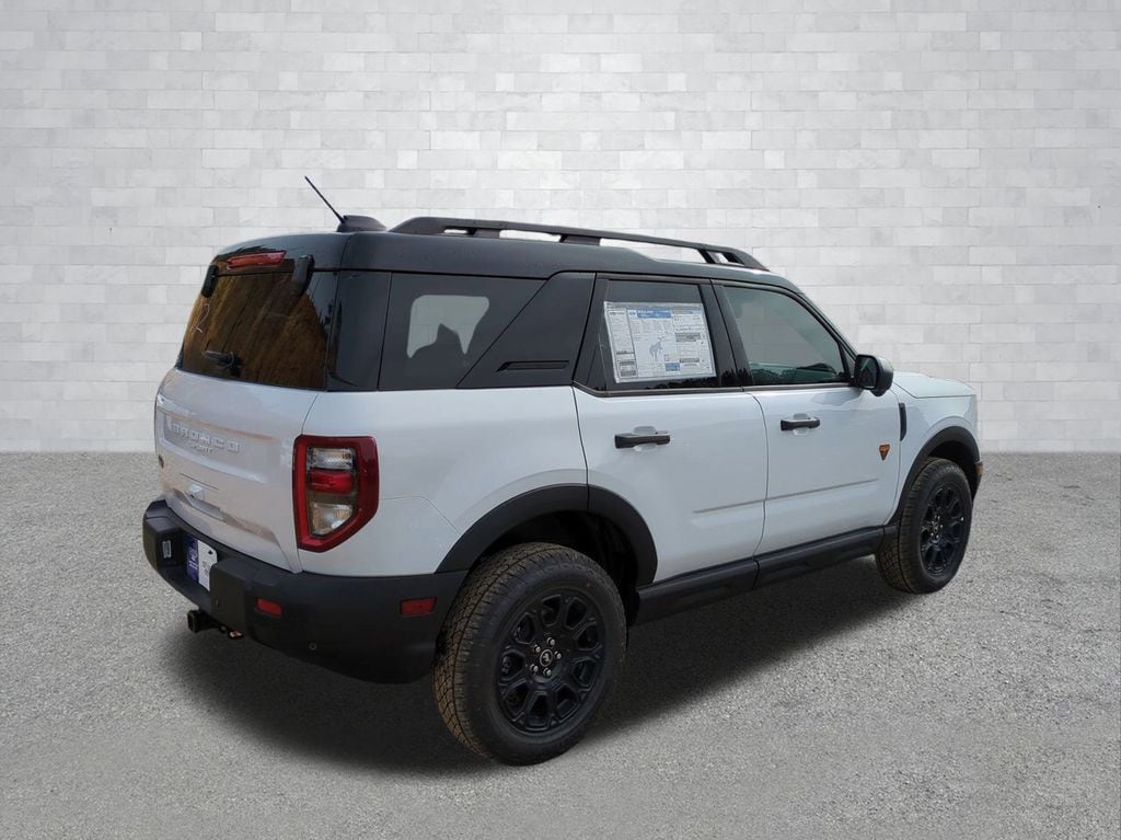 2025 Oxford White 2025 Ford Bronco Sport Badlands 4WD EcoBoost 2.0L I4 GTDi DOHC Turbocharged VCT 4-Wheel Disc Brakes, 6 Speakers, ABS brakes, Air Conditioning, Alloy wheels, AM/FM radio: SiriusXM, AM/FM Stereo, Auto High-beam Headlights, Auto-dimming Rear-View mirror, Automatic temperature control, Brake assist, Compass, Delay-off headlights, Driver door bin, Driver vanity mirror, Dual front impact airbags, Dual front side impact airbags, Electronic Stability Control, Emergency communication system: SYNC 4 911 Assist, Four wheel independent suspension, Front anti-roll bar, Front Bucket Seats, Front Center Armrest, Front fog lights, Front reading lights, Fully automatic headlights, Garage door transmitter, Heated door mirrors, Heated front seats, Heated steering wheel, Illuminated entry, Knee airbag, Leather Trimmed Front Bucket Seats, Low tire pressure warning, Memory seat, Occupant sensing airbag, Outside temperature display, Overhead airbag, Overhead console, Panic alarm, Passenger door bin, Passenger vanity mirror, Power door mirrors, Power driver seat, Power passenger seat, Power steering, Power windows, Radio data system, Rear anti-roll bar, Rear reading lights, Rear seat center armrest, Rear window defroster, Rear window wiper, Remote keyless entry, Security system, SiriusXM, Speed control, Speed-sensing steering, Speed-Sensitive Wipers, Split folding rear seat, Steering wheel mounted audio controls, SYNC 4 w/Enhanced Voice Recognition, Tachometer, Telescoping steering wheel, Tilt steering wheel, Traction control, Trip computer, Variably intermittent wipers, and Wheels: 17" Matte Black-Painted Aluminum Courtesy Ford and Lincoln of Rome 101 Hwy 411 E Rome, Ga 30161 ROMEFORDLINC.COM 706.235.4453.