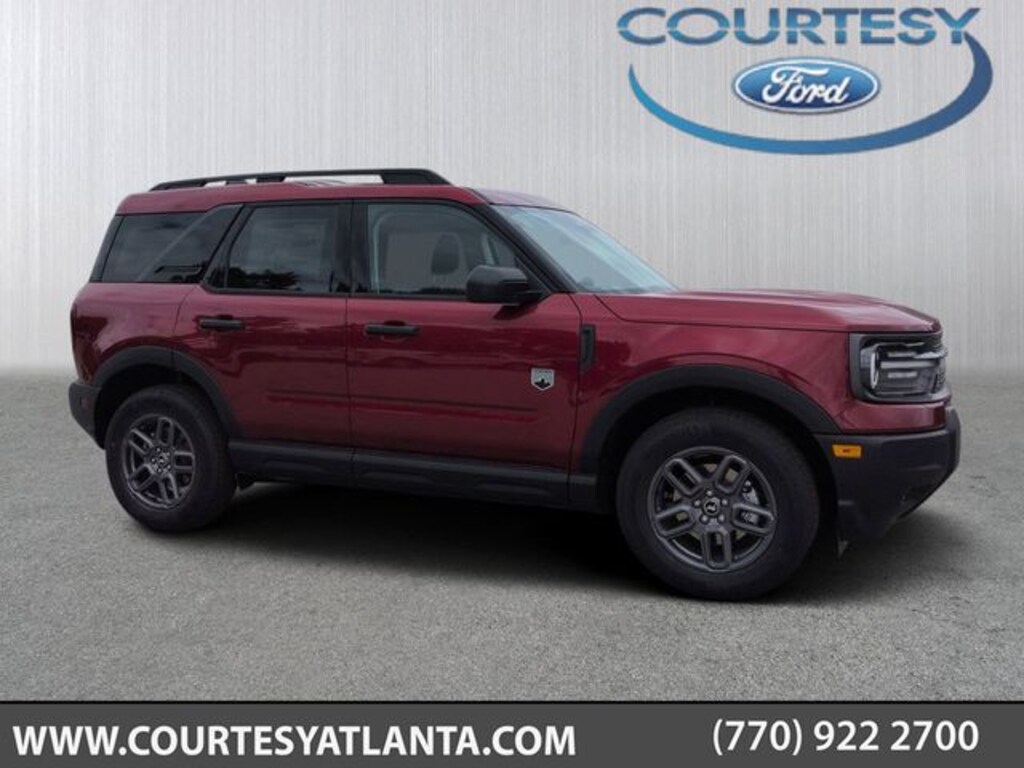 2025 Ruby Red Metallic Tinted Clearcoat 2025 Ford Bronco Sport Big Bend Big Bend 4D Sport Utility 4WD 1.5L EcoBoost 4D Sport Utility, 1.5L EcoBoost, 8-Speed Automatic, 4WD, 13.2" LCD Centerstack Touchscreen, Auto LED Headlights, Backup Camera, Convenience Package, Equipment Group 200A, Front Driver/Passenger Seat Back Map Pockets, Heated 8-Way Power Driver's Seat, LED Fog Lamps, Off Road Package, Premium Wrapped Steering Wheel, Universal Garage Door Opener (UGDO). Convenience Package (Front Driver/Passenger Seat Back Map Pockets, Heated 8-Way Power Driver's Seat, LED Fog Lamps, Premium Wrapped Steering Wheel, and Universal Garage Door Opener (UGDO)), Equipment Group 200A, 4D Sport Utility, 1.5L EcoBoost, 8-Speed Automatic, 4WD, 13.2" LCD Centerstack Touchscreen, Auto LED Headlights, Backup Camera, Off Road Package, 4-Wheel Disc Brakes, 6 Speakers, ABS brakes, Air Conditioning, Alloy wheels, AM/FM radio: SiriusXM, AM/FM Stereo, Auto High-beam Headlights, Automatic temperature control, Brake assist, Cloth w/Easy-to-Clean Front Bucket Seats, Compass, Delay-off headlights, Driver door bin, Driver vanity mirror, Dual front impact airbags, Dual front side impact airbags, Electronic Stability Control, Emergency communication system: SYNC 4 911 Assist, Four wheel independent suspension, Front anti-roll bar, Front Bucket Seats, Front Center Armrest, Front reading lights, Fully automatic headlights, Heated door mirrors, Illuminated entry, Knee airbag, Low tire pressure warning, Occupant sensing airbag, Outside temperature display, Overhead airbag, Overhead console, Panic alarm, Passenger door bin, Passenger vanity mirror, Power door mirrors, Power steering, Power windows, Radio data system, Rear anti-roll bar, Rear Parking Sensors, Rear reading lights, Rear seat center armrest, Rear window defroster, Rear window wiper, Remote keyless entry, Security system, SiriusXM, Speed control, Speed-sensing steering, Speed-Sensitive Wipers, Split folding rear seat, Steering wheel mounted audio controls, SYNC 4 w/Enhanced Voice Recognition, Tachometer, Telescoping steering wheel, Tilt steering wheel, Traction control, Trip computer, Variably intermittent wipers, and Wheels: 17" Carbonized Gray-Painted Aluminum.