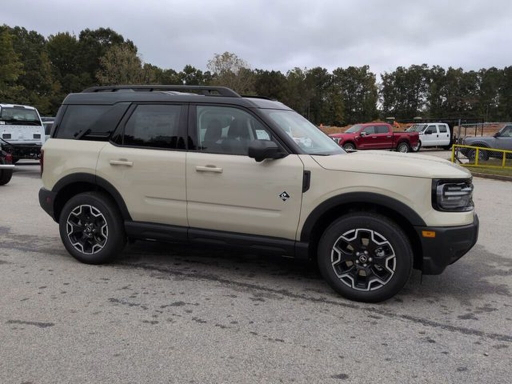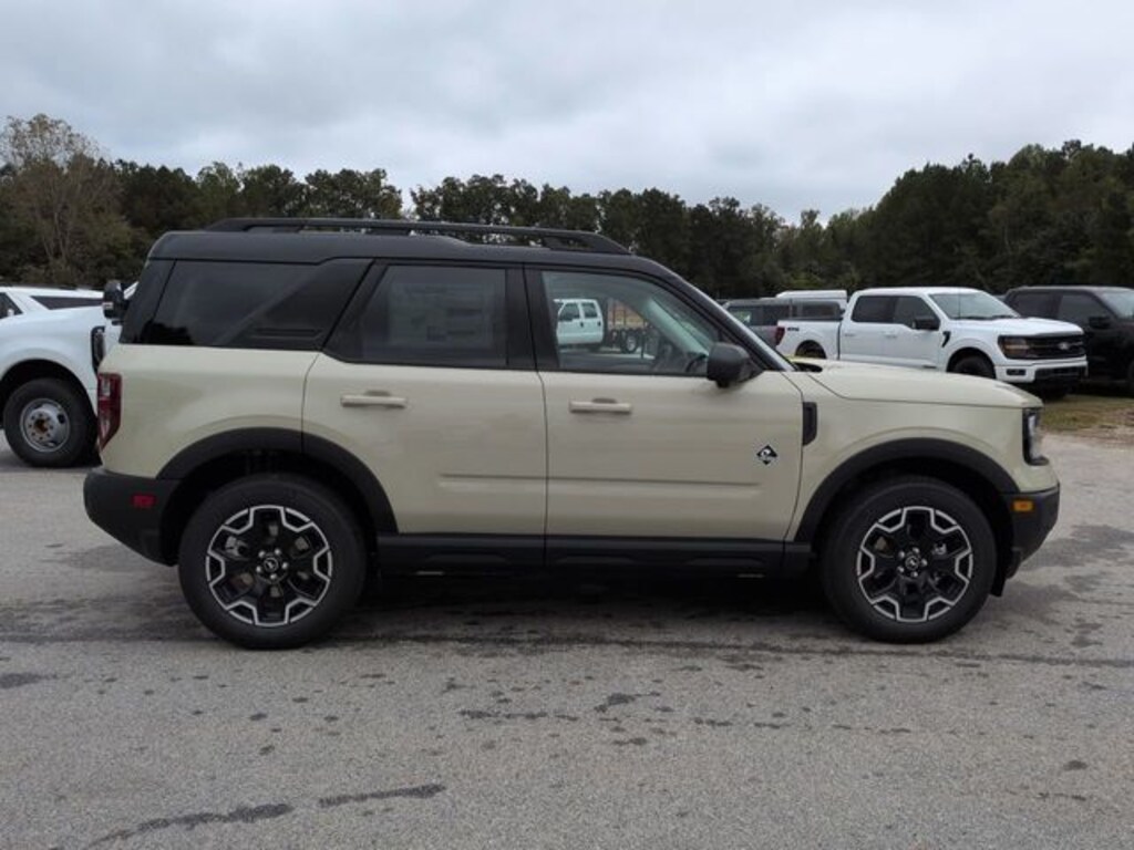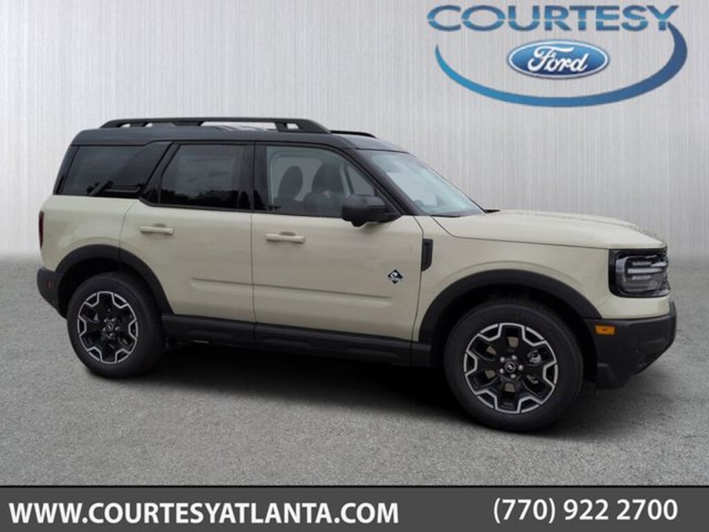 2025 Desert Sand 2025 Ford Bronco Sport Outer Banks Outer Banks 4D Sport Utility 4WD 1.5L EcoBoost 4D Sport Utility, 1.5L EcoBoost, 8-Speed Automatic, 4WD, 13.2" LCD Centerstack Touchscreen, 5G WiFi Hotspot Telematics, Auto LED Headlights, B&O Sound System by Bang & Olufsen, Backup Camera, Bluetooth w/ Audio Streaming, Connected Navigation, Equipment Group 300A, HD Radio, Outer Banks Tech Package+, Premium Sound Package, Push Button Start, Remote Start. Equipment Group 300A, Outer Banks Tech Package+ (B&O Sound System by Bang & Olufsen, Connected Navigation, and HD Radio), 4D Sport Utility, 1.5L EcoBoost, 8-Speed Automatic, 4WD, 13.2" LCD Centerstack Touchscreen, 5G WiFi Hotspot Telematics, Auto LED Headlights, Backup Camera, Bluetooth w/ Audio Streaming, Premium Sound Package, Push Button Start, Remote Start, 360-Degree Camera w/Trail & Split View, 4-Wheel Disc Brakes, 6 Speakers, ABS brakes, Air Conditioning, Alloy wheels, AM/FM radio: SiriusXM, AM/FM Stereo, Auto High-beam Headlights, Auto-dimming Rear-View mirror, Automatic temperature control, Brake assist, Compass, Delay-off headlights, Driver door bin, Driver vanity mirror, Dual front impact airbags, Dual front side impact airbags, Electronic Stability Control, Emergency communication system: SYNC 4 911 Assist, Four wheel independent suspension, Front anti-roll bar, Front Bucket Seats, Front Center Armrest, Front Driver/Passenger Seat Back Map Pockets, Front dual zone A/C, Front fog lights, Front Parking Sensors, Front reading lights, Fully automatic headlights, Garage door transmitter, Heated door mirrors, Heated front seats, Heated steering wheel, Illuminated entry, Knee airbag, Low tire pressure warning, Memory seat, Occupant sensing airbag, Outside temperature display, Overhead airbag, Overhead console, Panic alarm, Passenger door bin, Passenger vanity mirror, Power door mirrors, Power driver seat, Power passenger seat, Power steering, Power windows, Premium Trimmed Front Bucket Seats w/Ebony/Roast, Radio data system, Rain sensing wipers, Rear anti-roll bar, Rear Parking Sensors, Rear reading lights, Rear seat center armrest, Rear window defroster, Rear window wiper, Remote keyless entry, Reverse Brake Assist, Security system, SiriusXM, Speed control, Speed-sensing steering, Speed-Sensitive Wipers, Split folding rear seat, Steering wheel mounted audio controls, SYNC 4 w/Enhanced Voice Recognition, Tachometer, Telescoping steering wheel, Tilt steering wheel, Traction control, Trip computer, and Wheels: 18" Ebony Black-Painted Aluminum.