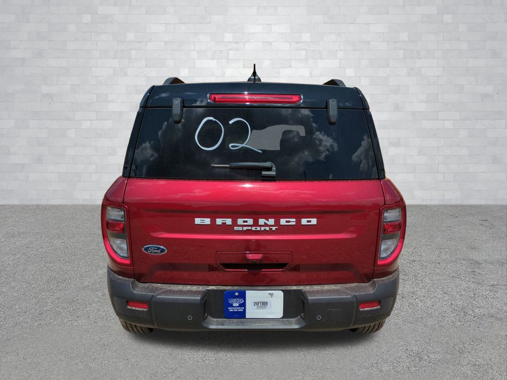 2025 Ruby Red Metallic Tinted Clearcoat 2025 Ford Bronco Sport Outer Banks 4WD 1.5L EcoBoost Equipment Group 300A, Outer Banks Tech Package+ (B&O Sound System by Bang & Olufsen, Connected Navigation, and HD Radio), 360-Degree Camera w/Trail & Split View, 4-Wheel Disc Brakes, 6 Speakers, ABS brakes, Air Conditioning, Alloy wheels, AM/FM radio: SiriusXM, AM/FM Stereo, Auto High-beam Headlights, Auto-dimming Rear-View mirror, Automatic temperature control, Brake assist, Compass, Delay-off headlights, Driver door bin, Driver vanity mirror, Dual front impact airbags, Dual front side impact airbags, Electronic Stability Control, Emergency communication system: SYNC 4 911 Assist, Four wheel independent suspension, Front anti-roll bar, Front Bucket Seats, Front Center Armrest, Front Driver/Passenger Seat Back Map Pockets, Front dual zone A/C, Front fog lights, Front Parking Sensors, Front reading lights, Fully automatic headlights, Garage door transmitter, Heated door mirrors, Heated front seats, Heated steering wheel, Illuminated entry, Knee airbag, Low tire pressure warning, Memory seat, Occupant sensing airbag, Outside temperature display, Overhead airbag, Overhead console, Panic alarm, Passenger door bin, Passenger vanity mirror, Power door mirrors, Power driver seat, Power passenger seat, Power steering, Power windows, Premium Trimmed Front Bucket Seats w/Ebony/Roast, Radio data system, Rain sensing wipers, Rear anti-roll bar, Rear Parking Sensors, Rear reading lights, Rear seat center armrest, Rear window defroster, Rear window wiper, Remote keyless entry, Reverse Brake Assist, Security system, SiriusXM, Speed control, Speed-sensing steering, Speed-Sensitive Wipers, Split folding rear seat, Steering wheel mounted audio controls, SYNC 4 w/Enhanced Voice Recognition, Tachometer, Telescoping steering wheel, Tilt steering wheel, Traction control, Trip computer, Variably intermittent wipers, and Wheels: 18" Ebony Black-Painted Aluminum Courtesy Ford and Lincoln of Rome 101 Hwy 411 E Rome, Ga 30161 ROMEFORDLINC.COM 706.235.4453.