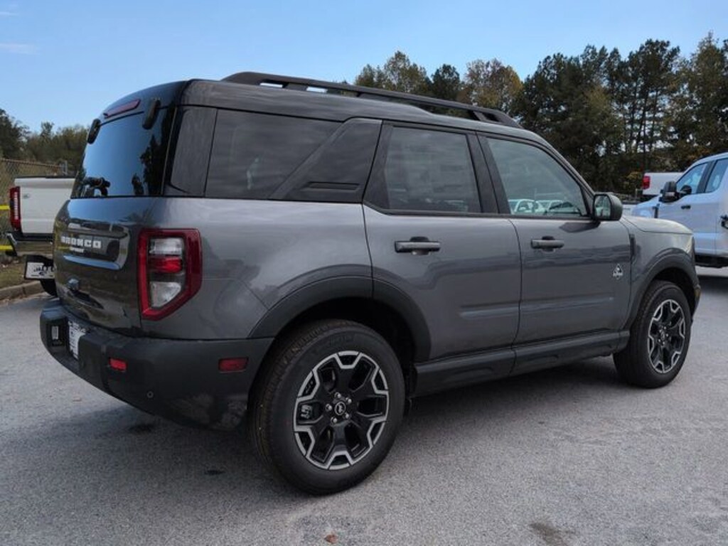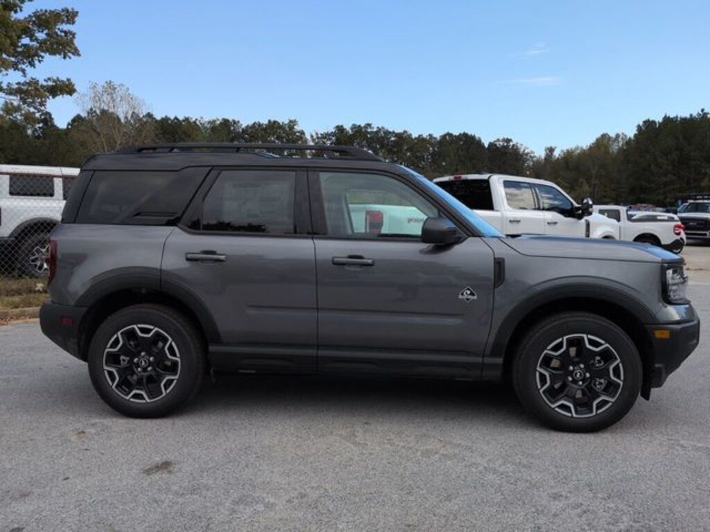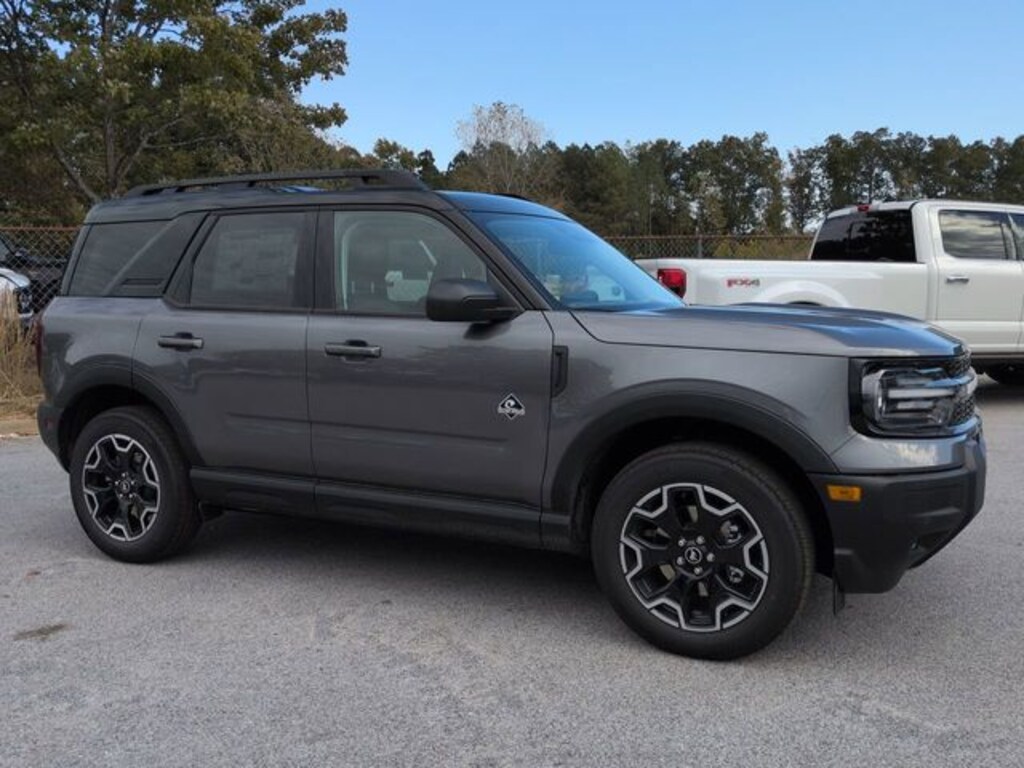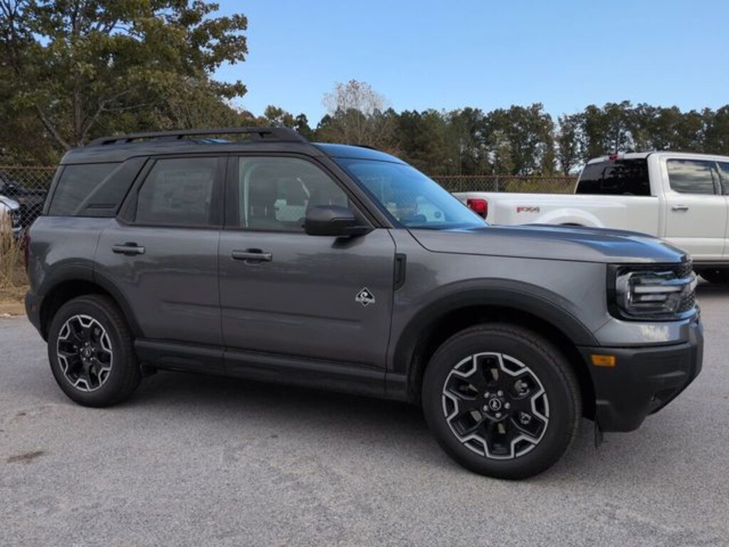 2025 Carbonized Gray Metallic 2025 Ford Bronco Sport Outer Banks Outer Banks 4D Sport Utility 4WD 1.5L EcoBoost 4D Sport Utility, 1.5L EcoBoost, 8-Speed Automatic, 4WD, 13.2" LCD Centerstack Touchscreen, Auto LED Headlights, Backup Camera, Equipment Group 300A, Push Button Start, Remote Start. Equipment Group 300A, 4D Sport Utility, 1.5L EcoBoost, 8-Speed Automatic, 4WD, 13.2" LCD Centerstack Touchscreen, Auto LED Headlights, Backup Camera, Push Button Start, Remote Start, 4-Wheel Disc Brakes, 6 Speakers, ABS brakes, Air Conditioning, Alloy wheels, AM/FM radio: SiriusXM, AM/FM Stereo, Auto High-beam Headlights, Auto-dimming Rear-View mirror, Automatic temperature control, Brake assist, Compass, Delay-off headlights, Driver door bin, Driver vanity mirror, Dual front impact airbags, Dual front side impact airbags, Electronic Stability Control, Emergency communication system: SYNC 4 911 Assist, Four wheel independent suspension, Front anti-roll bar, Front Bucket Seats, Front Center Armrest, Front Driver/Passenger Seat Back Map Pockets, Front dual zone A/C, Front fog lights, Front reading lights, Fully automatic headlights, Garage door transmitter, Heated door mirrors, Heated front seats, Heated steering wheel, Illuminated entry, Knee airbag, Low tire pressure warning, Memory seat, Occupant sensing airbag, Outside temperature display, Overhead airbag, Overhead console, Panic alarm, Passenger door bin, Passenger vanity mirror, Power door mirrors, Power driver seat, Power passenger seat, Power steering, Power windows, Premium Trimmed Front Bucket Seats w/Ebony/Roast, Premium Trimmed Front Bucket Seats w/Platinum Blue, Radio data system, Rain sensing wipers, Rear anti-roll bar, Rear Parking Sensors, Rear reading lights, Rear seat center armrest, Rear window defroster, Rear window wiper, Remote keyless entry, Security system, SiriusXM, Speed control, Speed-sensing steering, Speed-Sensitive Wipers, Split folding rear seat, Steering wheel mounted audio controls, SYNC 4 w/Enhanced Voice Recognition, Tachometer, Telescoping steering wheel, Tilt steering wheel, Traction control, Trip computer, and Wheels: 18" Ebony Black-Painted Aluminum.