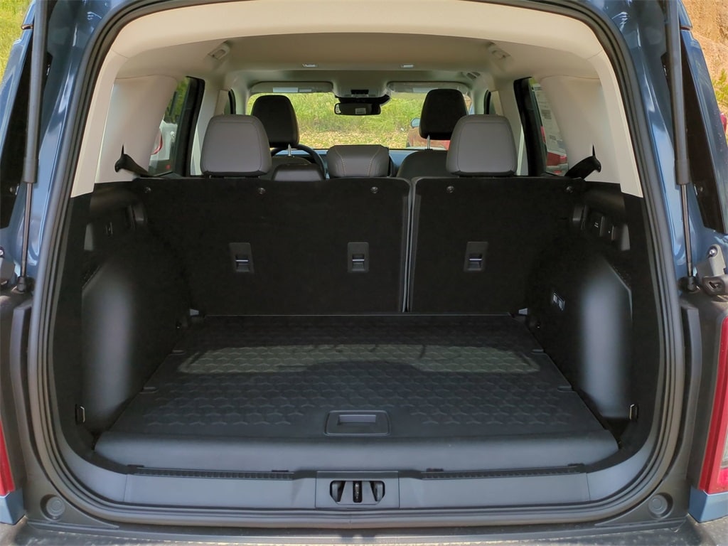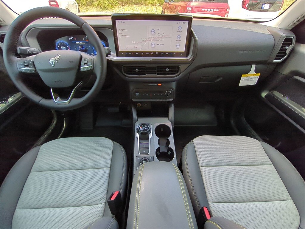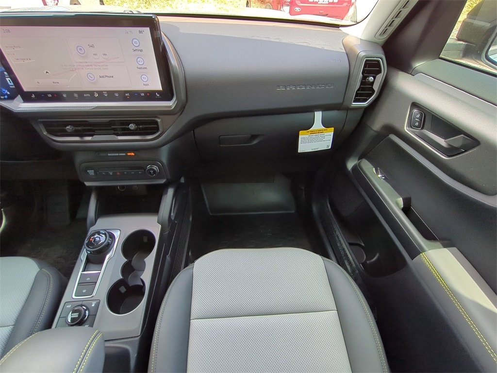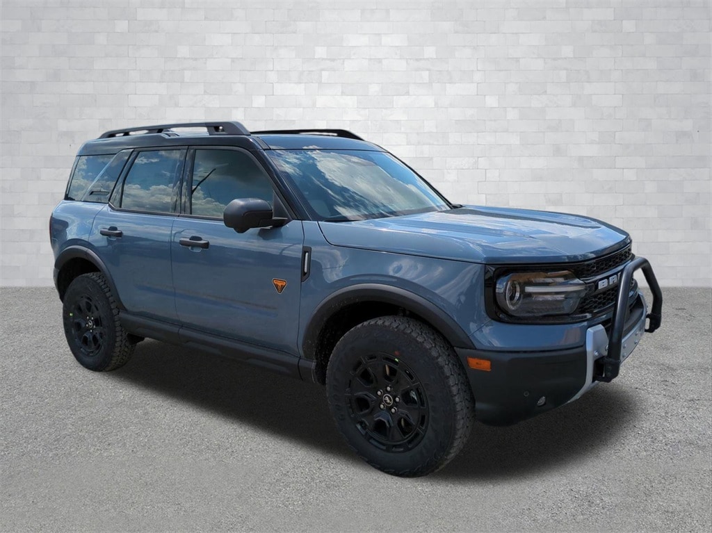2025 Azure Gray Metallic Tri-Coat 2025 Ford Bronco Sport Badlands 4WD EcoBoost 2.0L I4 GTDi DOHC Turbocharged VCT Badlands Tech Package (B&O Sound System by Bang & Olufsen, Connected Navigation, and HD Radio), Equipment Group 400A, Sasquatch Badlands Package (850W Engine Cooling Fan, Auxiliary Switches & Wiring, Brush Guard, Fender Tie Downs, High Clearance Fender Flares, HOSS 3.0 Off-Road Suspension, Rear Black Bumpers, Recovery Hooks, and Wheels: 17" Ebony Black-Painted Aluminum), 4-Wheel Disc Brakes, 6 Speakers, ABS brakes, Air Conditioning, Alloy wheels, AM/FM radio: SiriusXM, AM/FM Stereo, Auto High-beam Headlights, Auto-dimming Rear-View mirror, Automatic temperature control, Brake assist, Compass, Delay-off headlights, Driver door bin, Driver vanity mirror, Dual front impact airbags, Dual front side impact airbags, Electronic Stability Control, Emergency communication system: SYNC 4 911 Assist, Four wheel independent suspension, Front anti-roll bar, Front Bucket Seats, Front Center Armrest, Front fog lights, Front reading lights, Fully automatic headlights, Garage door transmitter, Heated door mirrors, Heated front seats, Heated steering wheel, Illuminated entry, Knee airbag, Leather Trimmed Front Bucket Seats, Low tire pressure warning, Memory seat, Occupant sensing airbag, Outside temperature display, Overhead airbag, Overhead console, Panic alarm, Passenger door bin, Passenger vanity mirror, Power door mirrors, Power driver seat, Power Moonroof, Power passenger seat, Power steering, Power windows, Radio data system, Rear anti-roll bar, Rear reading lights, Rear seat center armrest, Rear window defroster, Rear window wiper, Remote keyless entry, Security system, SiriusXM, Speed control, Speed-sensing steering, Speed-Sensitive Wipers, Split folding rear seat, Steering wheel mounted audio controls, SYNC 4 w/Enhanced Voice Recognition, Tachometer, Telescoping steering wheel, Tilt steering wheel, Traction control, Trip computer, Variably intermittent wipers, and Wheels: 17" Matte Black-Painted Aluminum Courtesy Ford and Lincoln of Rome 101 Hwy 411 E Rome, Ga 30161 ROMEFORDLINC.COM 706.235.4453.