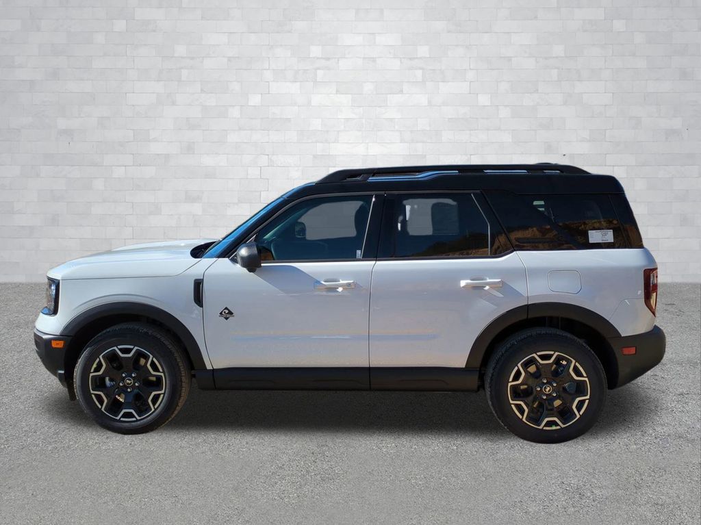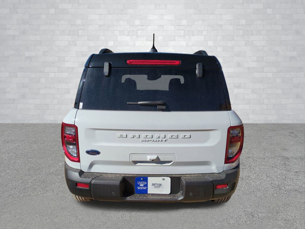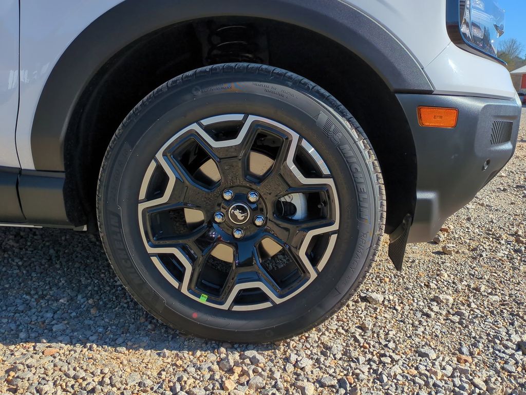 2025 Oxford White 2025 Ford Bronco Sport Outer Banks 4WD 1.5L EcoBoost Equipment Group 300A, Outer Banks Tech Package+ (B&O Sound System by Bang & Olufsen, Connected Navigation, and HD Radio), 360-Degree Camera w/Trail & Split View, 4-Wheel Disc Brakes, 6 Speakers, ABS brakes, Air Conditioning, Alloy wheels, AM/FM radio: SiriusXM, AM/FM Stereo, Auto High-beam Headlights, Auto-dimming Rear-View mirror, Automatic temperature control, Brake assist, Compass, Delay-off headlights, Driver door bin, Driver vanity mirror, Dual front impact airbags, Dual front side impact airbags, Electronic Stability Control, Emergency communication system: SYNC 4 911 Assist, Four wheel independent suspension, Front anti-roll bar, Front Bucket Seats, Front Center Armrest, Front Driver/Passenger Seat Back Map Pockets, Front dual zone A/C, Front fog lights, Front License Plate Bracket, Front Parking Sensors, Front reading lights, Fully automatic headlights, Garage door transmitter, Heated door mirrors, Heated front seats, Heated steering wheel, Illuminated entry, Knee airbag, Low tire pressure warning, Memory seat, Occupant sensing airbag, Outside temperature display, Overhead airbag, Overhead console, Panic alarm, Passenger door bin, Passenger vanity mirror, Power door mirrors, Power driver seat, Power passenger seat, Power steering, Power windows, Premium Trimmed Front Bucket Seats w/Ebony/Roast, Radio data system, Rain sensing wipers, Rear anti-roll bar, Rear Parking Sensors, Rear reading lights, Rear seat center armrest, Rear window defroster, Rear window wiper, Remote keyless entry, Reverse Brake Assist, Security system, SiriusXM, Speed control, Speed-sensing steering, Speed-Sensitive Wipers, Split folding rear seat, Steering wheel mounted audio controls, SYNC 4 w/Enhanced Voice Recognition, Tachometer, Telescoping steering wheel, Tilt steering wheel, Traction control, Trip computer, Variably intermittent wipers, and Wheels: 18" Ebony Black-Painted Aluminum Courtesy Ford and Lincoln of Rome 101 Hwy 411 E Rome, Ga 30161 ROMEFORDLINC.COM 706.235.4453.