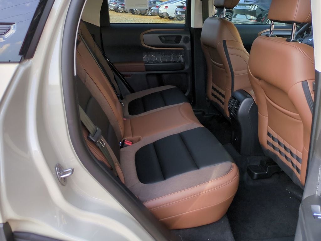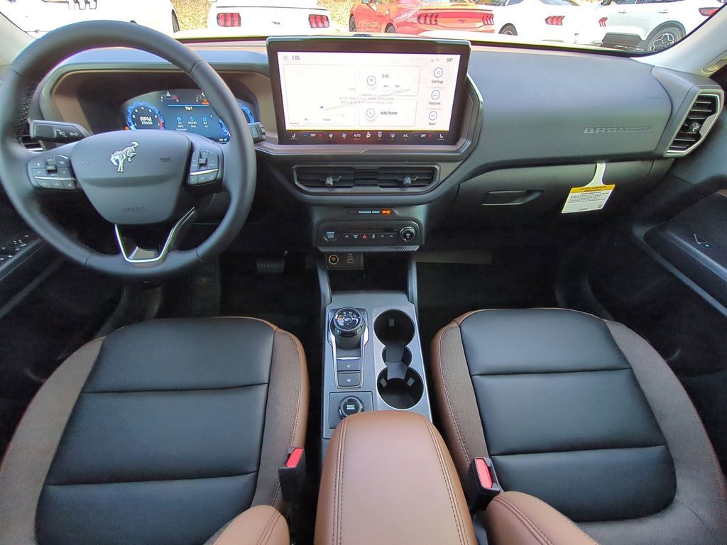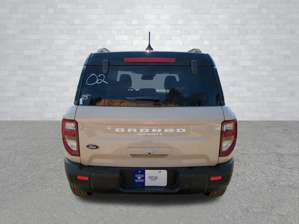 2025 Desert Sand 2025 Ford Bronco Sport Outer Banks 4WD 1.5L EcoBoost Equipment Group 300A, Outer Banks Tech Package+ (B&O Sound System by Bang & Olufsen, Connected Navigation, and HD Radio), 360-Degree Camera w/Trail & Split View, 4-Wheel Disc Brakes, 6 Speakers, ABS brakes, Air Conditioning, Alloy wheels, AM/FM radio: SiriusXM, AM/FM Stereo, Auto High-beam Headlights, Auto-dimming Rear-View mirror, Automatic temperature control, Brake assist, Compass, Delay-off headlights, Driver door bin, Driver vanity mirror, Dual front impact airbags, Dual front side impact airbags, Electronic Stability Control, Emergency communication system: SYNC 4 911 Assist, Four wheel independent suspension, Front anti-roll bar, Front Bucket Seats, Front Center Armrest, Front Driver/Passenger Seat Back Map Pockets, Front dual zone A/C, Front fog lights, Front License Plate Bracket, Front Parking Sensors, Front reading lights, Fully automatic headlights, Garage door transmitter, Heated door mirrors, Heated front seats, Heated steering wheel, Illuminated entry, Knee airbag, Low tire pressure warning, Memory seat, Occupant sensing airbag, Outside temperature display, Overhead airbag, Overhead console, Panic alarm, Passenger door bin, Passenger vanity mirror, Power door mirrors, Power driver seat, Power passenger seat, Power steering, Power windows, Premium Trimmed Front Bucket Seats w/Ebony/Roast, Radio data system, Rain sensing wipers, Rear anti-roll bar, Rear Parking Sensors, Rear reading lights, Rear seat center armrest, Rear window defroster, Rear window wiper, Remote keyless entry, Reverse Brake Assist, Security system, SiriusXM, Speed control, Speed-sensing steering, Speed-Sensitive Wipers, Split folding rear seat, Steering wheel mounted audio controls, SYNC 4 w/Enhanced Voice Recognition, Tachometer, Telescoping steering wheel, Tilt steering wheel, Traction control, Trip computer, Variably intermittent wipers, and Wheels: 18" Ebony Black-Painted Aluminum Courtesy Ford and Lincoln of Rome 101 Hwy 411 E Rome, Ga 30161 ROMEFORDLINC.COM 706.235.4453.