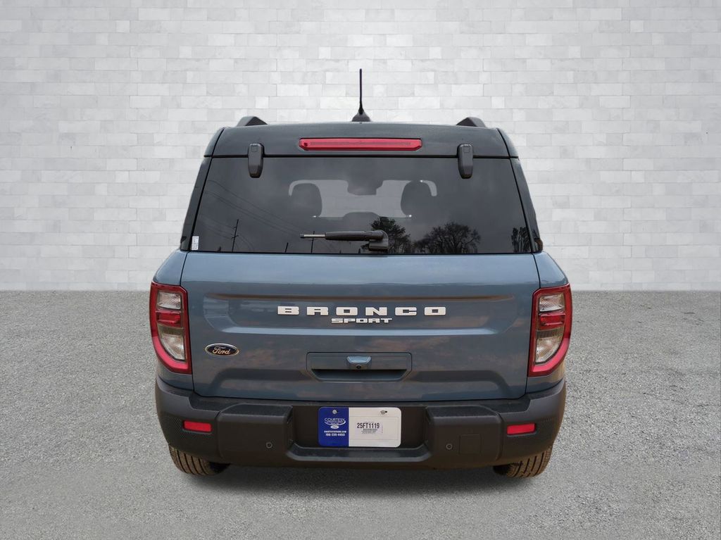2025 Azure Gray Metallic Tri-Coat 2025 Ford Bronco Sport Outer Banks 4WD 1.5L EcoBoost Equipment Group 300A, Outer Banks Tech Package+ (B&O Sound System by Bang & Olufsen, Connected Navigation, and HD Radio), 360-Degree Camera w/Trail & Split View, 4-Wheel Disc Brakes, 6 Speakers, ABS brakes, Air Conditioning, Alloy wheels, AM/FM radio: SiriusXM, AM/FM Stereo, Auto High-beam Headlights, Auto-dimming Rear-View mirror, Automatic temperature control, Brake assist, Compass, Delay-off headlights, Driver door bin, Driver vanity mirror, Dual front impact airbags, Dual front side impact airbags, Electronic Stability Control, Emergency communication system: SYNC 4 911 Assist, Four wheel independent suspension, Front anti-roll bar, Front Bucket Seats, Front Center Armrest, Front Driver/Passenger Seat Back Map Pockets, Front dual zone A/C, Front fog lights, Front License Plate Bracket, Front Parking Sensors, Front reading lights, Fully automatic headlights, Garage door transmitter, Heated door mirrors, Heated front seats, Heated steering wheel, Illuminated entry, Knee airbag, Low tire pressure warning, Memory seat, Occupant sensing airbag, Outside temperature display, Overhead airbag, Overhead console, Panic alarm, Passenger door bin, Passenger vanity mirror, Power door mirrors, Power driver seat, Power passenger seat, Power steering, Power windows, Premium Trimmed Front Bucket Seats w/Ebony/Roast, Radio data system, Rain sensing wipers, Rear anti-roll bar, Rear Parking Sensors, Rear reading lights, Rear seat center armrest, Rear window defroster, Rear window wiper, Remote keyless entry, Reverse Brake Assist, Security system, SiriusXM, Speed control, Speed-sensing steering, Speed-Sensitive Wipers, Split folding rear seat, Steering wheel mounted audio controls, SYNC 4 w/Enhanced Voice Recognition, Tachometer, Telescoping steering wheel, Tilt steering wheel, Traction control, Trip computer, Variably intermittent wipers, and Wheels: 18" Ebony Black-Painted Aluminum Courtesy Ford and Lincoln of Rome 101 Hwy 411 E Rome, Ga 30161 ROMEFORDLINC.COM 706.235.4453.