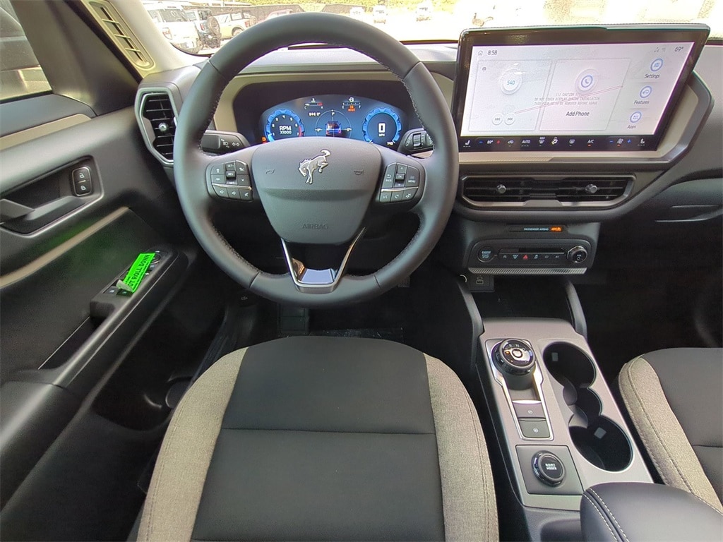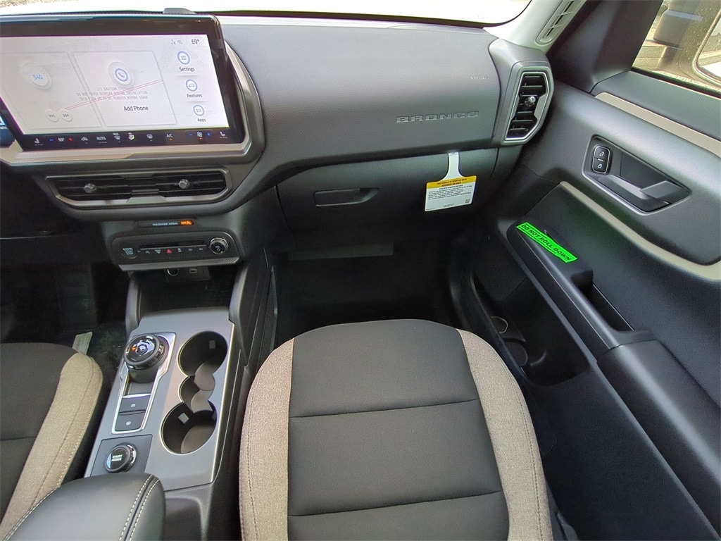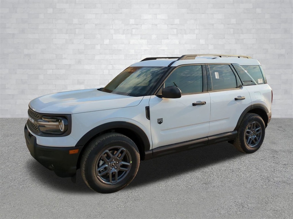 2025 Oxford White 2025 Ford Bronco Sport Big Bend 4WD 1.5L EcoBoost 13.2" LCD Centerstack Touchscreen, Auto LED Headlights, Backup Camera, LED Foglights, Off Road Package, 4D Sport Utility, 1.5L EcoBoost, 8-Speed Automatic, 4WD, Convenience Package, Equipment Group 200A, Front Driver/Passenger Seat Back Map Pockets, Heated 8-Way Power Driver's Seat, LED Fog Lamps, Premium Wrapped Steering Wheel, Universal Garage Door Opener (UGDO). Convenience Package (Front Driver/Passenger Seat Back Map Pockets, Heated 8-Way Power Driver's Seat, LED Fog Lamps, Premium Wrapped Steering Wheel, and Universal Garage Door Opener (UGDO)), Equipment Group 200A, 4D Sport Utility, 1.5L EcoBoost, 8-Speed Automatic, 4WD, 4-Wheel Disc Brakes, 6 Speakers, ABS brakes, Air Conditioning, Alloy wheels, AM/FM radio: SiriusXM, AM/FM Stereo, Auto High-beam Headlights, Automatic temperature control, Brake assist, Cloth w/Easy-to-Clean Front Bucket Seats, Compass, Delay-off headlights, Driver door bin, Driver vanity mirror, Dual front impact airbags, Dual front side impact airbags, Electronic Stability Control, Emergency communication system: SYNC 4 911 Assist, Four wheel independent suspension, Front anti-roll bar, Front Bucket Seats, Front Center Armrest, Front reading lights, Fully automatic headlights, Heated door mirrors, Illuminated entry, Knee airbag, Low tire pressure warning, Occupant sensing airbag, Outside temperature display, Overhead airbag, Overhead console, Panic alarm, Passenger door bin, Passenger vanity mirror, Power door mirrors, Power steering, Power windows, Radio data system, Rear anti-roll bar, Rear Parking Sensors, Rear reading lights, Rear seat center armrest, Rear window defroster, Rear window wiper, Remote keyless entry, Security system, SiriusXM, Speed control, Speed-sensing steering, Speed-Sensitive Wipers, Split folding rear seat, Steering wheel mounted audio controls, SYNC 4 w/Enhanced Voice Recognition, Tachometer, Telescoping steering wheel, Tilt steering wheel, Traction control, Trip computer, Variably intermittent wipers, and Wheels: 17" Carbonized Gray-Painted Aluminum Courtesy Ford and Lincoln of Rome 101 Hwy 411 E Rome, Ga 30161 ROMEFORDLINC.COM 706.235.4453.
