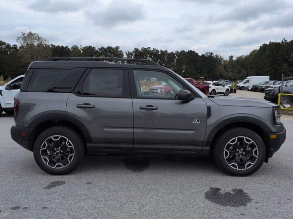 2025 Carbonized Gray Metallic 2025 Ford Bronco Sport Outer Banks Outer Banks 4D Sport Utility 4WD 1.5L EcoBoost 4D Sport Utility, 1.5L EcoBoost, 8-Speed Automatic, 4WD, 13.2" LCD Centerstack Touchscreen, 4-Wheel Disc Brakes, ABS brakes, AM/FM radio: SiriusXM, Auto High-beam Headlights, Auto LED Headlights, Auto-dimming Rear-View mirror, Automatic temperature control, Backup Camera, Brake assist, Compass, Delay-off headlights, Electronic Stability Control, Emergency communication system: SYNC 4 911 Assist, Equipment Group 300A, Four wheel independent suspension, Front dual zone A/C, Front fog lights, Fully automatic headlights, Garage door transmitter, Heated door mirrors, Heated steering wheel, Illuminated entry, Low tire pressure warning, Memory seat, Outside temperature display, Overhead console, Panic alarm, Power door mirrors, Power windows, Push Button Start, Radio data system, Rear Parking Sensors, Remote keyless entry, Remote Start, Security system, SiriusXM, Speed control, Speed-sensing steering, Steering wheel mounted audio controls, SYNC 4 w/Enhanced Voice Recognition, Traction control. Equipment Group 300A, 4D Sport Utility, 1.5L EcoBoost, 8-Speed Automatic, 4WD, 13.2" LCD Centerstack Touchscreen, 4-Wheel Disc Brakes, ABS brakes, AM/FM radio: SiriusXM, Auto High-beam Headlights, Auto LED Headlights, Auto-dimming Rear-View mirror, Automatic temperature control, Backup Camera, Brake assist, Compass, Delay-off headlights, Electronic Stability Control, Emergency communication system: SYNC 4 911 Assist, Four wheel independent suspension, Front dual zone A/C, Front fog lights, Fully automatic headlights, Garage door transmitter, Heated door mirrors, Heated steering wheel, Illuminated entry, Low tire pressure warning, Memory seat, Outside temperature display, Overhead console, Panic alarm, Power door mirrors, Power windows, Push Button Start, Radio data system, Rear Parking Sensors, Remote keyless entry, Remote Start, Security system, SiriusXM, Speed control, Speed-sensing steering, Steering wheel mounted audio controls, SYNC 4 w/Enhanced Voice Recognition, Traction control, 6 Speakers, Air Conditioning, Alloy wheels, AM/FM Stereo, Driver door bin, Driver vanity mirror, Dual front impact airbags, Dual front side impact airbags, Front anti-roll bar, Front Bucket Seats, Front Center Armrest, Front Driver/Passenger Seat Back Map Pockets, Front reading lights, Heated front seats, Knee airbag, Occupant sensing airbag, Overhead airbag, Passenger door bin, Passenger vanity mirror, Power driver seat, Power passenger seat, Power steering, Premium Trimmed Front Bucket Seats w/Ebony/Roast, Rain sensing wipers, Rear anti-roll bar, Rear reading lights, Rear seat center armrest, Rear window defroster, Rear window wiper, Speed-Sensitive Wipers, Split folding rear seat, Tachometer, Telescoping steering wheel, Tilt steering wheel, Trip computer, Variably intermittent wipers, and Wheels: 18" Ebony Black-Painted Aluminum.