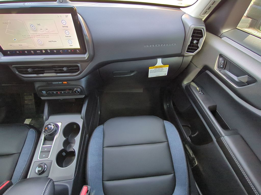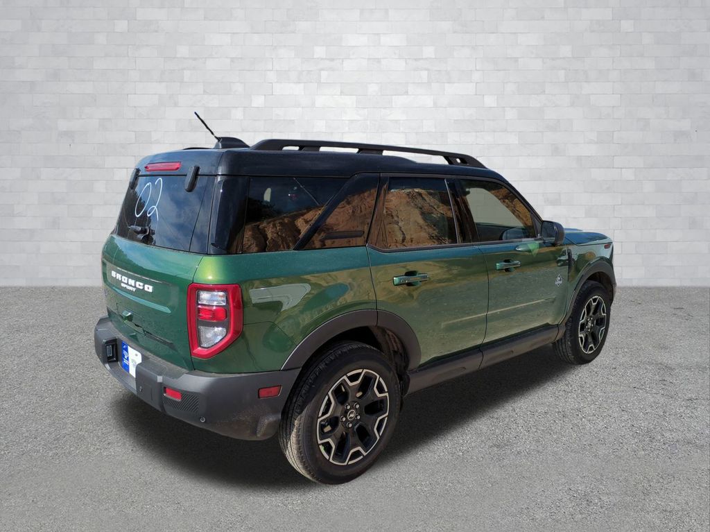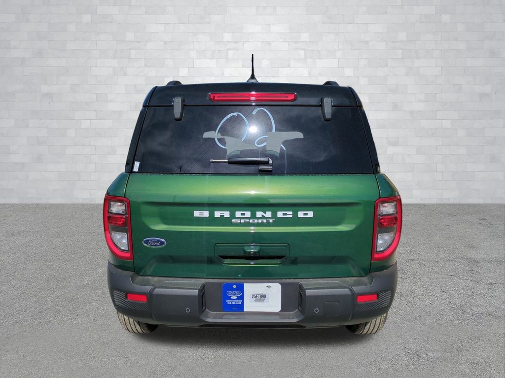 2025 Eruption Green Metallic 2025 Ford Bronco Sport Outer Banks 4WD 1.5L EcoBoost Equipment Group 300A, Outer Banks Tech Package+ (B&O Sound System by Bang & Olufsen, Connected Navigation, and HD Radio), 360-Degree Camera w/Trail & Split View, 4-Wheel Disc Brakes, 6 Speakers, ABS brakes, Air Conditioning, Alloy wheels, AM/FM radio: SiriusXM, AM/FM Stereo, Auto High-beam Headlights, Auto-dimming Rear-View mirror, Automatic temperature control, Brake assist, Compass, Delay-off headlights, Driver door bin, Driver vanity mirror, Dual front impact airbags, Dual front side impact airbags, Electronic Stability Control, Emergency communication system: SYNC 4 911 Assist, Four wheel independent suspension, Front anti-roll bar, Front Bucket Seats, Front Center Armrest, Front Driver/Passenger Seat Back Map Pockets, Front dual zone A/C, Front fog lights, Front Parking Sensors, Front reading lights, Fully automatic headlights, Garage door transmitter, Heated door mirrors, Heated front seats, Heated steering wheel, Illuminated entry, Knee airbag, Low tire pressure warning, Memory seat, Occupant sensing airbag, Outside temperature display, Overhead airbag, Overhead console, Panic alarm, Passenger door bin, Passenger vanity mirror, Power door mirrors, Power driver seat, Power Moonroof, Power passenger seat, Power steering, Power windows, Premium Trimmed Front Bucket Seats w/Ebony/Roast, Radio data system, Rain sensing wipers, Rear anti-roll bar, Rear Parking Sensors, Rear reading lights, Rear seat center armrest, Rear window defroster, Rear window wiper, Remote keyless entry, Reverse Brake Assist, Security system, SiriusXM, Speed control, Speed-sensing steering, Speed-Sensitive Wipers, Split folding rear seat, Steering wheel mounted audio controls, SYNC 4 w/Enhanced Voice Recognition, Tachometer, Telescoping steering wheel, Tilt steering wheel, Traction control, Trip computer, Variably intermittent wipers, and Wheels: 18" Ebony Black-Painted Aluminum Courtesy Ford and Lincoln of Rome 101 Hwy 411 E Rome, Ga 30161 ROMEFORDLINC.COM 706.235.4453.