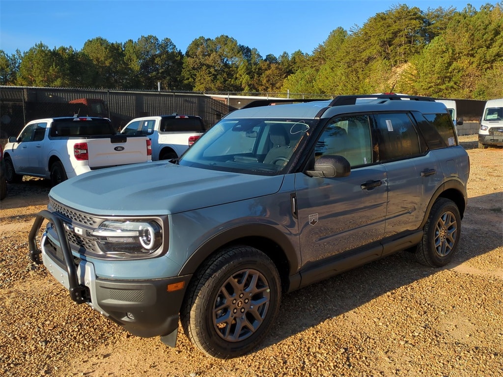 2025 Azure Gray Metallic Tri-Coat 2025 Ford Bronco Sport Big Bend 4WD 1.5L EcoBoost Auto LED Headlights, Backup Camera, LED Foglights, Off Road Package, 4D Sport Utility, 1.5L EcoBoost, 8-Speed Automatic, 4WD, 110V/400W AC Power Outlet, 2nd Row Carpeted Seatback, Auxiliary Switches & Wiring, Black Diamond Off-Road Package, Brush Guard, Cargo Management System (Shelf/Divider/Table), Cargo Mat, Class II Trailer Tow Pack w/Trailer Sway Control, Convenience Package, Equipment Group 200A, Fender Tie Downs, Front & Rear Black Bumpers, Front Driver/Passenger Seat Back Map Pockets, Heated 8-Way Power Driver's Seat, Interior Grab Handle, LED Fog Lamps, Premium Wrapped Steering Wheel, Recovery Hooks, Universal Garage Door Opener (UGDO), Wheels: 17" Carbonized Gray Painted Aluminum. Black Diamond Off-Road Package (110V/400W AC Power Outlet, 2nd Row Carpeted Seatback, Auxiliary Switches & Wiring, Brush Guard, Cargo Management System (Shelf/Divider/Table), Cargo Mat, Class II Trailer Tow Pack w/Trailer Sway Control, Fender Tie Downs, Front & Rear Black Bumpers, Interior Grab Handle, Recovery Hooks, and Wheels: 17" Carbonized Gray Painted Aluminum), Convenience Package (Front Driver/Passenger Seat Back Map Pockets, Heated 8-Way Power Driver's Seat, LED Fog Lamps, Premium Wrapped Steering Wheel, and Universal Garage Door Opener (UGDO)), Equipment Group 200A, 4D Sport Utility, 1.5L EcoBoost, 8-Speed Automatic, 4WD, 4-Wheel Disc Brakes, 6 Speakers, ABS brakes, Air Conditioning, Alloy wheels, AM/FM radio: SiriusXM, AM/FM Stereo, Auto High-beam Headlights, Automatic temperature control, Brake assist, Cloth w/Easy-to-Clean Front Bucket Seats, Compass, Delay-off headlights, Driver door bin, Driver vanity mirror, Dual front impact airbags, Dual front side impact airbags, Electronic Stability Control, Emergency communication system: SYNC 4 911 Assist, Four wheel independent suspension, Front anti-roll bar, Front Bucket Seats, Front Center Armrest, Front reading lights, Fully automatic headlights, Heated door mirrors, Illuminated entry, Knee airbag, Low tire pressure warning, Occupant sensing airbag, Outside temperature display, Overhead airbag, Overhead console, Panic alarm, Passenger door bin, Passenger vanity mirror, Power door mirrors, Power steering, Power windows, Radio data system, Rear anti-roll bar, Rear Parking Sensors, Rear reading lights, Rear seat center armrest, Rear window defroster, Rear window wiper, Remote keyless entry, Security system, SiriusXM, Speed control, Speed-sensing steering, Speed-Sensitive Wipers, Split folding rear seat, Steering wheel mounted audio controls, SYNC 4 w/Enhanced Voice Recognition, Tachometer, Telescoping steering wheel, Tilt steering wheel, Traction control, Trip computer, Variably intermittent wipers, and Wheels: 17" Carbonized Gray-Painted Aluminum Courtesy Ford and Lincoln of Rome 101 Hwy 411 E Rome, Ga 30161 ROMEFORDLINC.COM 706.235.4453.