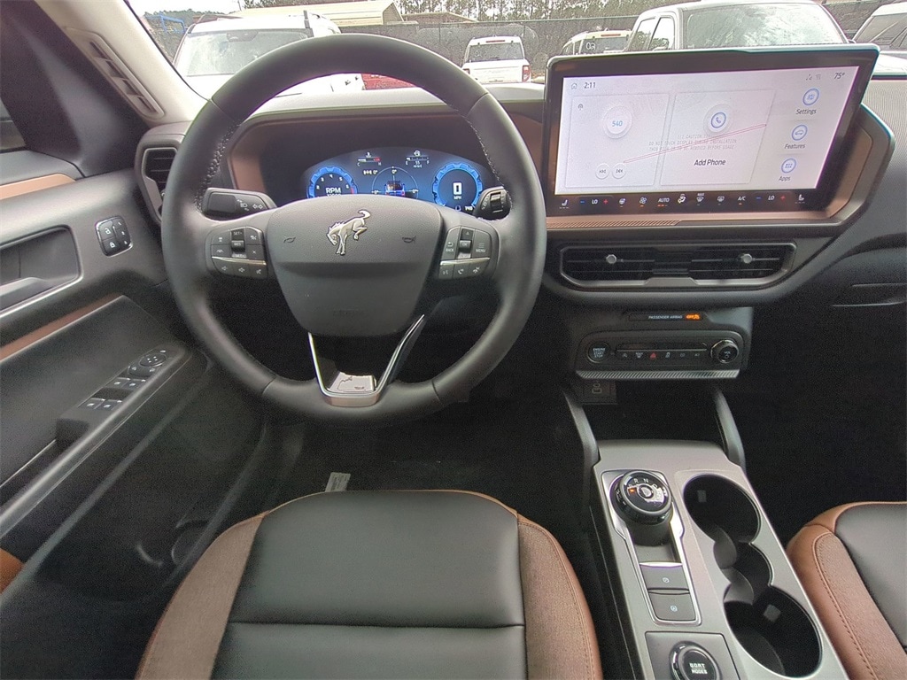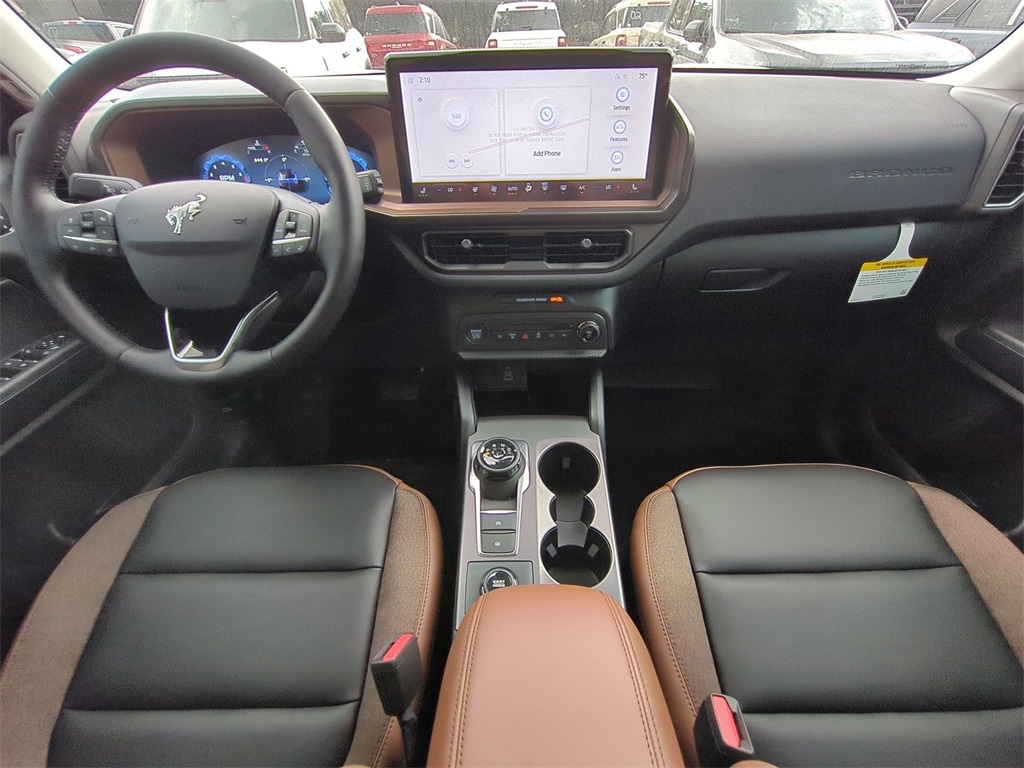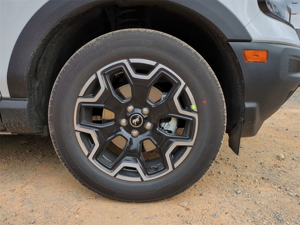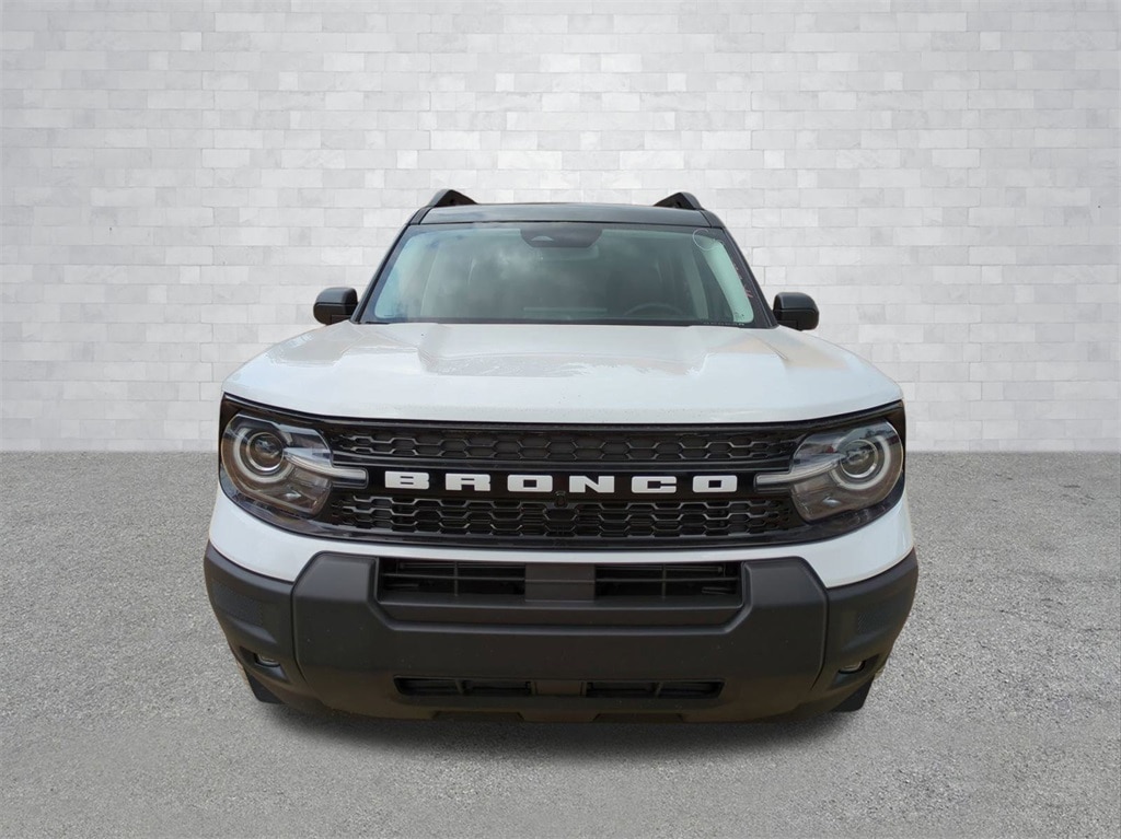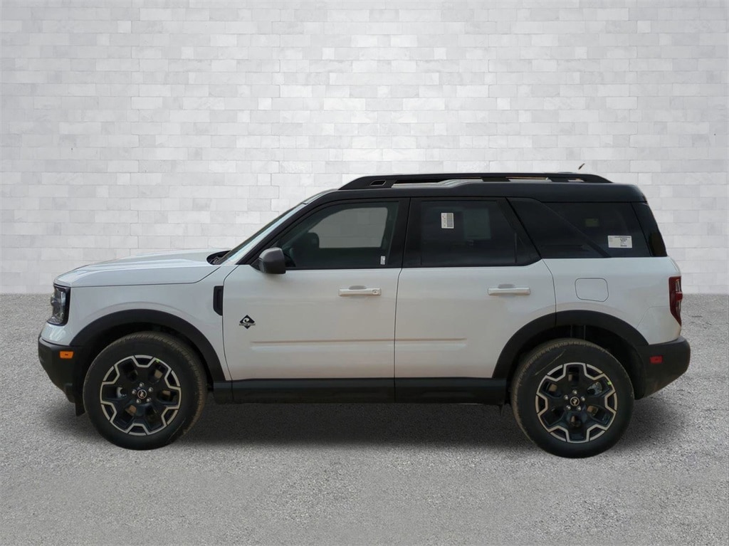 2025 Oxford White 2025 Ford Bronco Sport Outer Banks 4WD 1.5L EcoBoost 4-Wheel Disc Brakes, 6 Speakers, ABS brakes, Air Conditioning, Alloy wheels, AM/FM radio: SiriusXM, AM/FM Stereo, Auto High-beam Headlights, Auto-dimming Rear-View mirror, Automatic temperature control, Brake assist, Compass, Delay-off headlights, Driver door bin, Driver vanity mirror, Dual front impact airbags, Dual front side impact airbags, Electronic Stability Control, Emergency communication system: SYNC 4 911 Assist, Four wheel independent suspension, Front anti-roll bar, Front Bucket Seats, Front Center Armrest, Front Driver/Passenger Seat Back Map Pockets, Front dual zone A/C, Front fog lights, Front reading lights, Fully automatic headlights, Garage door transmitter, Heated door mirrors, Heated front seats, Heated steering wheel, Illuminated entry, Knee airbag, Low tire pressure warning, Memory seat, Occupant sensing airbag, Outside temperature display, Overhead airbag, Overhead console, Panic alarm, Passenger door bin, Passenger vanity mirror, Power door mirrors, Power driver seat, Power passenger seat, Power steering, Power windows, Premium Trimmed Front Bucket Seats w/Ebony/Roast, Radio data system, Rain sensing wipers, Rear anti-roll bar, Rear Parking Sensors, Rear reading lights, Rear seat center armrest, Rear window defroster, Rear window wiper, Remote keyless entry, Security system, SiriusXM, Speed control, Speed-sensing steering, Speed-Sensitive Wipers, Split folding rear seat, Steering wheel mounted audio controls, SYNC 4 w/Enhanced Voice Recognition, Tachometer, Telescoping steering wheel, Tilt steering wheel, Traction control, Trip computer, Variably intermittent wipers, and Wheels: 18" Ebony Black-Painted Aluminum Courtesy Ford and Lincoln of Rome 101 Hwy 411 E Rome, Ga 30161 ROMEFORDLINC.COM 706.235.4453.