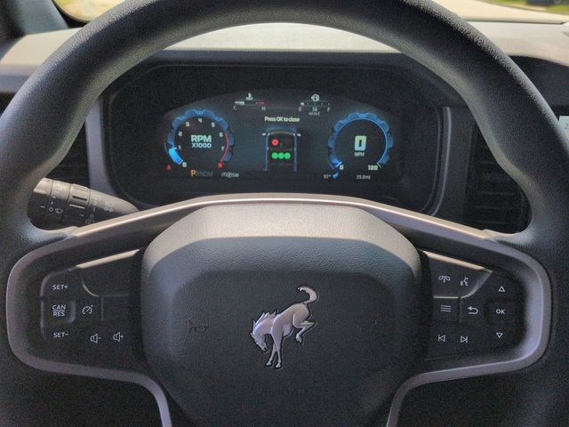 2025 Azure Gray Metallic Tri-Coat 2025 Ford Bronco Base 4D Sport Utility 4WD 2.3L EcoBoost I-4 4D Sport Utility, 2.3L EcoBoost I-4, 10-Speed Automatic, 4WD, 12" LCD Productivity Touchscreen, Auto Emergency Braking, Auto LED Headlights, Backup Camera, Equipment Group 101A, Hill Start Assist, Pre Collision Assist w/ AEB. Equipment Group 101A, 4D Sport Utility, 2.3L EcoBoost I-4, 10-Speed Automatic, 4WD, 12" LCD Productivity Touchscreen, Auto Emergency Braking, Auto LED Headlights, Backup Camera, Hill Start Assist, Pre Collision Assist w/ AEB, 4-Wheel Disc Brakes, 4.46 Axle Ratio, 7 Speakers, ABS brakes, Air Conditioning, AM/FM radio: SiriusXM with 360L, AM/FM Stereo, Auto High-beam Headlights, Brake assist, Cloth Bucket Seats, Compass, Delay-off headlights, Driver door bin, Driver vanity mirror, Dual front impact airbags, Dual front side impact airbags, Electronic Stability Control, Emergency communication system: 911 Assist, Exterior Parking Camera Rear, Front anti-roll bar, Front Bucket Seats, Front Center Armrest, Front reading lights, Front wheel independent suspension, Fully automatic headlights, Heated door mirrors, Illuminated entry, Integrated roll-over protection, Low tire pressure warning, Occupant sensing airbag, Outside temperature display, Overhead airbag, Overhead console, Panic alarm, Passenger door bin, Passenger vanity mirror, Power door mirrors, Power steering, Power windows, Radio data system, Remote keyless entry, Security system, SiriusXM w/360L, Speed control, Split folding rear seat, Steering wheel mounted audio controls, SYNC 4, Tachometer, Telescoping steering wheel, Tilt steering wheel, Traction control, Trip computer, Variably intermittent wipers, and Wheels: 16" Bright Polished Silver-Painted Steel. $1,000 - Exp. 12/31/2026 Retail Trade Assistance. Must trade in a vehicle to qualify $1,000 - Exp. 12/31/2026 Dealer Finance Assistance. Must finance through dealer lender to qualify.