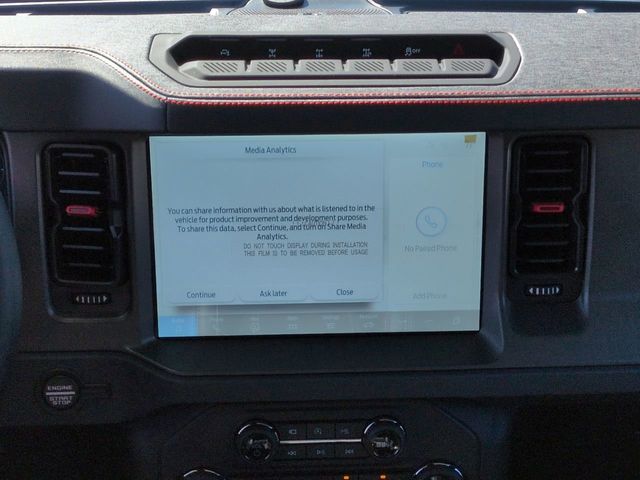 2025 Shadow Black 2025 Ford Bronco Raptor Raptor 4D Sport Utility 4WD 3.0L EcoBoost V6 4D Sport Utility, 3.0L EcoBoost V6, 10-Speed Automatic, 4WD, 12" LCD Productivity Touchscreen, Auto Emergency Braking, Auto LED Headlights, Backup Camera, Equipment Group 374A Lux Package, Fox Suspension, Hard Top Sound Deadening Headliner, Hill Start Assist, Leather Seats, LED Foglights, Navigation system: Connected Navigation, Off Road Package, Pre Collision Assist w/ AEB, Rear-Window Defroster & Washer, Shadow Black Painted Hard Top. Equipment Group 374A Lux Package, 4D Sport Utility, 3.0L EcoBoost V6, 10-Speed Automatic, 4WD, 12" LCD Productivity Touchscreen, Auto Emergency Braking, Auto LED Headlights, Backup Camera, Fox Suspension, Hard Top Sound Deadening Headliner, Hill Start Assist, Leather Seats, LED Foglights, Navigation system: Connected Navigation, Off Road Package, Pre Collision Assist w/ AEB, Rear-Window Defroster & Washer, Shadow Black Painted Hard Top, 12 Speakers, 4-Wheel Disc Brakes, ABS brakes, Air Conditioning, Alloy wheels, AM/FM radio: SiriusXM with 360L, Auto High-beam Headlights, Auto-dimming Rear-View mirror, Automatic temperature control, Brake assist, Compass, Connected Navigation, Convertible HardTop, Convertible roof lining, Delay-off headlights, Driver door bin, Driver vanity mirror, Dual front impact airbags, Dual front side impact airbags, Electronic Stability Control, Emergency communication system: 911 Assist, Exterior Parking Camera Rear, Front anti-roll bar, Front Bucket Seats, Front Center Armrest, Front dual zone A/C, Front fog lights, Front License Plate Bracket, Front reading lights, Front wheel independent suspension, Fully automatic headlights, Garage door transmitter, Glass rear window, Heated door mirrors, Heated front seats, Heated steering wheel, Illuminated entry, Integrated roll-over protection, Interior Carbon Fiber Pack, Leather Shift Knob, Leather-Trimmed/Vinyl Bucket Seats, Low tire pressure warning, Marine Grade Vinyl Bucket Seats, Occupant sensing airbag, Outside temperature display, Overhead airbag, Overhead console, Panic alarm, Passenger door bin, Passenger vanity mirror, Power door mirrors, Power steering, Power windows, Radio data system, Radio: B&O Sound System by Bang & Olufsen, Rear anti-roll bar, Rear seat center armrest, Rear window defroster, Rear window wiper, Remote keyless entry, Security system, SiriusXM w/360L, Speed control, Split folding rear seat, Steering wheel mounted audio controls, SYNC 4, Tachometer, Telescoping steering wheel, Tilt steering wheel, Traction control, Trip computer, Turn signal indicator mirrors, Variably intermittent wipers, Voltmeter, Wheels: 17" Black High Gloss-Painted Aluminum, and Wheels: 17" Dark Carbonized Gray Alloy Painted. $1,000 - Exp. 12/31/2026 Retail Trade Assistance. Must trade in a vehicle to qualify $1,000 - Exp. 12/31/2026 Dealer Finance Assistance. Must finance through dealer lender to qualify.