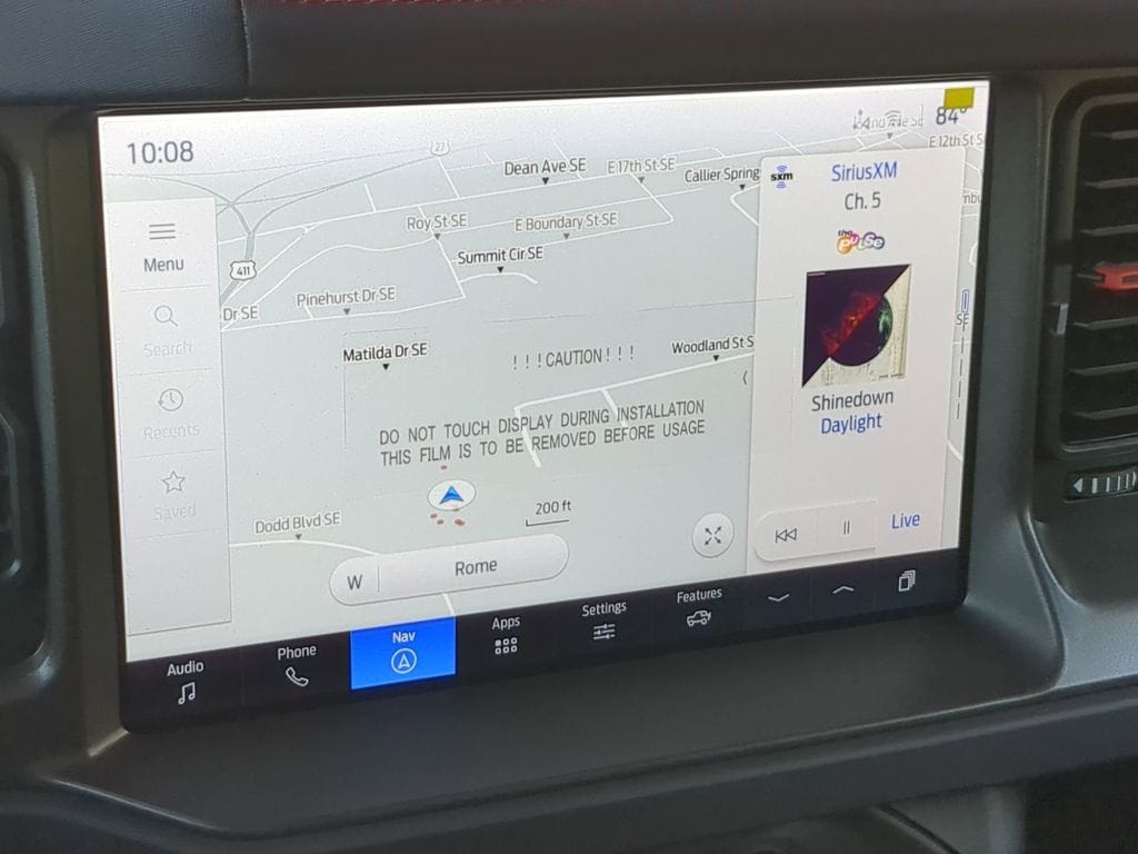 2025 Azure Gray Metallic Tri-Coat 2025 Ford Bronco Raptor 4WD 3.0L EcoBoost V6 12" LCD Productivity Touchscreen, 360-Degree Camera, Auto Emergency Braking, Auto LED Headlights, Backup Camera, Leather Seats, LED Foglights, Luxury Package, Off Road Package, Performance Handling Package, Performance Package, Pre Collision Assist w/ AEB, 4D Sport Utility, 3.0L EcoBoost V6, 10-Speed Automatic, 4WD, Equipment Group 374A Lux Package, Navigation system: Connected Navigation. Equipment Group 374A Lux Package, 4D Sport Utility, 3.0L EcoBoost V6, 10-Speed Automatic, 4WD, Navigation system: Connected Navigation, 12 Speakers, 4-Wheel Disc Brakes, ABS brakes, Air Conditioning, Alloy wheels, AM/FM radio: SiriusXM with 360L, Auto High-beam Headlights, Auto-dimming Rear-View mirror, Automatic temperature control, Brake assist, Compass, Connected Navigation, Convertible HardTop, Convertible roof lining, Delay-off headlights, Driver door bin, Driver vanity mirror, Dual front impact airbags, Dual front side impact airbags, Electronic Stability Control, Emergency communication system: 911 Assist, Exterior Parking Camera Rear, Front anti-roll bar, Front Bucket Seats, Front Center Armrest, Front dual zone A/C, Front fog lights, Front reading lights, Front wheel independent suspension, Fully automatic headlights, Garage door transmitter, Glass rear window, Heated door mirrors, Heated front seats, Heated steering wheel, Illuminated entry, Integrated roll-over protection, Leather Shift Knob, Low tire pressure warning, Marine Grade Vinyl Bucket Seats, Occupant sensing airbag, Outside temperature display, Overhead airbag, Overhead console, Panic alarm, Passenger door bin, Passenger vanity mirror, Power door mirrors, Power steering, Power windows, Radio data system, Radio: B&O Sound System by Bang & Olufsen, Rear anti-roll bar, Rear seat center armrest, Rear window defroster, Rear window wiper, Remote keyless entry, Security system, SiriusXM w/360L, Speed control, Split folding rear seat, Steering wheel mounted audio controls, SYNC 4, Tachometer, Telescoping steering wheel, Tilt steering wheel, Traction control, Trip computer, Turn signal indicator mirrors, Variably intermittent wipers, Voltmeter, and Wheels: 17" Black High Gloss-Painted Aluminum Courtesy Ford and Lincoln of Rome 101 Hwy 411 E Rome, Ga 30161 ROMEFORDLINC.COM 706.235.4453.