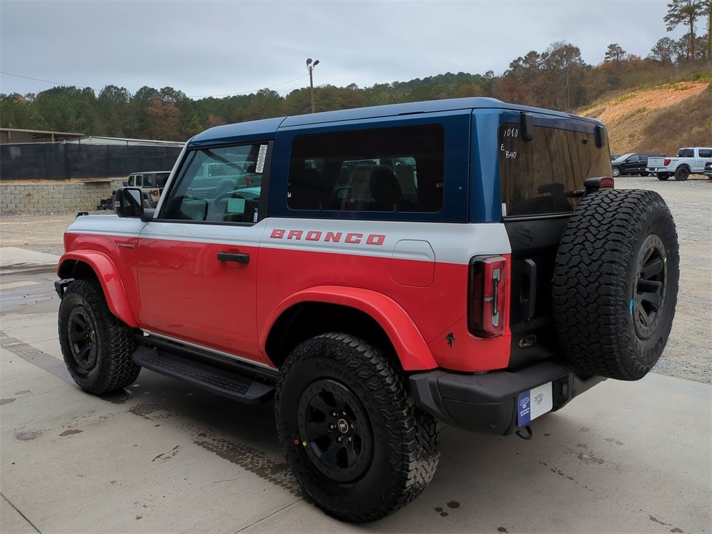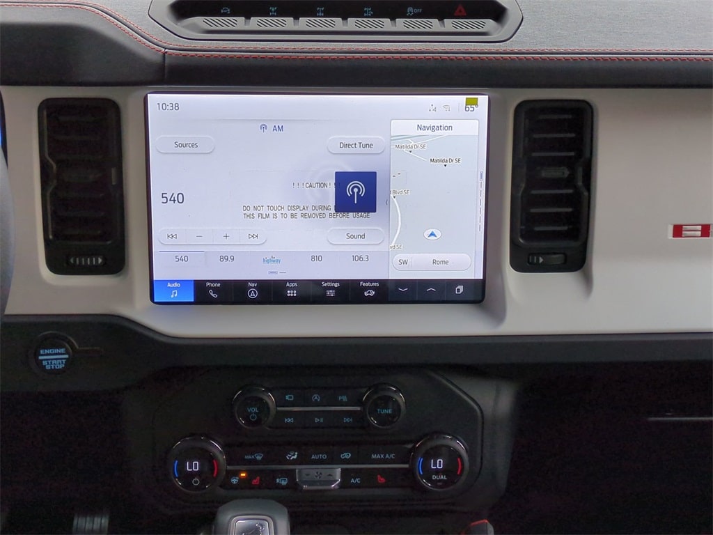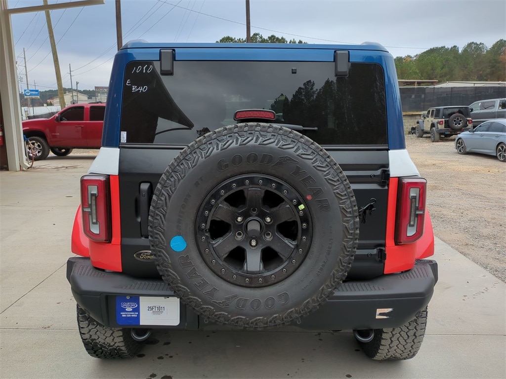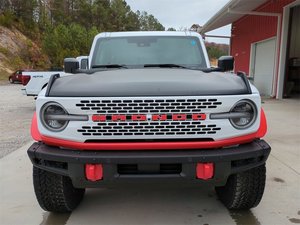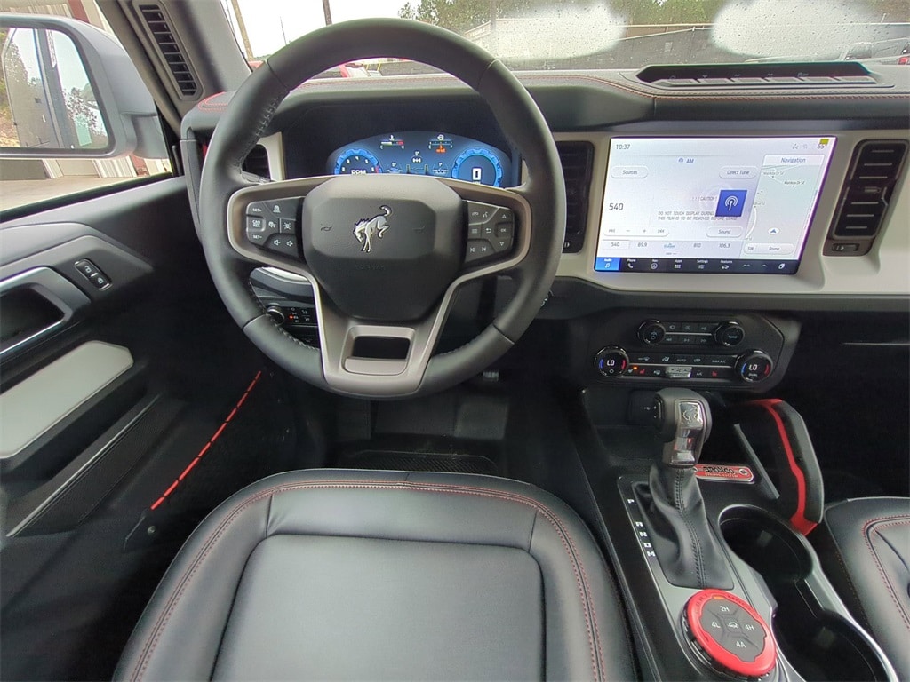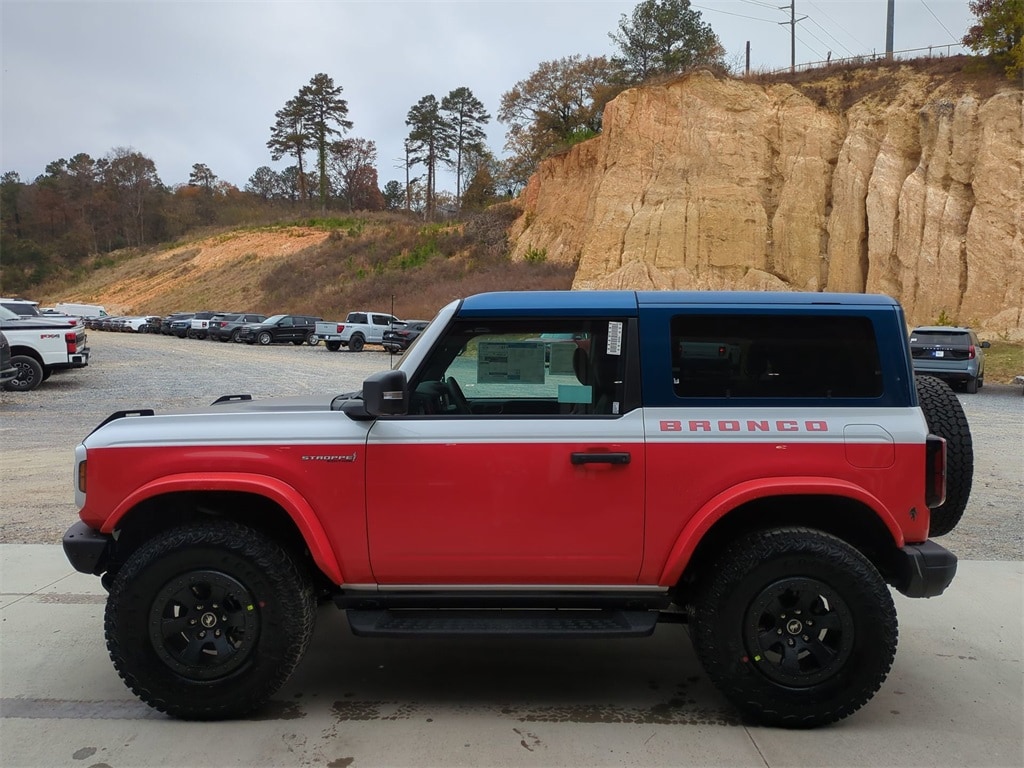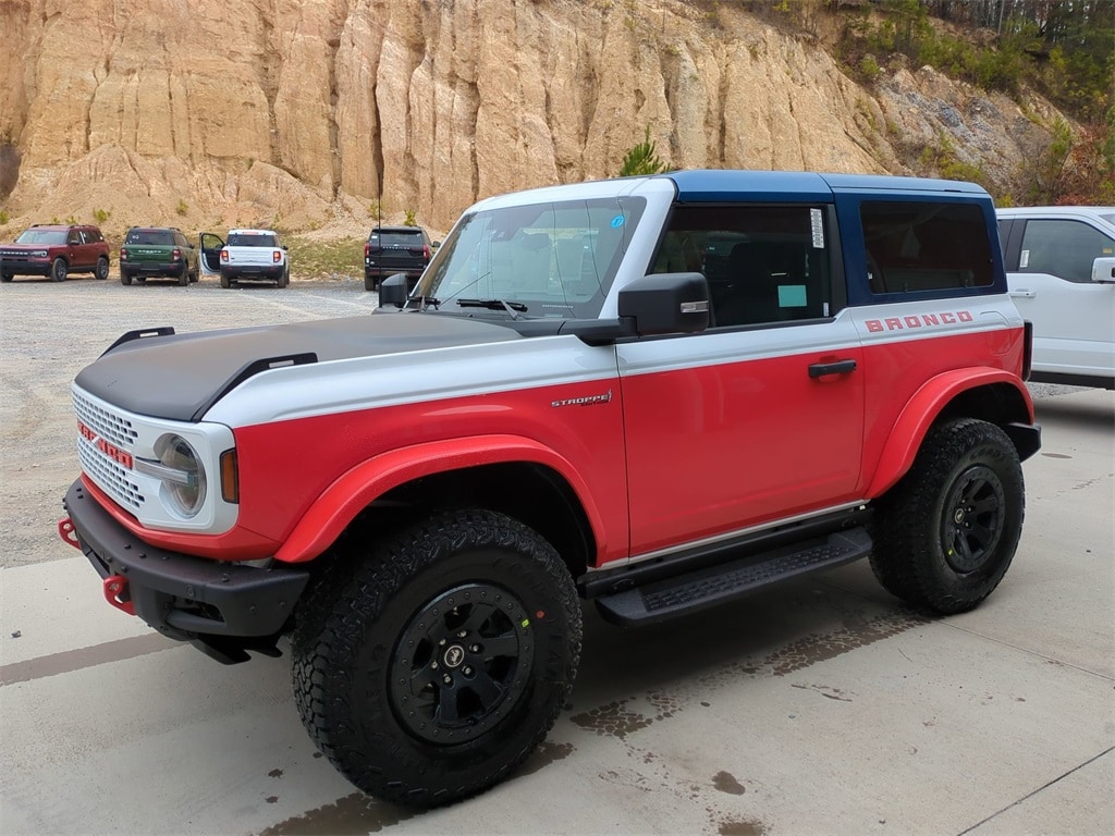 2025 Oxford White 2025 Ford Bronco Stroppe Edition 4WD 2.7L EcoBoost V6 12 Speakers, 4-Wheel Disc Brakes, ABS brakes, Air Conditioning, Alloy wheels, AM/FM radio: SiriusXM with 360L, Auto High-beam Headlights, Auto-dimming Rear-View mirror, Automatic temperature control, Brake assist, Compass, Connected Navigation, Convertible HardTop, Convertible roof lining, Delay-off headlights, Driver door bin, Driver vanity mirror, Dual front impact airbags, Dual front side impact airbags, Electronic Stability Control, Emergency communication system: 911 Assist, Exterior Parking Camera Rear, Front anti-roll bar, Front Bucket Seats, Front Center Armrest, Front dual zone A/C, Front reading lights, Front wheel independent suspension, Fully automatic headlights, Garage door transmitter, Glass rear window, Heated door mirrors, Heated front seats, Heated steering wheel, Illuminated entry, Integrated roll-over protection, Leather Shift Knob, Low tire pressure warning, Navigation system: Connected Navigation, Occupant sensing airbag, Outside temperature display, Overhead airbag, Overhead console, Panic alarm, Passenger door bin, Passenger vanity mirror, Power door mirrors, Power steering, Power windows, Radio data system, Radio: B&O Sound System by Bang & Olufsen, Rear anti-roll bar, Rear window defroster, Rear window wiper, Remote keyless entry, Security system, SiriusXM w/360L, Speed control, Split folding rear seat, Steering wheel mounted audio controls, SYNC 4, Tachometer, Telescoping steering wheel, Tilt steering wheel, Traction control, Trip computer, Turn signal indicator mirrors, Unique Vinyl Bucket Seats, Variably intermittent wipers, Voltmeter, and Wheels: 17" Unique Matte Black-Painted Alloy Courtesy Ford and Lincoln of Rome 101 Hwy 411 E Rome, Ga 30161 ROMEFORDLINC.COM 706.235.4453.