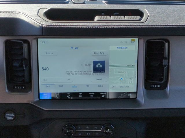 2025 Shadow Black 2025 Ford Bronco Outer Banks Outer Banks 4D Sport Utility 4WD 2.7L EcoBoost V6 Black Appearance Package (Black Molded-In-Color Door Handles, Black Molded-In-Color Fender Flares, Black Molded-In-Color Sideview Mirror Caps, and Black-Painted Molded-In-Color Grille), 18" Bright Machined Aluminum Wheels, 3.73 Axle Ratio, 4-Wheel Disc Brakes, 7 Speakers, ABS brakes, Air Conditioning, Alloy wheels, AM/FM radio: SiriusXM with 360L, AM/FM Stereo, Auto High-beam Headlights, Auto-dimming Rear-View mirror, Automatic temperature control, Brake assist, Compass, Connected Navigation, Delay-off headlights, Driver door bin, Driver vanity mirror, Dual front impact airbags, Dual front side impact airbags, Electronic Stability Control, Emergency communication system: 911 Assist, Exterior Parking Camera Rear, Front anti-roll bar, Front Bucket Seats, Front Center Armrest, Front dual zone A/C, Front fog lights, Front reading lights, Front wheel independent suspension, Fully automatic headlights, Hard Top Sound Deadening Headliner, Heated door mirrors, Heated front seats, Heated Leather-Trimmed/Vinyl Bucket Seats, Heated steering wheel, Illuminated entry, Integrated roll-over protection, Internet access capable: FordPass Connect, Leather Shift Knob, Low tire pressure warning, Navigation system: Connected Navigation, Occupant sensing airbag, Outside temperature display, Overhead airbag, Overhead console, Panic alarm, Passenger door bin, Passenger vanity mirror, Power door mirrors, Power driver seat, Power passenger seat, Power steering, Power windows, Radio data system, Rear seat center armrest, Rear-Window Defroster & Washer, Remote keyless entry, Security system, Shadow Black-Painted Hard Top, SiriusXM w/360L, Speed control, Split folding rear seat, Steering wheel mounted audio controls, SYNC 4, Tachometer, Telescoping steering wheel, Tilt steering wheel, Traction control, Trip computer, Variably intermittent wipers, and Voltmeter. Price includes: $1,000 - Exp. 12/31/2026 Retail Trade Assistance. Must trade in a vehicle to qualify $1,000 - Exp. 12/31/2026 Dealer Finance Assistance. Must finance through dealer lender to qualify.