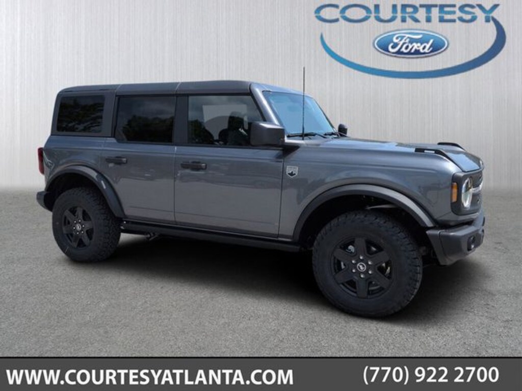2025 Carbonized Gray Metallic 2025 Ford Bronco Big Bend Big Bend 4D Sport Utility 4WD 2.3L EcoBoost I-4 4D Sport Utility, 2.3L EcoBoost I-4, 10-Speed Automatic, 4WD, 12" LCD Productivity Touchscreen, 4.46 Final Drive Ratio w/Rear Locking Differential, Auto Emergency Braking, Auxiliary Switches, Backup Camera, Black Diamond Package, Carbonized Gray Molded-In-Color Hard Top, Equipment Group 222A Mid Package, Hard Top Sound Deadening Headliner, LED Fog Lamps, Off Road Package, Powder Coated Steel Front & Rear Bumpers, Power Mirror Package, Power Package, Pre Collision Assist w/ AEB, Push Button Start, Rear-Window Defroster & Washer, Rock Rails, Trailer Tow Package (DIO), Washout Capable Rubberized Flooring, Wheels: 17" Black High Gloss Painted Aluminum. Black Diamond Package (4.46 Final Drive Ratio w/Rear Locking Differential, Auxiliary Switches, LED Fog Lamps, Powder Coated Steel Front & Rear Bumpers, Rock Rails, Washout Capable Rubberized Flooring, and Wheels: 17" Black High Gloss Painted Aluminum), Equipment Group 222A Mid Package (Connected Navigation), Trailer Tow Package (DIO), 4D Sport Utility, 2.3L EcoBoost I-4, 10-Speed Automatic, 4WD, 12" LCD Productivity Touchscreen, Auto Emergency Braking, Backup Camera, Carbonized Gray Molded-In-Color Hard Top, Hard Top Sound Deadening Headliner, Off Road Package, Power Mirror Package, Power Package, Pre Collision Assist w/ AEB, Push Button Start, Rear-Window Defroster & Washer, 4-Wheel Disc Brakes, 7 Speakers, ABS brakes, Air Conditioning, Alloy wheels, AM/FM radio: SiriusXM with 360L, AM/FM Stereo, Auto High-beam Headlights, Brake assist, Cloth Bucket Seats, Compass, Delay-off headlights, Driver door bin, Driver vanity mirror, Dual front impact airbags, Dual front side impact airbags, Electronic Stability Control, Emergency communication system: 911 Assist, Exterior Parking Camera Rear, Front anti-roll bar, Front Bucket Seats, Front Center Armrest, Front reading lights, Front wheel independent suspension, Fully automatic headlights, Heated door mirrors, Illuminated entry, Integrated roll-over protection, Leather Shift Knob, Low tire pressure warning, Occupant sensing airbag, Outside temperature display, Overhead airbag, Overhead console, Panic alarm, Passenger door bin, Passenger vanity mirror, Power door mirrors, Power steering, Power windows, Radio data system, Remote keyless entry, Security system, SiriusXM w/360L, Speed control, Split folding rear seat, Steering wheel mounted audio controls, SYNC 4, Tachometer, Telescoping steering wheel, Tilt steering wheel, Traction control, Trip computer, Variably intermittent wipers, and Wheels: 17" Carbonized Gray-Painted Aluminum.
