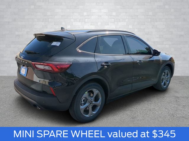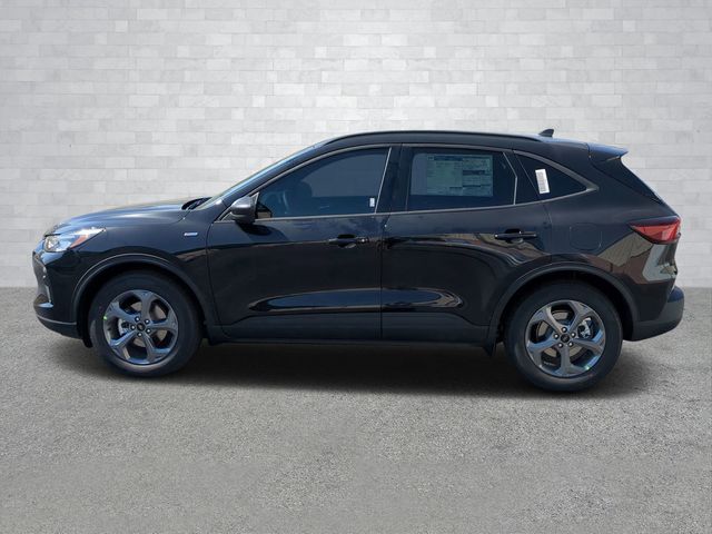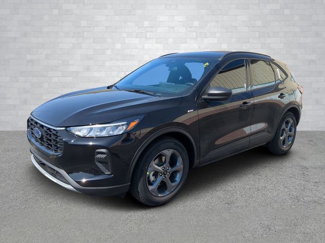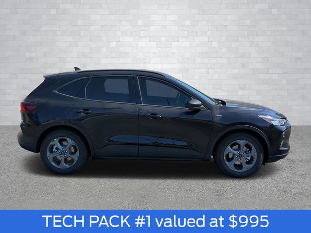 2025 Agate Black Metallic 2025 Ford Escape ST-Line ST-Line 4D Sport Utility FWD 1.5L EcoBoost Equipment Group 300A, Tech Pack #1 (Adaptive Cruise Control w/Stop-and-Go, Connected Navigation, Ford Co-Pilot360 Assist+, Intersection Assist, Predictive Speed Assist, Rear Parking Sensor, Rear-View Camera, and SYNC 4 w/Enhanced Voice Recognition), 3.81 Axle Ratio, 4-Wheel Disc Brakes, 6 Speakers, ABS brakes, Air Conditioning, Alloy wheels, AM/FM radio: SiriusXM, AM/FM Stereo, Auto High-beam Headlights, Automatic temperature control, Brake assist, Bumpers: body-color, Compass, Delay-off headlights, Driver door bin, Driver vanity mirror, Dual front impact airbags, Dual front side impact airbags, Electronic Stability Control, Emergency communication system: SYNC 4 911 Assist, FordPass Connect, Four wheel independent suspension, Front anti-roll bar, Front Bucket Seats, Front Center Armrest, Front dual zone A/C, Front reading lights, Fully automatic headlights, Illuminated entry, Internet access capable: FordPass Connect 4G, Knee airbag, Low tire pressure warning, Occupant sensing airbag, Outside temperature display, Overhead airbag, Overhead console, Panic alarm, Passenger door bin, Passenger vanity mirror, Power door mirrors, Power driver seat, Power steering, Power windows, Radio data system, Rear anti-roll bar, Rear reading lights, Rear seat center armrest, Rear window defroster, Rear window wiper, Remote keyless entry, Speed control, Speed-sensing steering, Speed-Sensitive Wipers, Split folding rear seat, Spoiler, Sport steering wheel, Steering wheel mounted audio controls, SYNC 4, Tachometer, Telescoping steering wheel, Tilt steering wheel, Traction control, Trip computer, Variably intermittent wipers, Vinyl/Cloth Front Sport Contour Bucket Seats, and Wheels: 18" Rock Metallic Painted Aluminum. $1,000 - Exp. 12/31/2026 Retail Trade Assistance. Must trade in a vehicle to qualify $1,000 - Exp. 12/31/2026 Dealer Finance Assistance. Must finance through dealer lender to qualify.