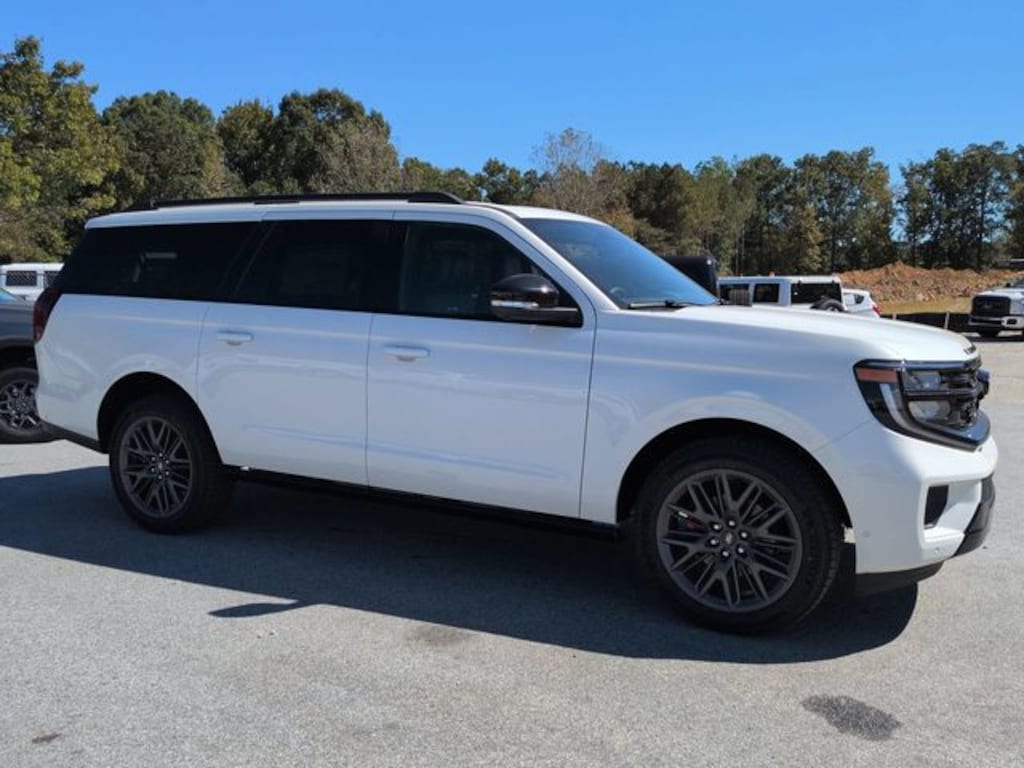 2025 Star White Metallic Tri-Coat 2025 Ford Expedition Max Platinum Stealth Platinum 4D Sport Utility 4WD 3.5L V6 4D Sport Utility, 3.5L V6, 10-Speed Automatic, 4WD, 13.2" LCD Centerstack Touchscreen, 24" Cluster Pano Display, 3rd Row Seating, Auto LED Headlights, Backup Camera, Black Belt Molding, Black Expedition Lettering On Hood, Black Headlamp Bezel w/Ebony Trim Applique, Black Platinum Badge On Tailgate, Black Roof Rails, Bluetooth w/ Audio Streaming, Carbon Black Front Bumper/Fascia, Connectivity Package (One-Time Purchase), Continuous Control Damping Suspension, Driver's Package, Engine Sound Enhancer, Heavy Duty Trailer Package, High Flow Exhaust System, Hill Descent Control, Hill Start Assist, Intersection Assist, Leather Seats, Multi Zone Climate Control, Multimedia Package, Navigation System, Panoramic Sunroof/Moonroof, Power Mirror Package, Power Package, Push Button Start, Radio data system, Radio: B&O Unleashed Sound System by Bang & Olufsen, Rear Side Windows Laminated Glass, Red Brake Calipers, Signature Grille Lighting, SiriusXM w/360L, Stealth Appearance Package, Stealth Performance Package, Wheels: 22" Magnetite Painted Aluminum, Wireless Charging Pad. Connectivity Package (One-Time Purchase), Driver's Package (Continuous Control Damping Suspension, Radio: B&O Unleashed Sound System by Bang & Olufsen, and SiriusXM w/360L), Stealth Appearance Package (Black Belt Molding, Black Expedition Lettering On Hood, Black Headlamp Bezel w/Ebony Trim Applique, Black Platinum Badge On Tailgate, Black Roof Rails, Carbon Black Front Bumper/Fascia, Engine Sound Enhancer, Rear Side Windows Laminated Glass, and Signature Grille Lighting), Stealth Performance Package (High Flow Exhaust System, Red Brake Calipers, and Wheels: 22" Magnetite Painted Aluminum), 4D Sport Utility, 3.5L V6, 10-Speed Automatic, 4WD, 13.2" LCD Centerstack Touchscreen, 24" Cluster Pano Display, 3rd Row Seating, Auto LED Headlights, Backup Camera, Bluetooth w/ Audio Streaming, Heavy Duty Trailer Package, Hill Descent Control, Hill Start Assist, Intersection Assist, Leather Seats, Multi Zone Climate Control, Multimedia Package, Navigation System, Panoramic Sunroof/Moonroof, Power Mirror Package, Power Package, Push Button Start, Radio data system, Wireless Charging Pad, 10 Speakers, 2nd Row Power-Folding Captain's Chairs, 3.73 Axle Ratio, 3rd row seats: split-bench, 4-Wheel Disc Brakes, ABS brakes, Adjustable pedals, Air Conditioning, Alloy wheels, AM/FM radio: SiriusXM with 360L, Apple CarPlay/Android Auto, Auto High-beam Headlights, Auto-dimming door mirrors, Auto-dimming Rear-View mirror, Automatic temperature control, BlueCruise Equipped (1-Year Plan), Brake assist, Bumpers: body-color, Compass, Delay-off headlights, Driver door bin, Driver vanity mirror, Dual front impact airbags, Dual front side impact airbags, Electronic Stability Control, Emergency communication system: 911 Assist, Exterior Parking Camera Rear, Four wheel independent suspension, Front anti-roll bar, Front Bucket Seats, Front Center Armrest, Front dual zone A/C, Front reading lights, Fully automatic headlights, Garage door transmitter, Genuine wood dashboard insert, Genuine wood door panel insert, Heated & Ventilated Leather Front Captain's Chairs, Heated door mirrors, Heated front seats, Heated rear seats, Heated steering wheel, Illuminated entry, Leather steering wheel, Low tire pressure warning, Memory seat, Multicontour Active Motion Lthr Frnt Captains Chairs, Occupant sensing airbag, Outside temperature display, Overhead airbag, Overhead console, Panic alarm, Passenger door bin, Passenger vanity mirror, Pedal memory, Power door mirrors, Power driver seat, Power moonroof: Vista Roof, Power passenger seat, Power steering, Power windows, Rain sensing wipers, Rear air conditioning, Rear anti-roll bar, Re