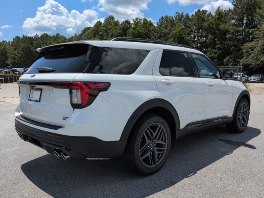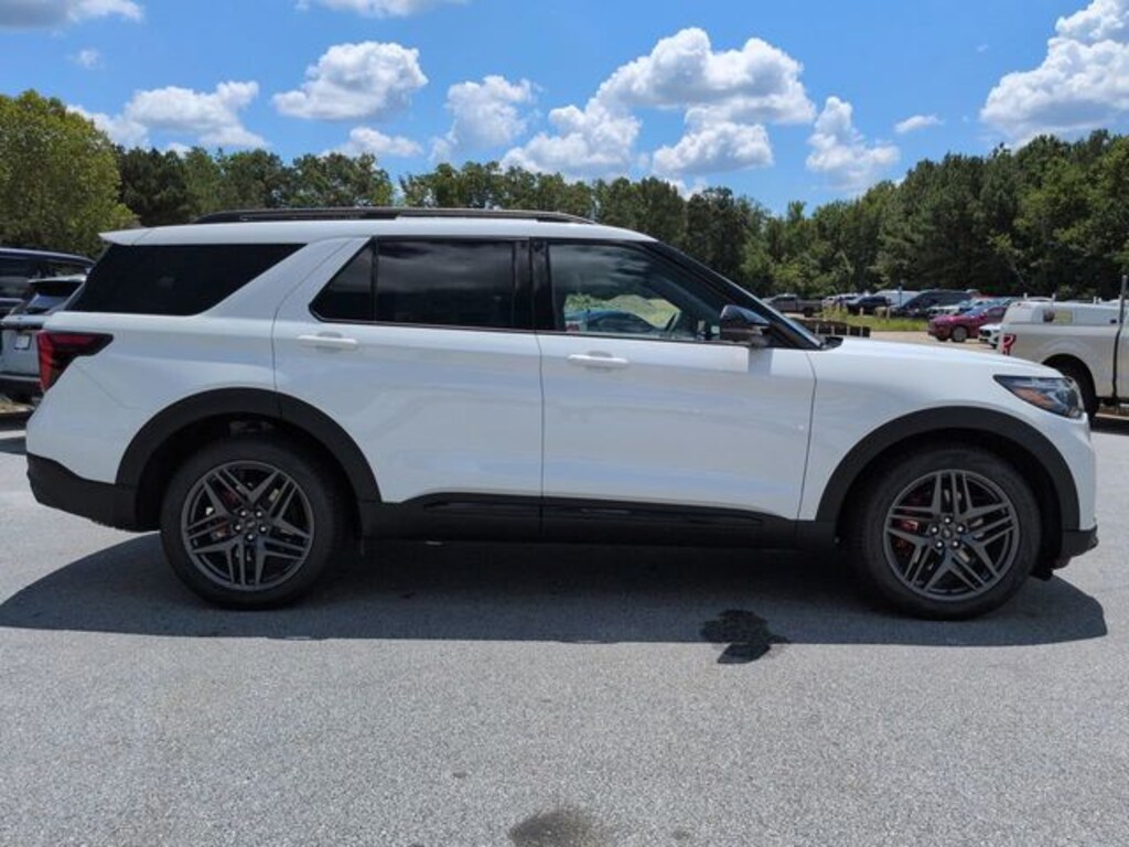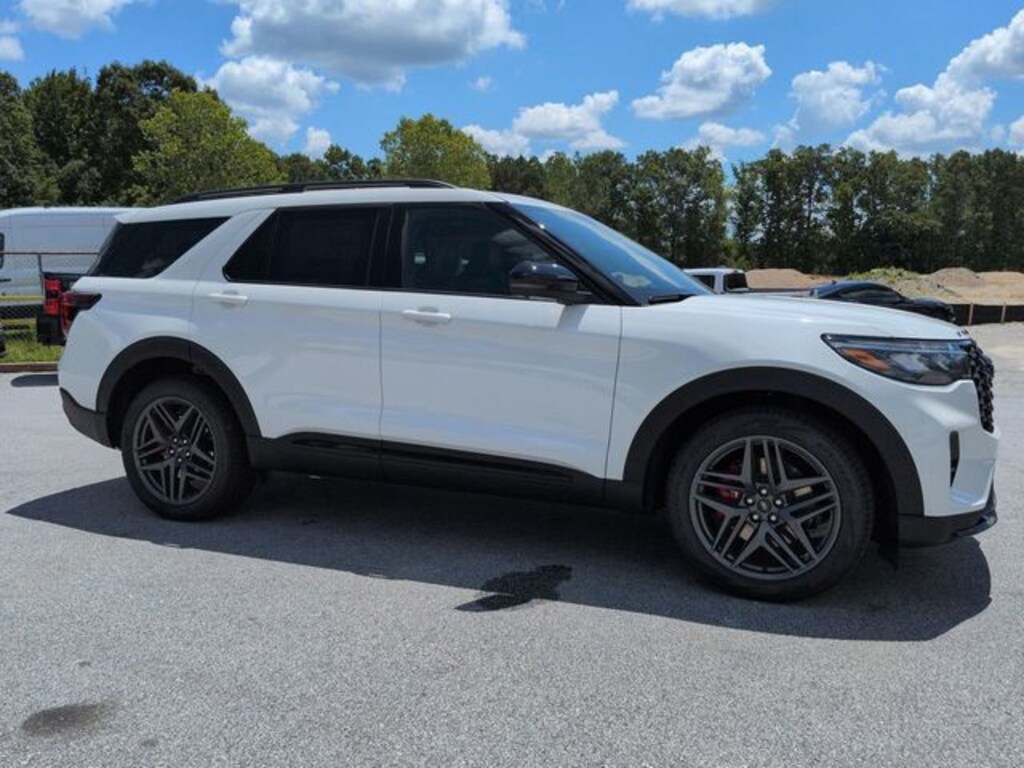 2025 Star White Metallic Tri-Coat 2025 Ford Explorer ST ST 4D Sport Utility 4WD 3.0L EcoBoost V6 4D Sport Utility, 3.0L EcoBoost V6, 10-Speed Automatic, 4WD, 12.4" LCD Digital Driver Cluster, 13.2" LCD Centerstack Touchscreen, 3rd Row Seating, Android Auto, Apple Carplay, Auto LED Headlights, B&O Sound System by Bang & Olufsen, Backup Camera, Bluetooth w/ Audio Streaming, Equipment Group 400A Standard Package, Intersection Assist, LED Foglights, Memory Package, Memory seat, Multicontour Seats w/Front Active Motion, Navigation System, Panoramic Sunroof/Moonroof, Panoramic Vista Roof w/Power Shade, Power Mirror Package, Power Package, Premium Sound Package, Sport Package, Sun and Sound Package, Tow Package, Trailer Package. Equipment Group 400A Standard Package, Sun and Sound Package (B&O Sound System by Bang & Olufsen, Multicontour Seats w/Front Active Motion, and Panoramic Vista Roof w/Power Shade), 4D Sport Utility, 3.0L EcoBoost V6, 10-Speed Automatic, 4WD, 12.4" LCD Digital Driver Cluster, 13.2" LCD Centerstack Touchscreen, 3rd Row Seating, Android Auto, Apple Carplay, Auto LED Headlights, Backup Camera, Bluetooth w/ Audio Streaming, Intersection Assist, LED Foglights, Memory Package, Memory seat, Navigation System, Panoramic Sunroof/Moonroof, Power Mirror Package, Power Package, Premium Sound Package, Sport Package, Tow Package, Trailer Package, 10 Speakers, 3.58 Non-Limited Slip Rear Axle, 3rd row seats: bench, 4-Wheel Disc Brakes, ABS brakes, Air Conditioning, Alloy wheels, Apple CarPlay/Android Auto, Auto High-beam Headlights, Auto-dimming door mirrors, Auto-dimming Rear-View mirror, Automatic temperature control, Brake assist, Bumpers: body-color, Compass, Delay-off headlights, Driver door bin, Driver vanity mirror, Dual front impact airbags, Dual front side impact airbags, Electronic Stability Control, Emergency communication system: 911 Assist, Exterior Parking Camera Rear, Ford BlueCruise Equipped (1-Year Plan), Four wheel independent suspension, Front anti-roll bar, Front Bucket Seats, Front Center Armrest, Front dual zone A/C, Front fog lights, Front reading lights, Fully automatic headlights, Garage door transmitter, Heated door mirrors, Heated front seats, Heated rear seats, Heated steering wheel, Heated/Ventilated Miko Sport Captain's Chairs, Illuminated entry, Knee airbag, Leather steering wheel, Low tire pressure warning, Occupant sensing airbag, Outside temperature display, Overhead airbag, Overhead console, Panic alarm, Passenger door bin, Passenger vanity mirror, Power door mirrors, Power driver seat, Power Liftgate, Power passenger seat, Power steering, Power windows, Radio: B&O Sound System by Bang & Olufsen, Rain sensing wipers, Rear air conditioning, Rear anti-roll bar, Rear reading lights, Rear window defroster, Rear window wiper, Remote keyless entry, Security system, Speed control, Speed-sensing steering, Speed-Sensitive Wipers, Split folding rear seat, Spoiler, Sport steering wheel, Steering wheel mounted audio controls, Tachometer, Telescoping steering wheel, Tilt steering wheel, Traction control, Trip computer, Turn signal indicator mirrors, Variably intermittent wipers, Ventilated front seats, and Wheels: 21" Magnetite-Painted Aluminum.