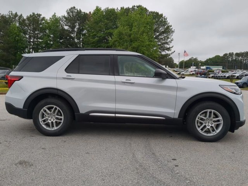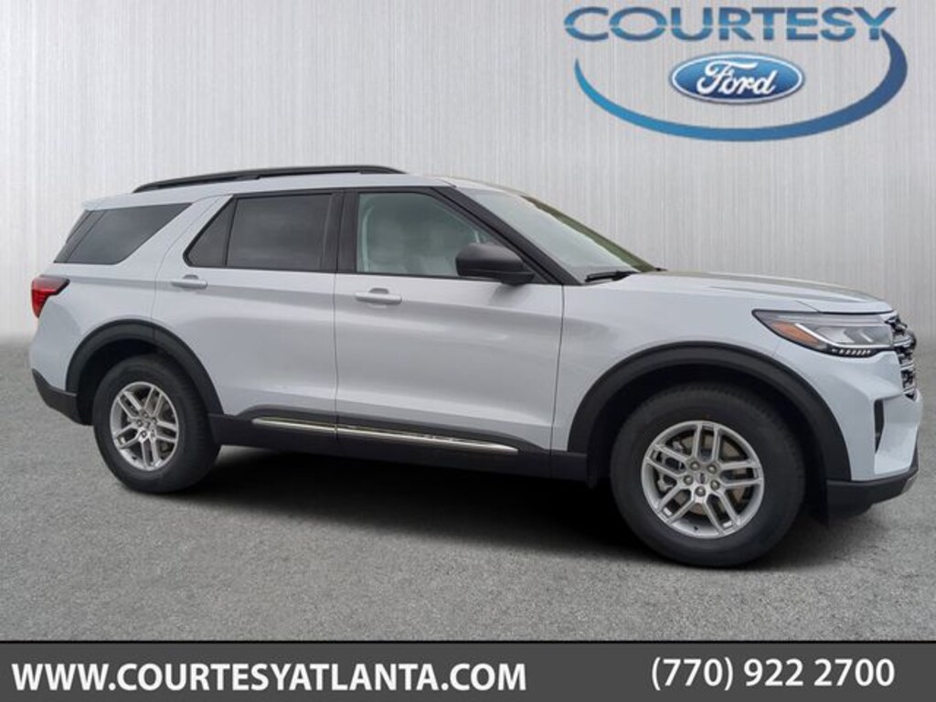 2025 Space White Metallic 2025 Ford Explorer Active Active 4D Sport Utility RWD 2.3L EcoBoost I-4 12.4" LCD Digital Driver Cluster, 13.2" LCD Centerstack Touchscreen, 3rd Row Seating, Android Auto, Apple Carplay, Auto LED Headlights, Backup Camera, Bluetooth w/ Audio Streaming, Cold Weather Package, Hill Start Assist, Intersection Assist, Push Button Start, Remote Start, Side-Wind Stabilization, 4D Sport Utility, 2.3L EcoBoost I-4, 10-Speed Automatic, 4-Wheel Disc Brakes, ABS brakes, Active Comfort Package, Equipment Group 200A Standard Package, Front Fascia, Heated ActiveX Seating Material Captain's Chairs, Heated Steering Wheel, Navigation System, Remote Start System, Second Row HVAC Controls, Universal Garage Door Opener (UGDO). Active Comfort Package (Front Fascia, Heated ActiveX Seating Material Captain's Chairs, Heated Steering Wheel, Remote Start System, Second Row HVAC Controls, and Universal Garage Door Opener (UGDO)), Equipment Group 200A Standard Package, 4D Sport Utility, 2.3L EcoBoost I-4, 10-Speed Automatic, 4-Wheel Disc Brakes, ABS brakes, Navigation System, 2nd Row 35/30/35 Bench w/E-Z Entry & Armrest, 3.58 Non-Limited Slip Rear Axle, 3rd row seats: bench, 6 Speakers, Air Conditioning, Alloy wheels, AM/FM Stereo, Apple CarPlay/Android Auto, Auto High-beam Headlights, Automatic temperature control, Brake assist, Bumpers: body-color, Compass, Delay-off headlights, Driver door bin, Driver vanity mirror, Dual front impact airbags, Dual front side impact airbags, Electronic Stability Control, Emergency communication system: 911 Assist, Exterior Parking Camera Rear, Four wheel independent suspension, Front anti-roll bar, Front Bucket Seats, Front Center Armrest, Front dual zone A/C, Front reading lights, Fully automatic headlights, Heated door mirrors, Heated front seats, Illuminated entry, Knee airbag, Leather steering wheel, Low tire pressure warning, Occupant sensing airbag, Outside temperature display, Overhead airbag, Overhead console, Panic alarm, Passenger door bin, Passenger vanity mirror, Power door mirrors, Power driver seat, Power Liftgate, Power passenger seat, Power steering, Power windows, Rear air conditioning, Rear anti-roll bar, Rear reading lights, Rear window defroster, Rear window wiper, Remote keyless entry, Speed control, Speed-sensing steering, Speed-Sensitive Wipers, Split folding rear seat, Spoiler, Steering wheel mounted audio controls, Tachometer, Telescoping steering wheel, Tilt steering wheel, Traction control, Trip computer, Unique Heated Cloth Captain's Chairs, Variably intermittent wipers, and Wheels: 18" Sparkle Silver-Painted Aluminum.