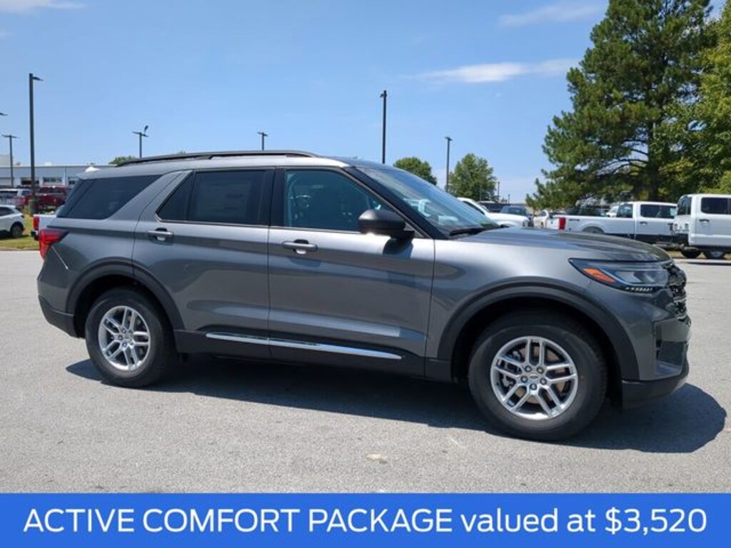 2025 Carbonized Gray Metallic 2025 Ford Explorer Active Active 4D Sport Utility RWD 2.3L EcoBoost I-4 ABS brakes, Active Cruise Control, Alloy wheels, Compass, Electronic Stability Control, Front dual zone A/C, Heated door mirrors, Heated front seats, Illuminated entry, Low tire pressure warning, Navigation System, Power Liftgate, Remote keyless entry, Traction control. ABS brakes, Active Cruise Control, Alloy wheels, Compass, Electronic Stability Control, Front dual zone A/C, Heated door mirrors, Heated front seats, Illuminated entry, Low tire pressure warning, Navigation System, Power Liftgate, Remote keyless entry, Traction control, 3.58 Non-Limited Slip Rear Axle, 3rd row seats: bench, 4-Wheel Disc Brakes, 6 Speakers, Air Conditioning, AM/FM Stereo, Apple CarPlay/Android Auto, Auto High-beam Headlights, Automatic temperature control, Brake assist, Bumpers: body-color, Delay-off headlights, Driver door bin, Driver vanity mirror, Dual front impact airbags, Dual front side impact airbags, Emergency communication system: 911 Assist, Exterior Parking Camera Rear, Four wheel independent suspension, Front anti-roll bar, Front Bucket Seats, Front Center Armrest, Front reading lights, Fully automatic headlights, Knee airbag, Leather steering wheel, Occupant sensing airbag, Outside temperature display, Overhead airbag, Overhead console, Panic alarm, Passenger door bin, Passenger vanity mirror, Power door mirrors, Power driver seat, Power passenger seat, Power steering, Power windows, Rear air conditioning, Rear anti-roll bar, Rear reading lights, Rear window defroster, Rear window wiper, Speed control, Speed-sensing steering, Speed-Sensitive Wipers, Split folding rear seat, Spoiler, Steering wheel mounted audio controls, Tachometer, Telescoping steering wheel, Tilt steering wheel, Trip computer, Unique Heated Cloth Captain's Chairs, Variably intermittent wipers, and Wheels: 18" Sparkle Silver-Painted Aluminum.