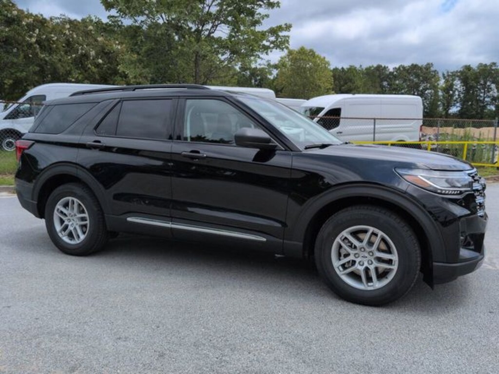 2025 Agate Black Metallic 2025 Ford Explorer Active Active 4D Sport Utility RWD 2.3L EcoBoost I-4 4D Sport Utility, 2.3L EcoBoost I-4, 10-Speed Automatic, RWD, 12.4" LCD Digital Driver Cluster, 13.2" LCD Centerstack Touchscreen, 3rd Row Seating, Active Comfort Package, Android Auto, Apple Carplay, Auto LED Headlights, Backup Camera, Bluetooth w/ Audio Streaming, Equipment Group 200A Standard Package, Front Fascia, Heated ActiveX Seating Material Captain's Chairs, Heated Steering Wheel, Hill Start Assist, Intersection Assist, LED Foglights, Navigation System, Remote Start, Remote Start System, Second Row HVAC Controls, Side-Wind Stabilization, Tow Package, Trailer Package, Universal Garage Door Opener (UGDO). Active Comfort Package (Front Fascia, Heated ActiveX Seating Material Captain's Chairs, Heated Steering Wheel, Remote Start System, Second Row HVAC Controls, and Universal Garage Door Opener (UGDO)), Equipment Group 200A Standard Package, 4D Sport Utility, 2.3L EcoBoost I-4, 10-Speed Automatic, RWD, 12.4" LCD Digital Driver Cluster, 13.2" LCD Centerstack Touchscreen, 3rd Row Seating, Android Auto, Apple Carplay, Auto LED Headlights, Backup Camera, Bluetooth w/ Audio Streaming, Hill Start Assist, Intersection Assist, LED Foglights, Navigation System, Remote Start, Side-Wind Stabilization, Tow Package, Trailer Package, 3.58 Non-Limited Slip Rear Axle, 3rd row seats: bench, 4-Wheel Disc Brakes, 6 Speakers, ABS brakes, Air Conditioning, Alloy wheels, AM/FM Stereo, Apple CarPlay/Android Auto, Auto High-beam Headlights, Automatic temperature control, Brake assist, Bumpers: body-color, Compass, Delay-off headlights, Driver door bin, Driver vanity mirror, Dual front impact airbags, Dual front side impact airbags, Electronic Stability Control, Emergency communication system: 911 Assist, Exterior Parking Camera Rear, Four wheel independent suspension, Front anti-roll bar, Front Bucket Seats, Front Center Armrest, Front dual zone A/C, Front reading lights, Fully automatic headlights, Heated door mirrors, Heated front seats, Illuminated entry, Knee airbag, Leather steering wheel, Low tire pressure warning, Occupant sensing airbag, Outside temperature display, Overhead airbag, Overhead console, Panic alarm, Passenger door bin, Passenger vanity mirror, Power door mirrors, Power driver seat, Power Liftgate, Power passenger seat, Power steering, Power windows, Rear air conditioning, Rear anti-roll bar, Rear reading lights, Rear window defroster, Rear window wiper, Remote keyless entry, Speed control, Speed-sensing steering, Speed-Sensitive Wipers, Split folding rear seat, Spoiler, Steering wheel mounted audio controls, Tachometer, Telescoping steering wheel, Tilt steering wheel, Traction control, Trip computer, Unique Heated Cloth Captain's Chairs, Variably intermittent wipers, and Wheels: 18" Sparkle Silver-Painted Aluminum.