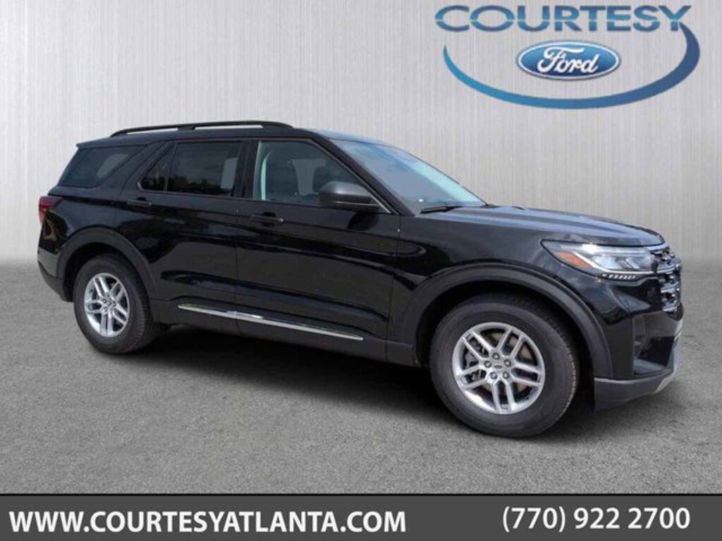 2025 Agate Black Metallic 2025 Ford Explorer Active Active 4D Sport Utility RWD 2.3L EcoBoost I-4 4D Sport Utility, 2.3L EcoBoost I-4, 10-Speed Automatic, RWD, 12.3" HD Color Driver Cluster, 13.2" LCD Centerstack Touchscreen, 3.58 Non-Limited Slip Rear Axle, 3rd Row Seating, 3rd row seats: bench, 4-Wheel Disc Brakes, ABS brakes, Active Comfort Package, Apple CarPlay/Android Auto, Auto High-beam Headlights, Auto LED Headlights, Automatic temperature control, Backup Camera, Brake assist, Compass, Delay-off headlights, Electronic Stability Control, Emergency communication system: 911 Assist, Equipment Group 200A Standard Package, Exterior Parking Camera Rear, Four wheel independent suspension, Front Center Armrest, Front dual zone A/C, Front Fascia, Fully automatic headlights, Heated ActiveX Seating Material Captain's Chairs, Heated door mirrors, Heated front seats, Heated Steering Wheel, Hill Start Assist, Illuminated entry, Intersection Assist, Leather steering wheel, LED Foglights, Low tire pressure warning, Multi Zone Climate Control, Navigation System, Outside temperature display, Overhead console, Panic alarm, Power door mirrors, Power driver seat, Power Liftgate, Power passenger seat, Power steering, Power windows, Rear air conditioning, Rear window defroster, Rear window wiper, Remote keyless entry, Remote Start System, Second Row HVAC Controls, Speed control, Speed-sensing steering, Speed-Sensitive Wipers, Split folding rear seat, Spoiler, Steering wheel mounted audio controls, Telescoping steering wheel, Traction control, Unique Heated Cloth Captain's Chairs, Universal Garage Door Opener (UGDO), Variably intermittent wipers, Wheels: 18" Sparkle Silver-Painted Aluminum. Active Comfort Package (Front Fascia, Heated ActiveX Seating Material Captain's Chairs, Heated Steering Wheel, Remote Start System, Second Row HVAC Controls, and Universal Garage Door Opener (UGDO)), Equipment Group 200A Standard Package, 4D Sport Utility, 2.3L EcoBoost I-4, 10-Speed Automatic, RWD, 12.3" HD Color Driver Cluster, 13.2" LCD Centerstack Touchscreen, 3.58 Non-Limited Slip Rear Axle, 3rd Row Seating, 3rd row seats: bench, 4-Wheel Disc Brakes, ABS brakes, Apple CarPlay/Android Auto, Auto High-beam Headlights, Auto LED Headlights, Automatic temperature control, Backup Camera, Brake assist, Compass, Delay-off headlights, Electronic Stability Control, Emergency communication system: 911 Assist, Exterior Parking Camera Rear, Four wheel independent suspension, Front Center Armrest, Front dual zone A/C, Fully automatic headlights, Heated door mirrors, Heated front seats, Hill Start Assist, Illuminated entry, Intersection Assist, Leather steering wheel, LED Foglights, Low tire pressure warning, Multi Zone Climate Control, Navigation System, Outside temperature display, Overhead console, Panic alarm, Power door mirrors, Power driver seat, Power Liftgate, Power passenger seat, Power steering, Power windows, Rear air conditioning, Rear window defroster, Rear window wiper, Remote keyless entry, Speed control, Speed-sensing steering, Speed-Sensitive Wipers, Split folding rear seat, Spoiler, Steering wheel mounted audio controls, Telescoping steering wheel, Traction control, Unique Heated Cloth Captain's Chairs, Variably intermittent wipers, Wheels: 18" Sparkle Silver-Painted Aluminum, 6 Speakers, Air Conditioning, Alloy wheels, AM/FM Stereo, Bumpers: body-color, Driver door bin, Driver vanity mirror, Dual front impact airbags, Dual front side impact airbags, Front anti-roll bar, Front Bucket Seats, Front reading lights, Knee airbag, Occupant sensing airbag, Overhead airbag, Passenger door bin, Passenger vanity mirror, Rear anti-roll bar, Rear reading lights, Tachometer, and Trip computer.