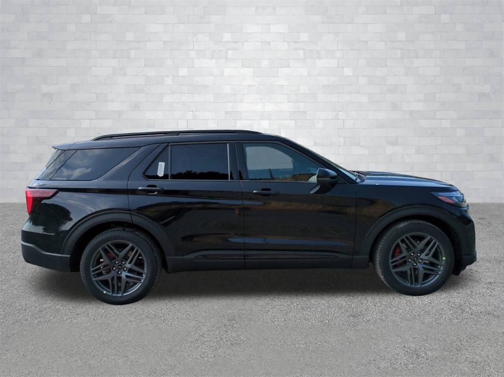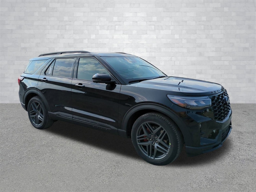 2025 Agate Black Metallic 2025 Ford Explorer ST 4WD 3.0L EcoBoost V6 12.4" LCD Digital Driver Cluster, 13.2" LCD Centerstack Touchscreen, 3rd Row Seating, Android Auto, Apple Carplay, Auto LED Headlights, Backup Camera, BlueCruise, Bluetooth w/ Audio Streaming, Intersection Assist, Multi Zone Climate Control, Panoramic Sunroof/Moonroof, Power Mirror Package, Power Package, Premium Sound Package, Push Button Start, Remote Start, Sport Package, Tow Package, Trailer Package, Wireless Charging Pad, 4D Sport Utility, 3.0L EcoBoost V6, 10-Speed Automatic, 4WD, B&O Sound System by Bang & Olufsen, Equipment Group 400A Standard Package, Multicontour Seats w/Front Active Motion, Navigation System, Panoramic Vista Roof w/Power Shade, Sun and Sound Package. Equipment Group 400A Standard Package, Sun and Sound Package (B&O Sound System by Bang & Olufsen, Multicontour Seats w/Front Active Motion, and Panoramic Vista Roof w/Power Shade), 4D Sport Utility, 3.0L EcoBoost V6, 10-Speed Automatic, 4WD, Navigation System, 10 Speakers, 3.58 Non-Limited Slip Rear Axle, 3rd row seats: bench, 4-Wheel Disc Brakes, ABS brakes, Air Conditioning, Alloy wheels, Apple CarPlay/Android Auto, Auto High-beam Headlights, Auto-dimming door mirrors, Auto-dimming Rear-View mirror, Automatic temperature control, Brake assist, Bumpers: body-color, Compass, Delay-off headlights, Driver door bin, Driver vanity mirror, Dual front impact airbags, Dual front side impact airbags, Electronic Stability Control, Emergency communication system: 911 Assist, Exterior Parking Camera Rear, Four wheel independent suspension, Front anti-roll bar, Front Bucket Seats, Front Center Armrest, Front dual zone A/C, Front fog lights, Front reading lights, Fully automatic headlights, Garage door transmitter, Heated door mirrors, Heated front seats, Heated rear seats, Heated steering wheel, Heated/Ventilated Miko Sport Captain's Chairs, Illuminated entry, Knee airbag, Leather steering wheel, Low tire pressure warning, Memory seat, Occupant sensing airbag, Outside temperature display, Overhead airbag, Overhead console, Panic alarm, Passenger door bin, Passenger vanity mirror, Power door mirrors, Power driver seat, Power Liftgate, Power passenger seat, Power steering, Power windows, Radio: B&O Sound System by Bang & Olufsen, Rain sensing wipers, Rear air conditioning, Rear anti-roll bar, Rear reading lights, Rear window defroster, Rear window wiper, Remote keyless entry, Security system, Speed control, Speed-sensing steering, Speed-Sensitive Wipers, Split folding rear seat, Spoiler, Sport steering wheel, Steering wheel mounted audio controls, Tachometer, Telescoping steering wheel, Tilt steering wheel, Traction control, Trip computer, Turn signal indicator mirrors, Ventilated front seats, and Wheels: 21" Magnetite-Painted Aluminum Courtesy Ford and Lincoln of Rome 101 Hwy 411 E Rome, Ga 30161 ROMEFORDLINC.COM 706.235.4453.