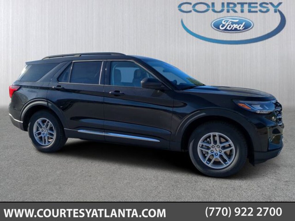 2025 Agate Black Metallic 2025 Ford Explorer Active Active 4D Sport Utility RWD 2.3L EcoBoost I-4 12.4" LCD Digital Driver Cluster, 13.2" LCD Centerstack Touchscreen, Android Auto, Apple Carplay, Auto LED Headlights, Backup Camera, Bluetooth w/ Audio Streaming, LED Foglights, Push Button Start, Remote Start, 4D Sport Utility, 2.3L EcoBoost I-4, 10-Speed Automatic, Active Comfort Package, Equipment Group 200A Standard Package, Front Fascia, Heated ActiveX Seating Material Captain's Chairs, Heated Steering Wheel, Remote Start System, Universal Garage Door Opener (UGDO). Active Comfort Package (Front Fascia, Heated ActiveX Seating Material Captain's Chairs, Heated Steering Wheel, Remote Start System, and Universal Garage Door Opener (UGDO)), Equipment Group 200A Standard Package, 4D Sport Utility, 2.3L EcoBoost I-4, 10-Speed Automatic, 3.58 Non-Limited Slip Rear Axle, 3rd row seats: bench, 4-Wheel Disc Brakes, 6 Speakers, ABS brakes, Air Conditioning, Alloy wheels, AM/FM Stereo, Apple CarPlay/Android Auto, Auto High-beam Headlights, Automatic temperature control, Brake assist, Bumpers: body-color, Compass, Delay-off headlights, Driver door bin, Driver vanity mirror, Dual front impact airbags, Dual front side impact airbags, Electronic Stability Control, Emergency communication system: 911 Assist, Exterior Parking Camera Rear, Four wheel independent suspension, Front anti-roll bar, Front Bucket Seats, Front Center Armrest, Front dual zone A/C, Front reading lights, Fully automatic headlights, Heated door mirrors, Heated front seats, Illuminated entry, Knee airbag, Leather steering wheel, Low tire pressure warning, Navigation System, Occupant sensing airbag, Outside temperature display, Overhead airbag, Overhead console, Panic alarm, Passenger door bin, Passenger vanity mirror, Power door mirrors, Power driver seat, Power Liftgate, Power passenger seat, Power steering, Power windows, Rear air conditioning, Rear anti-roll bar, Rear reading lights, Rear window defroster, Rear window wiper, Remote keyless entry, Speed control, Speed-sensing steering, Speed-Sensitive Wipers, Split folding rear seat, Spoiler, Steering wheel mounted audio controls, Tachometer, Telescoping steering wheel, Tilt steering wheel, Traction control, Trip computer, Unique Heated Cloth Captain's Chairs, Variably intermittent wipers, and Wheels: 18" Sparkle Silver-Painted Aluminum.