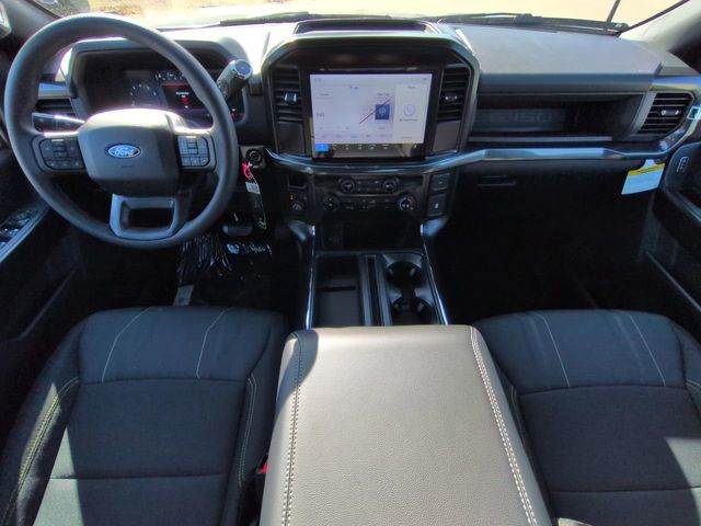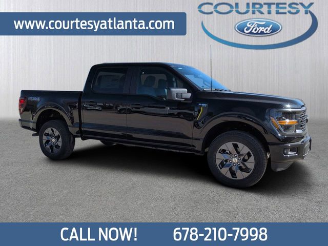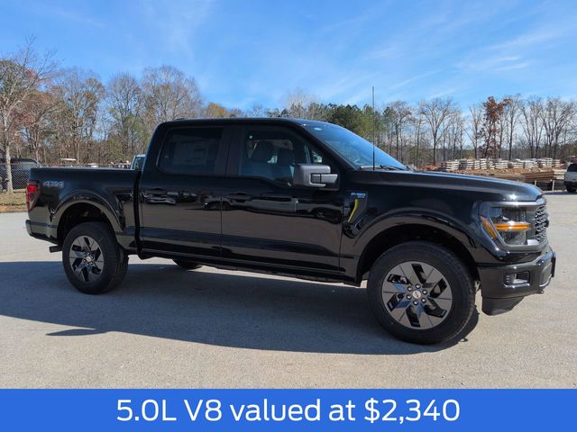 2025 Agate Black Metallic 2025 Ford F-150 STX STX 4D SuperCrew 4WD 5.0L V8 4WD. Equipment Group 200A Mid (LED Fog Lamps w/LED Cornering Lamp and Wheels: 20" Dark Gray w/Machined Aluminum), GVWR: 6,650 lbs Payload Package, 4WD, 4-Wheel Disc Brakes, 6 Speakers, ABS brakes, Air Conditioning, Alloy wheels, AM/FM radio: SiriusXM with 360L, Auto High-beam Headlights, Brake assist, Bumpers: body-color, Compass, Delay-off headlights, Driver door bin, Dual front impact airbags, Dual front side impact airbags, Electronic Stability Control, Emergency communication system: SYNC 4 911 Assist, Front anti-roll bar, Front Bucket Seats, Front Center Armrest, Front License Plate Bracket, Front reading lights, Front wheel independent suspension, Fully automatic headlights, Heated door mirrors, Illuminated entry, Internet access capable: FordPass Connect 5G, Low tire pressure warning, Occupant sensing airbag, Outside temperature display, Overhead airbag, Overhead console, Panic alarm, Passenger door bin, Passenger vanity mirror, Power door mirrors, Power steering, Power windows, Radio data system, Radio: AM/FM Stereo w/SiriusXM 360L, Rear Parking Sensors, Rear step bumper, Rear window defroster, Remote keyless entry, Security system, Speed control, Split folding rear seat, Steering wheel mounted audio controls, SYNC 4 w/Enhanced Voice Recognition, Tachometer, Telescoping steering wheel, Tilt steering wheel, Traction control, Trip computer, Unique Sport Cloth 40/Console/40 Front-Seats, Variably intermittent wipers, Voltmeter, and Wheels: 18" Gloss Black.
