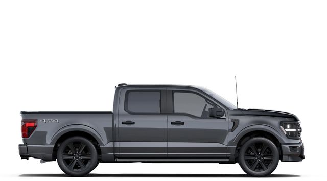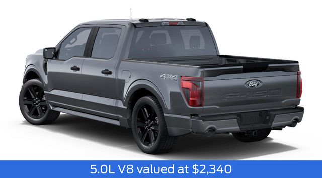 2025 Carbonized Gray Metallic 2025 Ford F-150 STX STX 4D SuperCrew 4WD 5.0L V8 4WD. GVWR: 6,650 lbs Payload Package, Lobo Package (Dual Exhaust w/Black Tips, Lower Body Ground Effects, Painted Grille, Signature Lighting, Two-Speed Auto 4WD w/Neutral Towing Capability, and Wheels: 22" Aluminum), Mobile Office Package (400W Cab & Bed Outlets and Console Worksurface), 4WD, 4-Wheel Disc Brakes, 6 Speakers, ABS brakes, Air Conditioning, Alloy wheels, AM/FM radio: SiriusXM with 360L, Auto High-beam Headlights, Brake assist, Bumpers: body-color, Compass, Delay-off headlights, Driver door bin, Dual front impact airbags, Dual front side impact airbags, Electronic Stability Control, Emergency communication system: SYNC 4 911 Assist, Front anti-roll bar, Front Bucket Seats, Front Center Armrest, Front reading lights, Front wheel independent suspension, Fully automatic headlights, Heated door mirrors, Illuminated entry, Internet access capable: FordPass Connect 5G, Low tire pressure warning, Occupant sensing airbag, Outside temperature display, Overhead airbag, Overhead console, Panic alarm, Passenger door bin, Passenger vanity mirror, Power door mirrors, Power steering, Power windows, Radio data system, Radio: AM/FM Stereo w/SiriusXM 360L, Rear Parking Sensors, Rear step bumper, Rear window defroster, Remote keyless entry, Security system, Speed control, Split folding rear seat, Steering wheel mounted audio controls, SYNC 4 w/Enhanced Voice Recognition, Tachometer, Telescoping steering wheel, Tilt steering wheel, Traction control, Trip computer, Unique Sport Cloth 40/Console/40 Front-Seats, Variably intermittent wipers, Voltmeter, and Wheels: 18" Gloss Black.