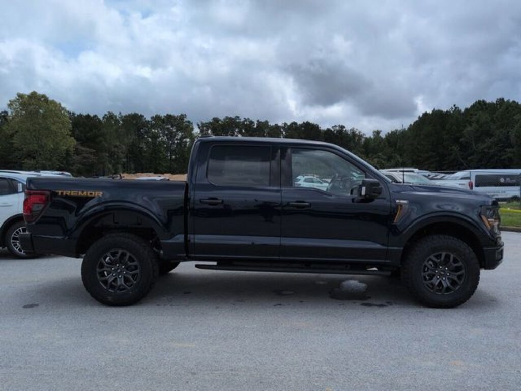 2025 Antimatter Blue Metallic 2025 Ford F-150 Tremor Tremor 4D SuperCrew 4WD 5.0L V8 4D SuperCrew, 5.0L V8, 10-Speed Automatic, 4WD, 12" LCD Productivity Touchscreen, 4 Pickup Box Tie-Down Plates, 5G WiFi Hotspot Telematics, Auto Emergency Braking, Auto LED Headlights, Backup Camera, Bed Utility Package, Blind Spot Monitoring, BLIS w/ Cross Traffic Alert, Bluetooth w/ Audio Streaming, Console Worksurface, Electronic Locking w/3.73 Axle Ratio, Equipment Group 401A Standard, GVWR: 7,100 lbs Payload Package, Hill Descent Control, Integrated Trailer Brake Controller, Lane Keeping System, LED Box Lighting, Mobile Office Package, Navigation system: Connected Navigation, Off Road Package, Parking Sensors, Partitioned Lockable Rear Storage, Post Collision Braking, Power Tailgate, Pre Collision Assist w/ AEB, Reverse Brake Assist, Reverse Sensing, Skid Plate Package, Tow Package, Tow/Haul Package, Trailer Package, Wireless Charging, Wireless Charging Pad. Bed Utility Package (4 Pickup Box Tie-Down Plates, LED Box Lighting, and Power Tailgate), Equipment Group 401A Standard (Electronic Locking w/3.73 Axle Ratio), GVWR: 7,100 lbs Payload Package, Mobile Office Package (Console Worksurface, Partitioned Lockable Rear Storage, and Wireless Charging), Tow/Haul Package (Integrated Trailer Brake Controller), 4D SuperCrew, 5.0L V8, 10-Speed Automatic, 4WD, 12" LCD Productivity Touchscreen, 5G WiFi Hotspot Telematics, Auto Emergency Braking, Auto LED Headlights, Backup Camera, Blind Spot Monitoring, BLIS w/ Cross Traffic Alert, Bluetooth w/ Audio Streaming, Hill Descent Control, Lane Keeping System, Navigation system: Connected Navigation, Off Road Package, Parking Sensors, Post Collision Braking, Pre Collision Assist w/ AEB, Reverse Brake Assist, Reverse Sensing, Skid Plate Package, Tow Package, Trailer Package, Wireless Charging Pad, 4-Wheel Disc Brakes, 8 Speakers, ABS brakes, Adjustable pedals, Air Conditioning, Alloy wheels, AM/FM radio: SiriusXM with 360L, Auto High-beam Headlights, Auto-dimming door mirrors, Auto-dimming Rear-View mirror, Automatic temperature control, Brake assist, Bumpers: body-color, Compass, Delay-off headlights, Driver door bin, Driver vanity mirror, Dual front impact airbags, Dual front side impact airbags, Electronic Stability Control, Emergency communication system: SYNC 4 911 Assist, Front anti-roll bar, Front Bucket Seats, Front Center Armrest, Front dual zone A/C, Front fog lights, Front reading lights, Front wheel independent suspension, Fully automatic headlights, Heated door mirrors, Heated front seats, Illuminated entry, Low tire pressure warning, Occupant sensing airbag, Outside temperature display, Overhead airbag, Overhead console, Panic alarm, Passenger door bin, Passenger vanity mirror, Power door mirrors, Power driver seat, Power passenger seat, Power steering, Power windows, Radio data system, Radio: B&O Sound System by Bang & Olufsen, Rear reading lights, Rear step bumper, Rear window defroster, Remote keyless entry, Security system, Speed control, Split folding rear seat, Steering wheel mounted audio controls, SYNC 4 w/Enhanced Voice Recognition, Tachometer, Tailgate Step w/Tailgate Work Surface, Telescoping steering wheel, Tilt steering wheel, Traction control, Trip computer, Turn signal indicator mirrors, Unique Sport Cloth 40/Console/40 Power Front Seat, Variably intermittent wipers, Voltmeter, and Wheels: 18" Alloy w/Dark Matte Finish.