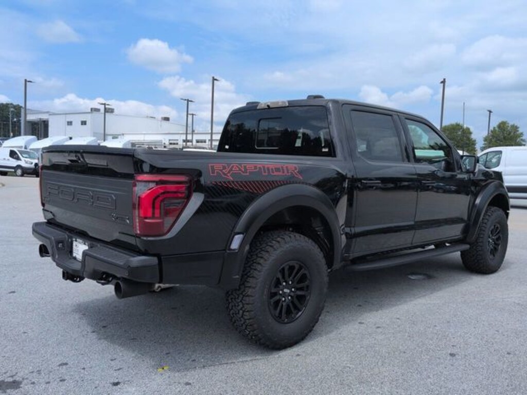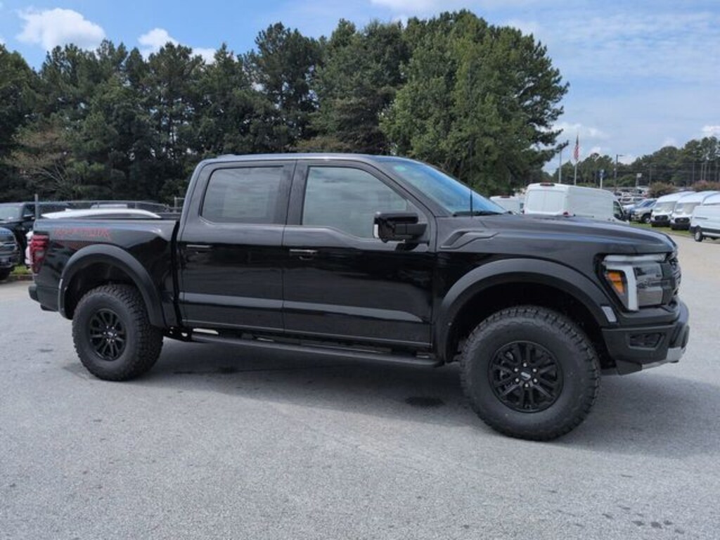 2025 Agate Black Metallic 2025 Ford F-150 Raptor Raptor 4D SuperCrew 4WD 3.5L V6 EcoBoost 4D SuperCrew, 3.5L V6 EcoBoost, 10-Speed Automatic, 4WD, 12" LCD Productivity Touchscreen, 360-Degree Camera, 5G WiFi Hotspot Telematics, Auto Emergency Braking, Auto LED Headlights, Backup Camera, Blind Spot Monitoring, BLIS w/ Cross Traffic Alert, Bluetooth w/ Audio Streaming, Electronic Locking w/4.10 Axle Ratio, Equipment Group 801A Standard, Lane Keeping System, Leather Seats, LED Foglights, LED Projector Headlights, Navigation system: Connected Navigation, Off Road Package, Panoramic Sunroof/Moonroof, Parking Sensors, Post Collision Braking, Power Mirror Package, Power Package, Pre Collision Assist w/ AEB, Pro Trailer Backup Assist, Pro Trailer Hitch Assist, Radio: B&O Unleashed Sound System by Bang & Olufsen, Reverse Brake Assist, Reverse Sensing, Skid Plate Package, SYNC 4 w/Enhanced Voice Recognition, Tow Package, Trailer Package. Equipment Group 801A Standard (Electronic Locking w/4.10 Axle Ratio), 4D SuperCrew, 3.5L V6 EcoBoost, 10-Speed Automatic, 4WD, 12" LCD Productivity Touchscreen, 360-Degree Camera, 5G WiFi Hotspot Telematics, Auto Emergency Braking, Auto LED Headlights, Backup Camera, Blind Spot Monitoring, BLIS w/ Cross Traffic Alert, Bluetooth w/ Audio Streaming, Lane Keeping System, Leather Seats, LED Foglights, LED Projector Headlights, Navigation system: Connected Navigation, Off Road Package, Panoramic Sunroof/Moonroof, Parking Sensors, Post Collision Braking, Power Mirror Package, Power Package, Pre Collision Assist w/ AEB, Pro Trailer Backup Assist, Pro Trailer Hitch Assist, Radio: B&O Unleashed Sound System by Bang & Olufsen, Reverse Brake Assist, Reverse Sensing, Skid Plate Package, SYNC 4 w/Enhanced Voice Recognition, Tow Package, Trailer Package, 14 Speakers, 17" Cast Aluminum Wheels, 4-Wheel Disc Brakes, ABS brakes, Adjustable pedals, Air Conditioning, Alloy wheels, AM/FM radio: SiriusXM with 360L, Auto High-beam Headlights, Auto tilt-away steering wheel, Auto-dimming door mirrors, Auto-dimming Rear-View mirror, Automatic temperature control, Brake assist, Bumpers: body-color, Compass, Delay-off headlights, Driver door bin, Driver vanity mirror, Dual front impact airbags, Dual front side impact airbags, Electronic Stability Control, Emergency communication system: SYNC 4 911 Assist, Front anti-roll bar, Front Bucket Seats, Front Center Armrest, Front dual zone A/C, Front fog lights, Front reading lights, Front wheel independent suspension, Fully automatic headlights, Garage door transmitter, Heads-Up Display, Heated door mirrors, Heated front seats, Heated rear seats, Heated steering wheel, Illuminated entry, Lane Departure Warning System, Leather steering wheel, Leather Trim Seats, Low tire pressure warning, Memory seat, Occupant sensing airbag, Outside temperature display, Overhead airbag, Overhead console, Panic alarm, Passenger door bin, Passenger vanity mirror, Pedal memory, Power door mirrors, Power driver seat, Power passenger seat, Power steering, Power windows, Radio data system, Rain sensing wipers, Rear reading lights, Rear step bumper, Rear window defroster, RECARO w/Code Orange Stitching Front Seats, Remote keyless entry, Security system, Speed control, Speed-sensing steering, Split folding rear seat, Steering wheel memory, Steering wheel mounted audio controls, Tachometer, Telescoping steering wheel, Tilt steering wheel, Tough Bed Spray-In Bedliner, Traction control, Trip computer, Turn signal indicator mirrors, Twin Panel Moonroof, and Ventilated front seats.
