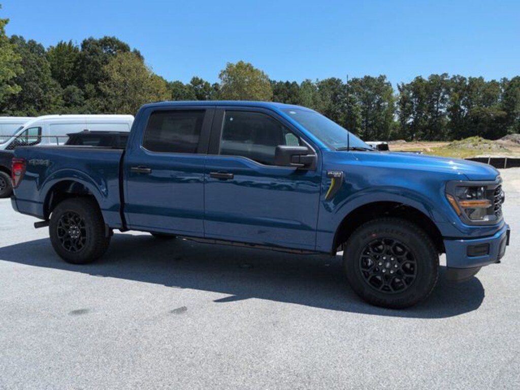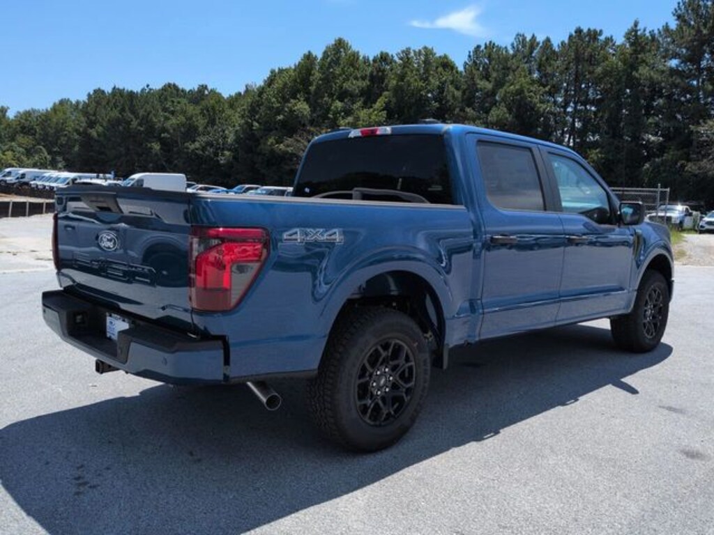 2025 Atlas Blue Metallic 2025 Ford F-150 STX CC STX 4D SuperCrew 4WD 2.7L V6 EcoBoost 4D SuperCrew, 2.7L V6 EcoBoost, 10-Speed Automatic, 4WD, 12" LCD Productivity Touchscreen, 5G WiFi Hotspot Telematics, Auto Emergency Braking, Auto LED Headlights, Backup Camera, Blind Spot Monitoring, BLIS w/ Cross Traffic Alert, Bluetooth w/ Audio Streaming, Equipment Group 200B Standard, GVWR: 6,650 lbs Payload Package, Lane Keeping System, Parking Sensors, Post Collision Braking, Power Mirror Package, Power Package, Pre Collision Assist w/ AEB, Reverse Brake Assist, Reverse Sensing, Spray-In Bedliner, Tow Package, Trailer Package. Equipment Group 200B Standard, GVWR: 6,650 lbs Payload Package, 4D SuperCrew, 2.7L V6 EcoBoost, 10-Speed Automatic, 4WD, 12" LCD Productivity Touchscreen, 5G WiFi Hotspot Telematics, Auto Emergency Braking, Auto LED Headlights, Backup Camera, Blind Spot Monitoring, BLIS w/ Cross Traffic Alert, Bluetooth w/ Audio Streaming, Lane Keeping System, Parking Sensors, Post Collision Braking, Power Mirror Package, Power Package, Pre Collision Assist w/ AEB, Reverse Brake Assist, Reverse Sensing, Spray-In Bedliner, Tow Package, Trailer Package, 3.55 Axle Ratio, 4-Wheel Disc Brakes, 6 Speakers, ABS brakes, Air Conditioning, Alloy wheels, AM/FM radio: SiriusXM with 360L, Auto High-beam Headlights, Brake assist, Bumpers: body-color, Compass, Delay-off headlights, Driver door bin, Dual front impact airbags, Dual front side impact airbags, Electronic Stability Control, Emergency communication system: SYNC 4 911 Assist, Front anti-roll bar, Front Bucket Seats, Front Center Armrest, Front License Plate Bracket, Front reading lights, Front wheel independent suspension, Fully automatic headlights, Heated door mirrors, Illuminated entry, Low tire pressure warning, Occupant sensing airbag, Outside temperature display, Overhead airbag, Overhead console, Panic alarm, Passenger door bin, Passenger vanity mirror, Power door mirrors, Power steering, Power windows, Radio data system, Radio: AM/FM Stereo w/SiriusXM 360L, Rear Parking Sensors, Rear step bumper, Rear window defroster, Remote keyless entry, Security system, Speed control, Split folding rear seat, Steering wheel mounted audio controls, SYNC 4 w/Enhanced Voice Recognition, Tachometer, Telescoping steering wheel, Tilt steering wheel, Traction control, Trip computer, Unique Sport Cloth 40/Console/40 Front-Seats, Variably intermittent wipers, Voltmeter, and Wheels: 18" Gloss Black.