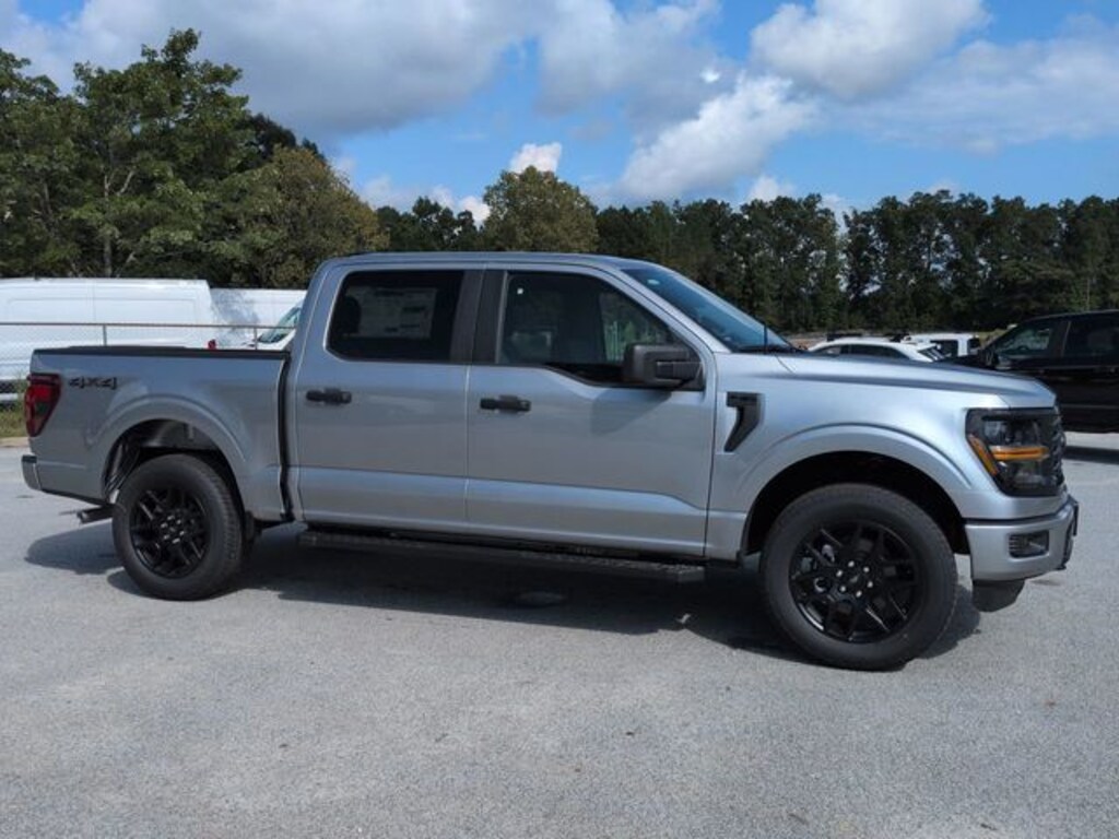 2025 Iconic Silver Metallic 2025 Ford F-150 STX STX 4D SuperCrew 4WD 2.7L V6 EcoBoost 4D SuperCrew, 2.7L V6 EcoBoost, 10-Speed Automatic, 4WD, 12" LCD Productivity Touchscreen, 20" Wheels, 5G WiFi Hotspot Telematics, 6" Black Running Boards, Auto Emergency Braking, Auto LED Headlights, Backup Camera, Black Exterior Badging, Blind Spot Monitoring, BLIS w/ Cross Traffic Alert, Bluetooth w/ Audio Streaming, Electronic Locking w/3.55 Axle Ratio, Equipment Group 200A Mid, Gray Box Side Decal, GVWR: 6,650 lbs Payload Package, Lane Tracing Assist, LED Fog Lamps w/LED Cornering Lamp, LED Foglights, Parking Sensors, Post Collision Braking, Power Mirror Package, Power Package, Pre Collision Assist w/ AEB, Reverse Brake Assist, Reverse Sensing, Spray-In Bedliner, STX Black Appearance Package, Tow Package, Trailer Package, Unique Sport Cloth 40/Console/40 Front-Seats, Wheels: 20" Dark Gray w/Machined Aluminum, Wheels: 20" Gloss Black. Equipment Group 200A Mid (LED Fog Lamps w/LED Cornering Lamp and Wheels: 20" Dark Gray w/Machined Aluminum), GVWR: 6,650 lbs Payload Package, STX Black Appearance Package (20" Wheels, 6" Black Running Boards, Black Exterior Badging, Gray Box Side Decal, Unique Sport Cloth 40/Console/40 Front-Seats, and Wheels: 20" Gloss Black), 4D SuperCrew, 2.7L V6 EcoBoost, 10-Speed Automatic, 4WD, 12" LCD Productivity Touchscreen, 5G WiFi Hotspot Telematics, Auto Emergency Braking, Auto LED Headlights, Backup Camera, Blind Spot Monitoring, BLIS w/ Cross Traffic Alert, Bluetooth w/ Audio Streaming, Electronic Locking w/3.55 Axle Ratio, Lane Tracing Assist, LED Foglights, Parking Sensors, Post Collision Braking, Power Mirror Package, Power Package, Pre Collision Assist w/ AEB, Reverse Brake Assist, Reverse Sensing, Spray-In Bedliner, Tow Package, Trailer Package, 4-Wheel Disc Brakes, 6 Speakers, ABS brakes, Air Conditioning, Alloy wheels, AM/FM radio: SiriusXM with 360L, Auto High-beam Headlights, Brake assist, Bumpers: body-color, Compass, Delay-off headlights, Driver door bin, Dual front impact airbags, Dual front side impact airbags, Electronic Stability Control, Emergency communication system: SYNC 4 911 Assist, Front anti-roll bar, Front Bucket Seats, Front Center Armrest, Front License Plate Bracket, Front reading lights, Front wheel independent suspension, Fully automatic headlights, Heated door mirrors, Illuminated entry, Low tire pressure warning, Occupant sensing airbag, Outside temperature display, Overhead airbag, Overhead console, Panic alarm, Passenger door bin, Passenger vanity mirror, Power door mirrors, Power steering, Power windows, Radio data system, Radio: AM/FM Stereo w/SiriusXM 360L, Rear Parking Sensors, Rear step bumper, Rear window defroster, Remote keyless entry, Security system, Speed control, Split folding rear seat, Steering wheel mounted audio controls, SYNC 4 w/Enhanced Voice Recognition, Tachometer, Telescoping steering wheel, Tilt steering wheel, Traction control, Trip computer, Variably intermittent wipers, Voltmeter, and Wheels: 18" Gloss Black.