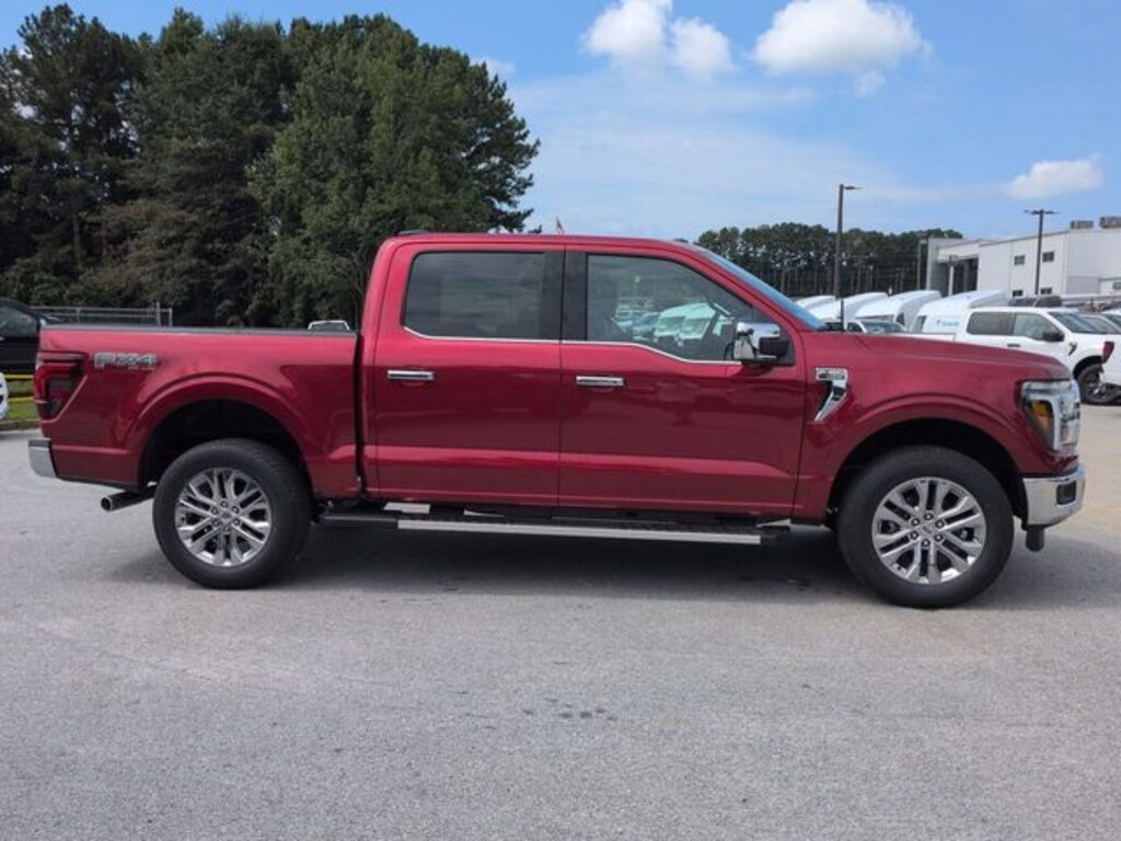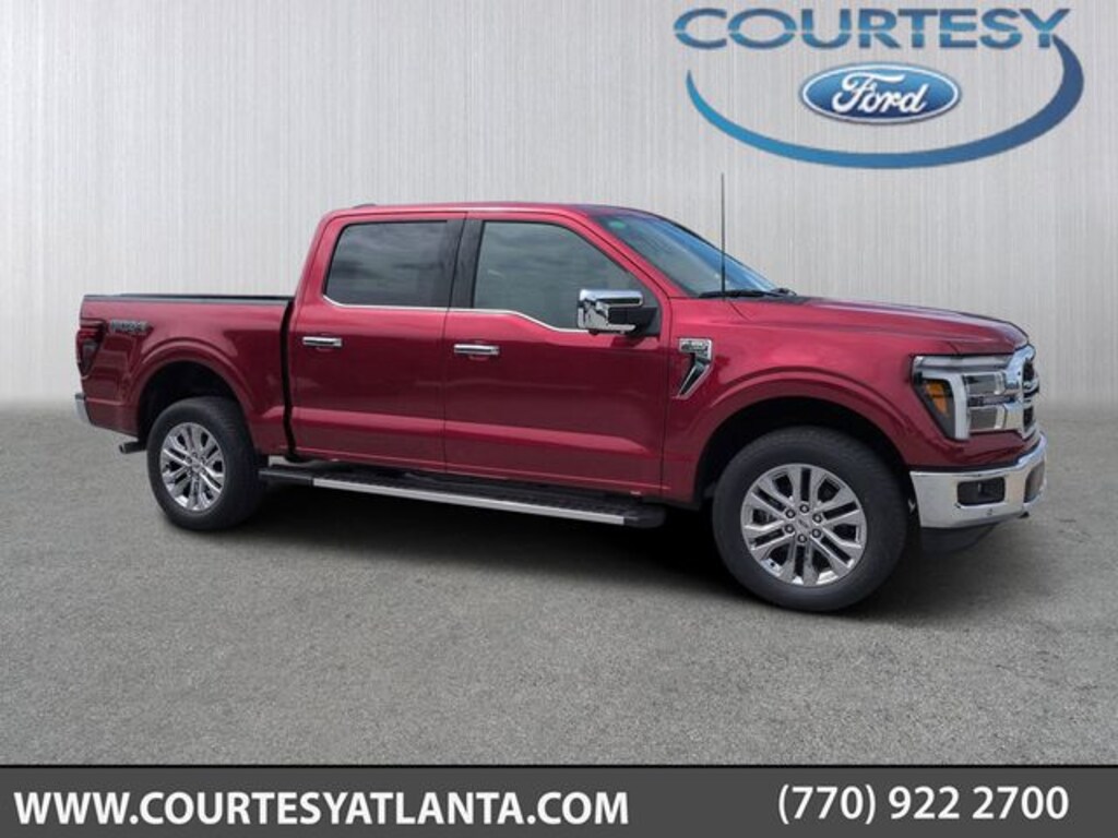 2025 Rapid Red Metallic Tinted Clearcoat 2025 Ford F-150 Lariat Lariat 4D SuperCrew 4WD 5.0L V8 4D SuperCrew, 5.0L V8, 10-Speed Automatic, 4WD, 12" LCD Productivity Touchscreen, 2nd Row Heated Seats, 360-Degree Camera, 4x4 FX4 Off-Road Bodyside Decal, 5G WiFi Hotspot Telematics, Adaptive Cruise Control, Ambient Lighting - Ice Blue Color Only, Auto Emergency Braking, Auto LED Headlights, Backup Camera, Blind Spot Monitoring, BLIS w/ Cross Traffic Alert, Bluetooth w/ Audio Streaming, Console Worksurface, Electronic Locking w/3.31 Axle Ratio, Equipment Group 502A High, FX4 Off-Road Package, Heads-Up Display, Hill Descent Control, Illuminated Driver & Passenger Visors, Integrated Trailer Brake Controller, Lane Keeping System, LED Foglights, LED Projector Headlights, Mobile Office Package, Monotube Rear Shocks, Off-Road Tuned Front Shock Absorbers, Parking Sensors, Partitioned Lockable Rear Storage, Post Collision Braking, Power-Sliding Rear Window, Pre Collision Assist w/ AEB, Premium Sound Package, Radio: B&O Unleashed Sound System by Bang & Olufsen, Reverse Brake Assist, Reverse Sensing, Rock Crawl Mode, Spray-In Bedliner, Tow Package, Tow/Haul Package, Trailer Package, Tray Style Floor Liner w/o Carpet Mats, Wheels: 20" Chrome-Like PVD, Wireless Charging, Wireless Charging Pad. Equipment Group 502A High (2nd Row Heated Seats, Ambient Lighting - Ice Blue Color Only, Heads-Up Display, Illuminated Driver & Passenger Visors, Power-Sliding Rear Window, Radio: B&O Unleashed Sound System by Bang & Olufsen, and Wheels: 20" Chrome-Like PVD), FX4 Off-Road Package (4x4 FX4 Off-Road Bodyside Decal, Electronic Locking w/3.31 Axle Ratio, Hill Descent Control, Monotube Rear Shocks, Off-Road Tuned Front Shock Absorbers, Rock Crawl Mode, and Tray Style Floor Liner w/o Carpet Mats), Mobile Office Package (Console Worksurface, Partitioned Lockable Rear Storage, and Wireless Charging), Tow/Haul Package (Integrated Trailer Brake Controller), 4D SuperCrew, 5.0L V8, 10-Speed Automatic, 4WD, 12" LCD Productivity Touchscreen, 360-Degree Camera, 5G WiFi Hotspot Telematics, Adaptive Cruise Control, Auto Emergency Braking, Auto LED Headlights, Backup Camera, Blind Spot Monitoring, BLIS w/ Cross Traffic Alert, Bluetooth w/ Audio Streaming, Lane Keeping System, LED Foglights, LED Projector Headlights, Parking Sensors, Post Collision Braking, Pre Collision Assist w/ AEB, Premium Sound Package, Reverse Brake Assist, Reverse Sensing, Spray-In Bedliner, Tow Package, Trailer Package, Wireless Charging Pad, 4-Wheel Disc Brakes, 8 Speakers, ABS brakes, ActiveX Trimmed Bucket Seats, ActiveX Trimmed Smoked Truffle Bucket Seats, Adjustable pedals, Air Conditioning, Alloy wheels, AM/FM radio: SiriusXM with 360L, Auto High-beam Headlights, Auto-dimming door mirrors, Auto-dimming Rear-View mirror, Automatic temperature control, Brake assist, Bumpers: chrome, Chrome wheels, Compass, Delay-off headlights, Driver door bin, Driver vanity mirror, Dual front impact airbags, Dual front side impact airbags, Electronic Stability Control, Emergency communication system: SYNC 4 911 Assist, Front anti-roll bar, Front Bucket Seats, Front Center Armrest, Front dual zone A/C, Front fog lights, Front reading lights, Front wheel independent suspension, Fully automatic headlights, Garage door transmitter, Heated door mirrors, Heated front seats, Heated steering wheel, Illuminated entry, Low tire pressure warning, Memory seat, Navigation system: Connected Navigation, Occupant sensing airbag, Outside temperature display, Overhead airbag, Overhead console, Panic alarm, Passenger door bin, Passenger vanity mirror, Pedal memory, Power door mirrors, Power driver seat, Power passenger seat, Power steering, Power windows, Radio data system, Rain sensing wipers, Rear reading lights, Rear seat center armrest, Rear step bumper