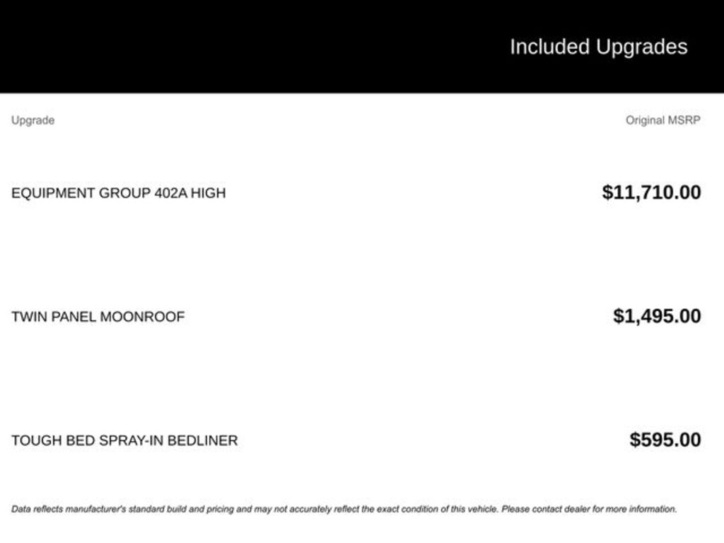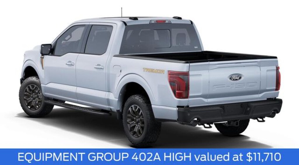 2025 Space White Metallic 2025 Ford F-150 Tremor Tremor 4D SuperCrew 4WD 5.0L V8 12" LCD Productivity Touchscreen, 5G WiFi Hotspot Telematics, Adaptive Cruise Control, Auto Emergency Braking, Auto LED Headlights, Backup Camera, Blind Spot Monitoring, BLIS w/ Cross Traffic Alert, BlueCruise, Bluetooth w/ Audio Streaming, Lane Keeping System, Leather Seats, LED Foglights, Off Road Package, Panoramic Sunroof/Moonroof, Parking Sensors, Post Collision Braking, Pre Collision Assist w/ AEB, Premium Sound Package, Reverse Brake Assist, Reverse Sensing, Skid Plate Package, Tow Package, Trailer Package, Wireless Charging Pad, 4D SuperCrew, 5.0L V8, 10-Speed Automatic, 4WD, 2nd Row Heated Seats, 4 Pickup Box Tie-Down Plates, Ambient Lighting, Auto-Dimming Rear-View Mirror, Bed Utility Package, Console Worksurface, Electronic Locking w/3.73 Axle Ratio, Equipment Group 402A High, Front Axle w/Torsen Differential, GVWR: 7,100 lbs Payload Package, Heads-Up Display, Heated Steering Wheel, Integrated Trailer Brake Controller, LED Box Lighting, LED Taillamps, Media Bin Door, Mobile Office Package, Modular Front Bumper & Carbon Black Rear Bumper, Navigation system: Connected Navigation, Partitioned Lockable Rear Storage, Power Glass Heated Sideview Mirrors, Power Tailgate, Power-Adjustable Pedals w/Memory, Premium Wrapped Steering Wheel, Radio: B&O Unleashed Sound System by Bang & Olufsen, Rain-Sensing Wipers, Tow/Haul Package, Two-Speed Automatic AWD w/Mechanical Locking 4WD, Unique Tremor Leather-Trimmed Bucket Seats, Universal Garage Door Opener, Wireless Charging. Bed Utility Package (4 Pickup Box Tie-Down Plates, LED Box Lighting, and Power Tailgate), Equipment Group 402A High (2nd Row Heated Seats, Ambient Lighting, Auto-Dimming Rear-View Mirror, Electronic Locking w/3.73 Axle Ratio, Front Axle w/Torsen Differential, Heads-Up Display, Heated Steering Wheel, LED Taillamps, Media Bin Door, Modular Front Bumper & Carbon Black Rear Bumper, Power Glass Heated Sideview Mirrors, Power-Adjustable Pedals w/Memory, Premium Wrapped Steering Wheel, Radio: B&O Unleashed Sound System by Bang & Olufsen, Rain-Sensing Wipers, Two-Speed Automatic AWD w/Mechanical Locking 4WD, Unique Tremor Leather-Trimmed Bucket Seats, and Universal Garage Door Opener), GVWR: 7,100 lbs Payload Package, Mobile Office Package (Console Worksurface, Partitioned Lockable Rear Storage, and Wireless Charging), Tow/Haul Package (Integrated Trailer Brake Controller), 4D SuperCrew, 5.0L V8, 10-Speed Automatic, 4WD, Navigation system: Connected Navigation, 4-Wheel Disc Brakes, 8 Speakers, ABS brakes, Adjustable pedals, Air Conditioning, Alloy wheels, Auto High-beam Headlights, Auto-dimming door mirrors, Auto-dimming Rear-View mirror, Automatic temperature control, Brake assist, Bumpers: body-color, Compass, Delay-off headlights, Driver door bin, Driver vanity mirror, Dual front impact airbags, Dual front side impact airbags, Electronic Stability Control, Emergency communication system: SYNC 4 911 Assist, Front anti-roll bar, Front Bucket Seats, Front Center Armrest, Front dual zone A/C, Front fog lights, Front License Plate Bracket, Front reading lights, Front wheel independent suspension, Fully automatic headlights, Heated door mirrors, Heated front seats, Illuminated entry, Low tire pressure warning, Occupant sensing airbag, Outside temperature display, Overhead airbag, Overhead console, Panic alarm, Passenger door bin, Passenger vanity mirror, Power door mirrors, Power driver seat, Power passenger seat, Power steering, Power windows, Radio data system, Radio: B&O Sound System by Bang & Olufsen, Rear reading lights, Rear step bumper, Rear window defroster, Remote keyless entry, Security system, Speed control, Split folding rear seat, Steering wheel mounted audio controls, SYNC 4 w/Enhanced Voice Recognition, Tachometer, Teles