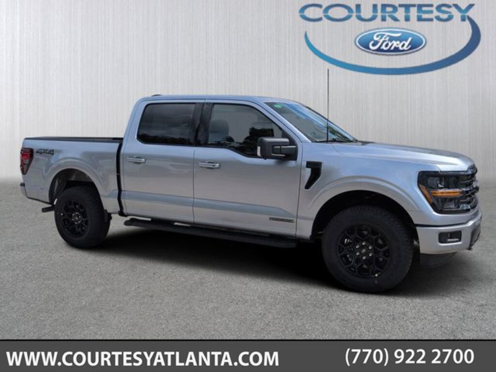 2025 Iconic Silver Metallic 2025 Ford F-150 XLT XLT 4D SuperCrew 4WD 3.5L PowerBoost Full-Hybrid V6 3.5L PowerBoost Full-Hybrid V6, 4WD, 12" LCD Productivity Touchscreen, 360 Degree Camera, 400W Cab & Bed Outlets, 5G WiFi Hotspot Telematics, 6" Angular Bright Anodized Step Bar, 6" Black Running Boards, Adaptive Cruise Control w/Stop & Go, Auto Emergency Braking, Auto LED Headlights, Auto-Dimming Rear-View Mirror, Backup Camera, Black Exterior Badging, Black Grille, Black Painted Grille w/Chrome Center Bar, Blind Spot Monitoring, BLIS w/ Cross Traffic Alert, Bluetooth w/ Audio Streaming, Body-Color Front & Rear Bumpers, Chrome Door & Tailgate Handles, Chrome Single-Tip Exhaust, Cloth 40/Console/40 Front Seats, Connected Navigation, Console Worksurface, Dark Interior Appliques, Driver State Detection, Dual-Zone Electronic Automatic Temperature Control, Electronic Locking w/3.73 Axle Ratio, Equipment Group 302A Mid, Evasive Steering Assist, Floor Shifter, Ford Co-Pilot360 Assist 2.0, Front Parking Sensors, Gray Box Side Decal, Heated Front Seats, Integrated Trailer Brake Controller, Intelligent Access w/Push Button Start, Lane Keeping System, Mobile Office Package, Parking Sensors, Partitioned Lockable Rear Storage, Post Collision Braking, Power Glass Heated Sideview Mirrors, Power Mirror Package, Power Package, Power Sliding Doors, Power-Sliding Rear Window, Pre Collision Assist w/ AEB, Remote Start System w/Remote Tailgate Release, Reverse Brake Assist, Reverse Sensing, Tow Package, Tow/Haul Package, Towing Technology, Trailer Package, Unique Sport Cloth 40/Console/40 Front-Seats, Wheels: 18" Gloss Black, Wireless Charging Pad, Wrapped Steering Wheel, XLT Black Appearance Package, XLT Package. Equipment Group 302A Mid (360 Degree Camera, 400W Cab & Bed Outlets, 6" Angular Bright Anodized Step Bar, Adaptive Cruise Control w/Stop & Go, Auto-Dimming Rear-View Mirror, Black Painted Grille w/Chrome Center Bar, Chrome Door & Tailgate Handles, Chrome Single-Tip Exhaust, Cloth 40/Console/40 Front Seats, Connected Navigation, Driver State Detection, Dual-Zone Electronic Automatic Temperature Control, Evasive Steering Assist, Ford Co-Pilot360 Assist 2.0, Front Parking Sensors, Heated Front Seats, Intelligent Access w/Push Button Start, Power Glass Heated Sideview Mirrors, Power-Sliding Rear Window, Remote Start System w/Remote Tailgate Release, Towing Technology, and Wrapped Steering Wheel), Mobile Office Package (Console Worksurface and Partitioned Lockable Rear Storage), Tow/Haul Package (Integrated Trailer Brake Controller), XLT Black Appearance Package (6" Black Running Boards, Black Exterior Badging, Black Grille, Body-Color Front & Rear Bumpers, Dark Interior Appliques, Floor Shifter, Gray Box Side Decal, Unique Sport Cloth 40/Console/40 Front-Seats, and Wheels: 18" Gloss Black), 3.5L PowerBoost Full-Hybrid V6, 4WD, 12" LCD Productivity Touchscreen, 5G WiFi Hotspot Telematics, Auto Emergency Braking, Auto LED Headlights, Backup Camera, Blind Spot Monitoring, BLIS w/ Cross Traffic Alert, Bluetooth w/ Audio Streaming, Electronic Locking w/3.73 Axle Ratio, Lane Keeping System, Parking Sensors, Post Collision Braking, Power Mirror Package, Power Package, Power Sliding Doors, Pre Collision Assist w/ AEB, Reverse Brake Assist, Reverse Sensing, Tow Package, Trailer Package, Wireless Charging Pad, XLT Package, 4-Wheel Disc Brakes, 6 Speakers, ABS brakes, Air Conditioning, Alloy wheels, AM/FM radio: SiriusXM with 360L, Auto High-beam Headlights, BlueCruise (Equipment + 1-Year Plan), Brake assist, Bumpers: chrome, Chrome wheels, Cloth 40/20/40 Front Seat, Compass, Delay-off headlights, Driver door bin, Driver vanity mirror, Dual front impact airbags, Dual front side impact airbags, Electronic Stability Control, Emergency communication system: SYNC 4 911 Assist, Front anti-roll bar, Fro