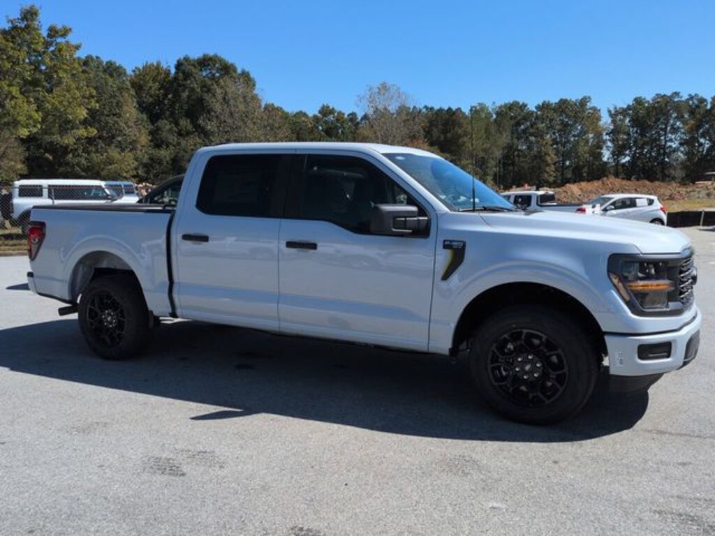 2025 Space White Metallic 2025 Ford F-150 STX STX 4D SuperCrew RWD 2.7L V6 EcoBoost 4D SuperCrew, 2.7L V6 EcoBoost, 10-Speed Automatic, RWD, 12" LCD Productivity Touchscreen, 5G WiFi Hotspot Telematics, Auto Emergency Braking, Auto LED Headlights, Backup Camera, Blind Spot Monitoring, BLIS w/ Cross Traffic Alert, Bluetooth w/ Audio Streaming, Equipment Group 200B Standard, GVWR: 6,426 lbs Payload Package, Lane Keeping System, Parking Sensors, Post Collision Braking, Power Mirror Package, Power Package, Pre Collision Assist w/ AEB, Reverse Brake Assist, Reverse Sensing, Spray-In Bedliner, Tow Package, Trailer Package. Equipment Group 200B Standard, GVWR: 6,426 lbs Payload Package, 4D SuperCrew, 2.7L V6 EcoBoost, 10-Speed Automatic, RWD, 12" LCD Productivity Touchscreen, 5G WiFi Hotspot Telematics, Auto Emergency Braking, Auto LED Headlights, Backup Camera, Blind Spot Monitoring, BLIS w/ Cross Traffic Alert, Bluetooth w/ Audio Streaming, Lane Keeping System, Parking Sensors, Post Collision Braking, Power Mirror Package, Power Package, Pre Collision Assist w/ AEB, Reverse Brake Assist, Reverse Sensing, Spray-In Bedliner, Tow Package, Trailer Package, 3.55 Axle Ratio, 4-Wheel Disc Brakes, 6 Speakers, ABS brakes, Air Conditioning, Alloy wheels, AM/FM radio: SiriusXM with 360L, Auto High-beam Headlights, Brake assist, Bumpers: body-color, Compass, Delay-off headlights, Driver door bin, Dual front impact airbags, Dual front side impact airbags, Electronic Stability Control, Emergency communication system: SYNC 4 911 Assist, Front anti-roll bar, Front Bucket Seats, Front Center Armrest, Front reading lights, Front wheel independent suspension, Fully automatic headlights, Heated door mirrors, Illuminated entry, Low tire pressure warning, Occupant sensing airbag, Outside temperature display, Overhead airbag, Overhead console, Panic alarm, Passenger door bin, Passenger vanity mirror, Power door mirrors, Power steering, Power windows, Radio data system, Radio: AM/FM Stereo w/SiriusXM 360L, Rear Parking Sensors, Rear step bumper, Rear window defroster, Remote keyless entry, Security system, Speed control, Split folding rear seat, Steering wheel mounted audio controls, SYNC 4 w/Enhanced Voice Recognition, Tachometer, Telescoping steering wheel, Tilt steering wheel, Traction control, Trip computer, Variably intermittent wipers, Voltmeter, and Wheels: 18" Gloss Black.