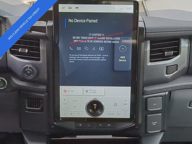2025 Antimatter Blue Metallic 2025 Ford F-150 Lightning Flash Flash 4D Crew Cab AWD Electric Motor 12" LCD Productivity Touchscreen, 15.5" Color Touchscreen, Android Auto, Apple Carplay, Auto Emergency Braking, Auto LED Headlights, Backup Camera, Bluetooth w/ Audio Streaming, Evasive Steering Assist, Front & Rear Park Assist, Lane Keeping System, LED Foglights, LED Projector Headlights, Parking Sensors, Power Mirror Package, Power Package, Pre Collision Assist w/ AEB, Push Button Start, Spray-In Bedliner, 4D Crew Cab, Electric Motor, Single-Speed Automatic, AWD, Equipment Group 312A Standard, Mobile Power Cord (120/240V), Navigation system: Connected Navigation. Equipment Group 312A Standard, 4D Crew Cab, Electric Motor, Single-Speed Automatic, AWD, Mobile Power Cord (120/240V), Navigation system: Connected Navigation, 4-Wheel Disc Brakes, 8 Speakers, ABS brakes, ActiveX Trimmed Heated Front Seats, Adjustable pedals, Air Conditioning, Alloy wheels, Auto High-beam Headlights, Auto-dimming Rear-View mirror, Automatic temperature control, Brake assist, Bumpers: body-color, Compass, Delay-off headlights, Driver door bin, Driver vanity mirror, Dual front impact airbags, Dual front side impact airbags, Electronic Stability Control, Emergency communication system: SYNC 4 911 Assist, Four wheel independent suspension, Front anti-roll bar, Front Bucket Seats, Front Center Armrest, Front dual zone A/C, Front reading lights, Fully automatic headlights, Heated door mirrors, Heated front seats, Heated steering wheel, Illuminated entry, Knee airbag, Low tire pressure warning, Occupant sensing airbag, Outside temperature display, Overhead airbag, Overhead console, Panic alarm, Passenger door bin, Passenger vanity mirror, Power door mirrors, Power driver seat, Power passenger seat, Power steering, Power windows, Radio data system, Radio: B&O Sound System by Bang & Olufsen, Rear anti-roll bar, Rear reading lights, Rear step bumper, Rear window defroster, Remote keyless entry, Security system, Speed control, Speed-sensing steering, Split folding rear seat, Steering wheel mounted audio controls, SYNC 4A w/Enhanced Voice Recognition, Telescoping steering wheel, Tilt steering wheel, Traction control, Trip computer, Turn signal indicator mirrors, Variably intermittent wipers, and Wheels: 20" Alloy Dark Carbonized Gray. $1,000 - Exp. 12/31/2026 Retail Trade Assistance. Must trade in a vehicle to qualify $1,000 - Exp. 12/31/2026 Dealer Finance Assistance. Must finance through dealer lender to qualify.
