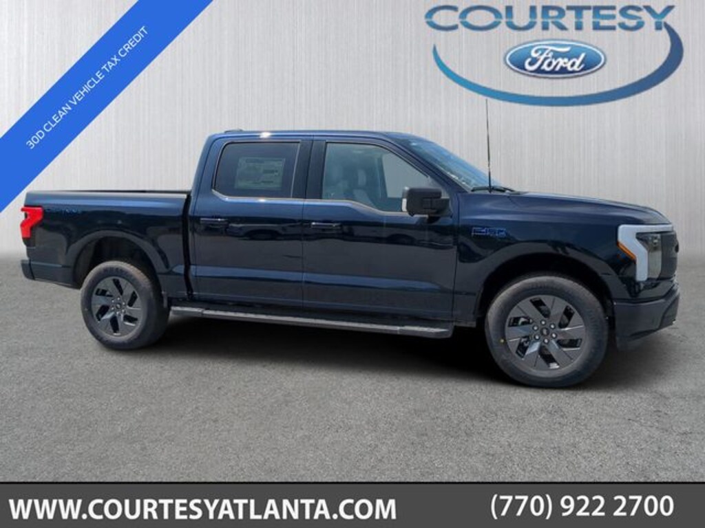 2025 Antimatter Blue Metallic 2025 Ford F-150 Lightning Flash Flash 4D Crew Cab AWD Electric Motor 12" LCD Productivity Touchscreen, 15.5" Color Touchscreen, Android Auto, Apple Carplay, Auto Emergency Braking, Auto LED Headlights, Backup Camera, Bluetooth w/ Audio Streaming, Evasive Steering Assist, Front & Rear Park Assist, Lane Keeping System, LED Foglights, LED Projector Headlights, Parking Sensors, Power Mirror Package, Power Package, Pre Collision Assist w/ AEB, Push Button Start, Spray-In Bedliner, 4D Crew Cab, Electric Motor, Single-Speed Automatic, AWD, Equipment Group 312A Standard, Mobile Power Cord (120/240V), Navigation system: Connected Navigation. Equipment Group 312A Standard, 4D Crew Cab, Electric Motor, Single-Speed Automatic, AWD, Mobile Power Cord (120/240V), Navigation system: Connected Navigation, 4-Wheel Disc Brakes, 8 Speakers, ABS brakes, ActiveX Trimmed Heated Front Seats, Adjustable pedals, Air Conditioning, Alloy wheels, Auto High-beam Headlights, Auto-dimming Rear-View mirror, Automatic temperature control, Brake assist, Bumpers: body-color, Compass, Delay-off headlights, Driver door bin, Driver vanity mirror, Dual front impact airbags, Dual front side impact airbags, Electronic Stability Control, Emergency communication system: SYNC 4 911 Assist, Four wheel independent suspension, Front anti-roll bar, Front Bucket Seats, Front Center Armrest, Front dual zone A/C, Front reading lights, Fully automatic headlights, Heated door mirrors, Heated front seats, Heated steering wheel, Illuminated entry, Knee airbag, Low tire pressure warning, Occupant sensing airbag, Outside temperature display, Overhead airbag, Overhead console, Panic alarm, Passenger door bin, Passenger vanity mirror, Power door mirrors, Power driver seat, Power passenger seat, Power steering, Power windows, Radio data system, Radio: B&O Sound System by Bang & Olufsen, Rear anti-roll bar, Rear reading lights, Rear step bumper, Rear window defroster, Remote keyless entry, Security system, Speed control, Speed-sensing steering, Split folding rear seat, Steering wheel mounted audio controls, SYNC 4A w/Enhanced Voice Recognition, Telescoping steering wheel, Tilt steering wheel, Traction control, Trip computer, Turn signal indicator mirrors, Variably intermittent wipers, and Wheels: 20" Alloy Dark Carbonized Gray.