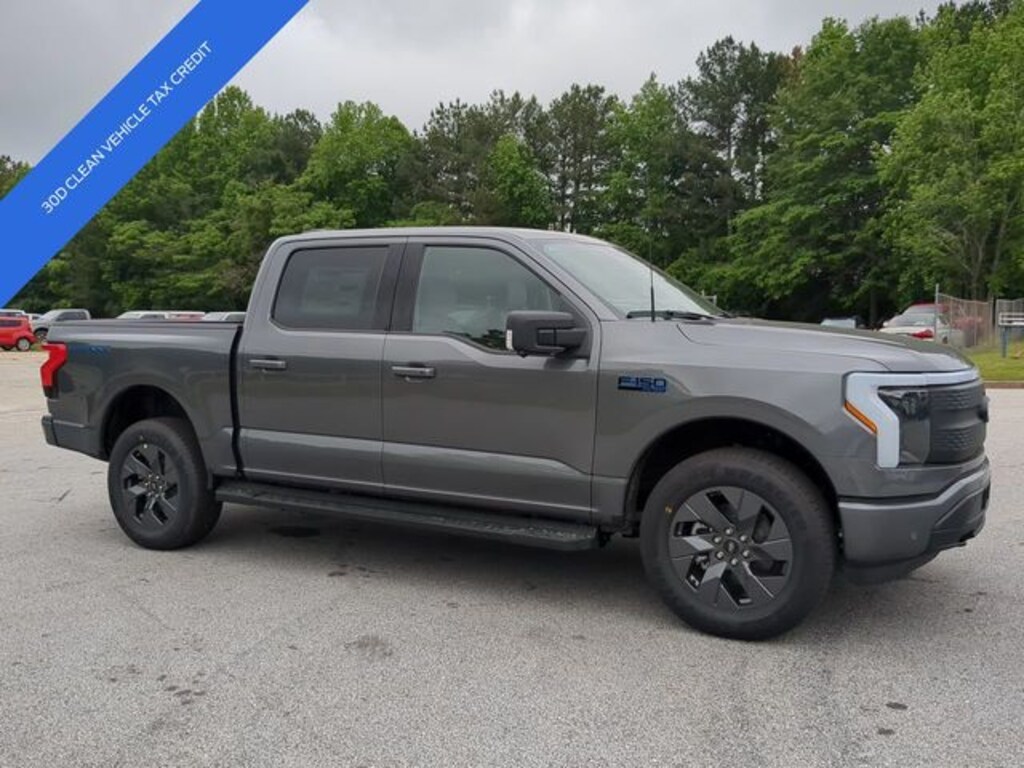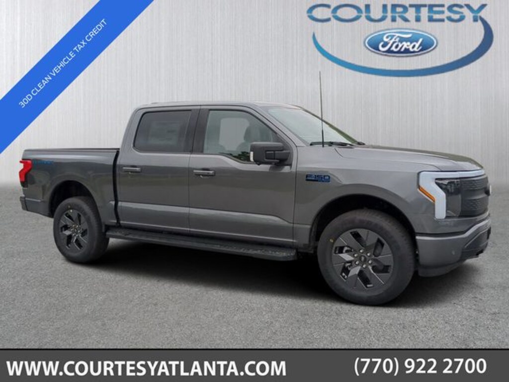 2025 Carbonized Gray Metallic 2025 Ford F-150 Lightning Flash Flash 4D Crew Cab AWD Electric Motor Adaptive Cruise Control, Android Auto, Apple Carplay, Auto Emergency Braking, Auto LED Headlights, Backup Camera, Blind Spot Monitoring, BLIS w/ Cross Traffic Alert, Bluetooth w/ Audio Streaming, Evasive Steering Assist, Front & Rear Park Assist, Lane Keeping System, LED Projector Headlights, Parking Sensors, Pre Collision Assist w/ AEB, Premium Sound Package, Push Button Start, Spray-In Bedliner, Tow Package, Trailer Package, 4D Crew Cab, Electric Motor, Single-Speed Automatic, AWD, Equipment Group 312A Standard, Mobile Power Cord (120/240V), Navigation system: Connected Navigation, Pro Power Onboard - 9.6 kW Exportable Power, Radio: B&O Sound System by Bang & Olufsen, SYNC 4A w/Enhanced Voice Recognition, Wheels: 20" Alloy Dark Carbonized Gray. Equipment Group 312A Standard, 4D Crew Cab, Electric Motor, Single-Speed Automatic, AWD, Mobile Power Cord (120/240V), Navigation system: Connected Navigation, Pro Power Onboard - 9.6 kW Exportable Power, Radio: B&O Sound System by Bang & Olufsen, SYNC 4A w/Enhanced Voice Recognition, Wheels: 20" Alloy Dark Carbonized Gray, 4-Wheel Disc Brakes, 8 Speakers, ABS brakes, ActiveX Trimmed Heated Front Seats, Adjustable pedals, Air Conditioning, Alloy wheels, Auto High-beam Headlights, Auto-dimming Rear-View mirror, Automatic temperature control, Brake assist, Bumpers: body-color, Compass, Delay-off headlights, Driver door bin, Driver vanity mirror, Dual front impact airbags, Dual front side impact airbags, Electronic Stability Control, Emergency communication system: SYNC 4 911 Assist, Four wheel independent suspension, Front anti-roll bar, Front Bucket Seats, Front Center Armrest, Front dual zone A/C, Front reading lights, Fully automatic headlights, Heated door mirrors, Heated front seats, Heated steering wheel, Illuminated entry, Knee airbag, Low tire pressure warning, Occupant sensing airbag, Outside temperature display, Overhead airbag, Overhead console, Panic alarm, Passenger door bin, Passenger vanity mirror, Power door mirrors, Power driver seat, Power passenger seat, Power steering, Power windows, Radio data system, Rear anti-roll bar, Rear reading lights, Rear step bumper, Rear window defroster, Remote keyless entry, Security system, Speed control, Speed-sensing steering, Split folding rear seat, Steering wheel mounted audio controls, Telescoping steering wheel, Tilt steering wheel, Traction control, Trip computer, Turn signal indicator mirrors, and Variably intermittent wipers.