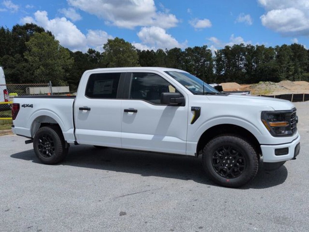 2025 Oxford White 2025 Ford F-150 STX CC STX 4D SuperCrew 4WD 2.7L V6 EcoBoost 12" LCD Productivity Touchscreen, 5G WiFi Hotspot Telematics, Auto Emergency Braking, Auto LED Headlights, Backup Camera, Blind Spot Monitoring, BLIS w/ Cross Traffic Alert, Bluetooth w/ Audio Streaming, Lane Keeping System, Parking Sensors, Post Collision Braking, Pre Collision Assist w/ AEB, Reverse Brake Assist, Reverse Sensing, Tow Package, Trailer Package, 4D SuperCrew, 2.7L V6 EcoBoost, 10-Speed Automatic, 4WD, Equipment Group 200B Standard, GVWR: 6,650 lbs Payload Package. Equipment Group 200B Standard, GVWR: 6,650 lbs Payload Package, 4D SuperCrew, 2.7L V6 EcoBoost, 10-Speed Automatic, 4WD, 3.55 Axle Ratio, 4-Wheel Disc Brakes, 6 Speakers, ABS brakes, Air Conditioning, Alloy wheels, Auto High-beam Headlights, Brake assist, Bumpers: body-color, Compass, Delay-off headlights, Driver door bin, Dual front impact airbags, Dual front side impact airbags, Electronic Stability Control, Emergency communication system: SYNC 4 911 Assist, Front anti-roll bar, Front Bucket Seats, Front Center Armrest, Front reading lights, Front wheel independent suspension, Fully automatic headlights, Heated door mirrors, Illuminated entry, Low tire pressure warning, Occupant sensing airbag, Outside temperature display, Overhead airbag, Overhead console, Panic alarm, Passenger door bin, Passenger vanity mirror, Power door mirrors, Power steering, Power windows, Radio data system, Rear Parking Sensors, Rear step bumper, Rear window defroster, Remote keyless entry, Security system, Speed control, Split folding rear seat, Steering wheel mounted audio controls, SYNC 4 w/Enhanced Voice Recognition, Tachometer, Telescoping steering wheel, Tilt steering wheel, Tough Bed Spray-In Bedliner, Traction control, Trip computer, Unique Sport Cloth 40/Console/40 Front-Seats, Variably intermittent wipers, Voltmeter, and Wheels: 18" Gloss Black.