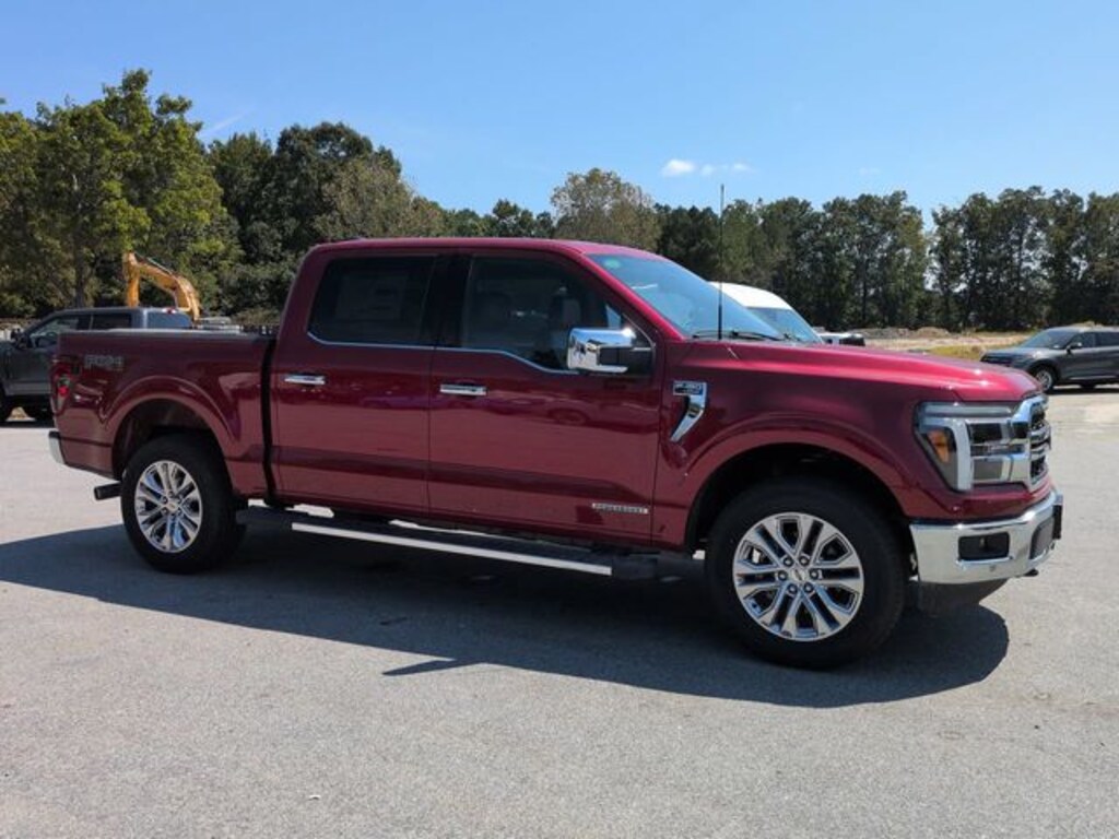 2025 Rapid Red Metallic Tinted Clearcoat 2025 Ford F-150 Lariat Lariat 4D SuperCrew 4WD 3.5L PowerBoost Full-Hybrid V6 12" LCD Productivity Touchscreen, 360-Degree Camera, 5G WiFi Hotspot Telematics, Adaptive Cruise Control, Auto Emergency Braking, Auto LED Headlights, Backup Camera, Blind Spot Monitoring, BLIS w/ Cross Traffic Alert, Bluetooth w/ Audio Streaming, Lane Keeping System, Lariat Package, Off Road Package, Parking Sensors, Post Collision Braking, Pre Collision Assist w/ AEB, Push Button Start, Reverse Brake Assist, Reverse Sensing, Tow Package, Trailer Package, Wireless Charging Pad, 4D SuperCrew, 3.5L PowerBoost Full-Hybrid V6, 10-Speed Automatic, 4WD, 4 Pickup Box Tie-Down Plates, 4-Wheel Disc Brakes, 4x4 FX4 Off-Road Bodyside Decal, ABS brakes, Auto High-beam Headlights, Automatic temperature control, Bed Utility Package, Brake assist, Console Worksurface, Delay-off headlights, Electronic Locking w/3.31 Axle Ratio, Electronic Stability Control, Emergency communication system: SYNC 4 911 Assist, Front dual zone A/C, Front fog lights, Front wheel independent suspension, Fully automatic headlights, FX4 Off-Road Package, Hill Descent Control, Integrated Trailer Brake Controller, LED Box Lighting, Low tire pressure warning, Memory seat, Mobile Office Package, Monotube Rear Shocks, Navigation system: Connected Navigation, Off-Road Tuned Front Shock Absorbers, Partitioned Lockable Rear Storage, Pedal memory, Power Tailgate, Pro Access Tailgate, Radio data system, Radio: B&O Sound System by Bang & Olufsen, Remote keyless entry, Rock Crawl Mode, Steering wheel mounted audio controls, SYNC 4 w/Enhanced Voice Recognition, Tow/Haul Package, Tray Style Floor Liner w/o Carpet Mats, Wireless Charging. Bed Utility Package (4 Pickup Box Tie-Down Plates, LED Box Lighting, Power Tailgate, and Pro Access Tailgate), FX4 Off-Road Package (4x4 FX4 Off-Road Bodyside Decal, Electronic Locking w/3.31 Axle Ratio, Hill Descent Control, Monotube Rear Shocks, Off-Road Tuned Front Shock Absorbers, Rock Crawl Mode, and Tray Style Floor Liner w/o Carpet Mats), Mobile Office Package (Console Worksurface, Partitioned Lockable Rear Storage, and Wireless Charging), Tow/Haul Package (Integrated Trailer Brake Controller), 4D SuperCrew, 3.5L PowerBoost Full-Hybrid V6, 10-Speed Automatic, 4WD, 4-Wheel Disc Brakes, ABS brakes, Auto High-beam Headlights, Automatic temperature control, Brake assist, Delay-off headlights, Electronic Stability Control, Emergency communication system: SYNC 4 911 Assist, Front dual zone A/C, Front fog lights, Front wheel independent suspension, Fully automatic headlights, Low tire pressure warning, Memory seat, Navigation system: Connected Navigation, Pedal memory, Radio data system, Radio: B&O Sound System by Bang & Olufsen, Remote keyless entry, Steering wheel mounted audio controls, SYNC 4 w/Enhanced Voice Recognition, 8 Speakers, Adjustable pedals, Air Conditioning, Alloy wheels, Auto-dimming door mirrors, Auto-dimming Rear-View mirror, Bumpers: chrome, Chrome wheels, Compass, Driver door bin, Driver vanity mirror, Dual front impact airbags, Dual front side impact airbags, Front anti-roll bar, Front Bucket Seats, Front Center Armrest, Front License Plate Bracket, Front reading lights, Garage door transmitter, Heated door mirrors, Heated front seats, Heated steering wheel, Illuminated entry, Occupant sensing airbag, Outside temperature display, Overhead airbag, Overhead console, Panic alarm, Passenger door bin, Passenger vanity mirror, Power door mirrors, Power driver seat, Power passenger seat, Power steering, Power windows, Rain sensing wipers, Rear reading lights, Rear seat center armrest, Rear step bumper, Rear window defroster, Security system, Speed control, Split folding rear seat, Tachometer, Telescoping steering wheel, Tilt steering wheel, Tr