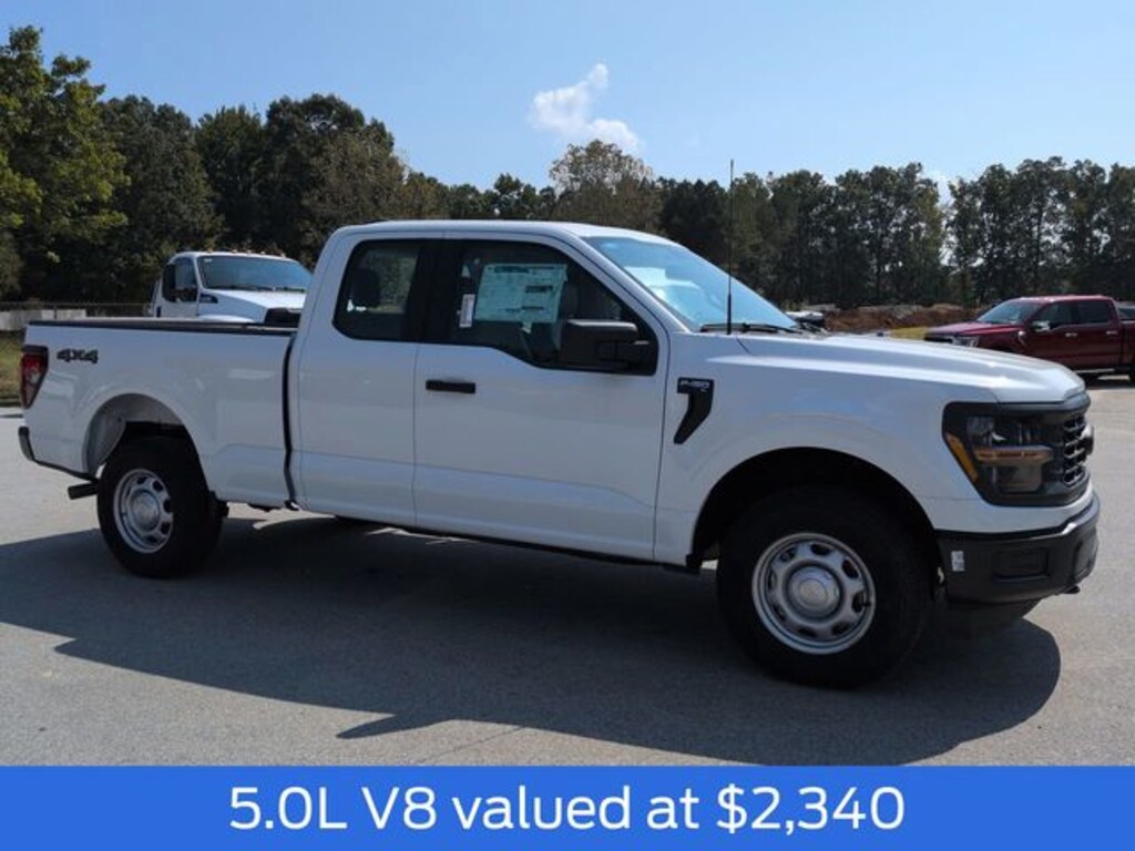 2025 Oxford White 2025 Ford F-150 XL XL Super Cab 4WD 5.0L V8 Super Cab, 5.0L V8, 10-Speed Automatic, 4WD, 12" LCD Productivity Touchscreen, 5G WiFi Hotspot Telematics, Auto Emergency Braking, Auto LED Headlights, Backup Camera, Blind Spot Monitoring, BLIS w/ Cross Traffic Alert, Bluetooth w/ Audio Streaming, Electronic Locking w/3.73 Axle Ratio, GVWR: 6,550 lbs Payload Package, Lane Keeping System, Parking Sensors, Post Collision Braking, Pre Collision Assist w/ AEB, Reverse Brake Assist, Reverse Sensing, Tow Package, Trailer Package. GVWR: 6,550 lbs Payload Package, Equipment Group 101A Standard, Super Cab, 5.0L V8, 10-Speed Automatic, 4WD, 12" LCD Productivity Touchscreen, 5G WiFi Hotspot Telematics, Auto Emergency Braking, Auto LED Headlights, Backup Camera, Blind Spot Monitoring, BLIS w/ Cross Traffic Alert, Bluetooth w/ Audio Streaming, Electronic Locking w/3.73 Axle Ratio, Lane Keeping System, Parking Sensors, Post Collision Braking, Pre Collision Assist w/ AEB, Reverse Brake Assist, Reverse Sensing, Tow Package, Trailer Package, 4-Wheel Disc Brakes, 6 Speakers, ABS brakes, Air Conditioning, AM/FM radio: SiriusXM with 360L, Auto High-beam Headlights, Brake assist, Cloth 40/20/40 Front Seat, Compass, Delay-off headlights, Driver door bin, Dual front impact airbags, Dual front side impact airbags, Electronic Stability Control, Emergency communication system: SYNC 4 911 Assist, Front anti-roll bar, Front Center Armrest, Front reading lights, Front wheel independent suspension, Fully automatic headlights, Heated door mirrors, Illuminated entry, Low tire pressure warning, Occupant sensing airbag, Outside temperature display, Overhead airbag, Overhead console, Panic alarm, Passenger door bin, Passenger vanity mirror, Power door mirrors, Power steering, Power windows, Radio data system, Radio: AM/FM Stereo w/SiriusXM 360L, Rear Parking Sensors, Rear step bumper, Remote keyless entry, Security system, Speed control, Split folding rear seat, Steering wheel mounted audio controls, SYNC 4 w/Enhanced Voice Recognition, Tachometer, Telescoping steering wheel, Tilt steering wheel, Traction control, Trip computer, Variably intermittent wipers, Voltmeter, and Wheels: 17" Silver Steel.