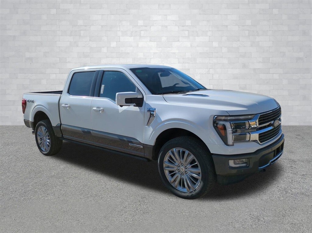 2025 Star White Metallic Tri-Coat 2025 Ford F-150 King Ranch 4WD 3.5L PowerBoost Full-Hybrid V6 12" LCD Productivity Touchscreen, 360-Degree Camera, 5G WiFi Hotspot Telematics, Adaptive Cruise Control, Auto Emergency Braking, Auto LED Headlights, Backup Camera, Blind Spot Monitoring, BLIS w/ Cross Traffic Alert, Bluetooth w/ Audio Streaming, King Ranch Package, Lane Keeping System, Leather Seats, LED Foglights, LED Projector Headlights, Memory Package, Parking Sensors, Post Collision Braking, Power Mirror Package, Power Package, Power Running Boards, Power Sliding Rear Window, Pre Collision Assist w/ AEB, Reverse Brake Assist, Reverse Sensing, Tow Package, Trailer Package, 4D SuperCrew, 3.5L PowerBoost Full-Hybrid V6, 10-Speed Automatic, 4WD, Electronic Locking w/3.73 Axle Ratio, Equipment Group 601A High, Heads-Up Display, Navigation system: Connected Navigation, Radio: B&O Unleashed Sound System by Bang & Olufsen, Rain sensing wipers, SYNC 4 w/Enhanced Voice Recognition. Equipment Group 601A High, 4D SuperCrew, 3.5L PowerBoost Full-Hybrid V6, 10-Speed Automatic, 4WD, Electronic Locking w/3.73 Axle Ratio, Heads-Up Display, Navigation system: Connected Navigation, Radio: B&O Unleashed Sound System by Bang & Olufsen, Rain sensing wipers, SYNC 4 w/Enhanced Voice Recognition, 14 Speakers, 4-Wheel Disc Brakes, ABS brakes, Adjustable pedals, Air Conditioning, Alloy wheels, AM/FM radio: SiriusXM with 360L, Auto High-beam Headlights, Auto tilt-away steering wheel, Auto-dimming door mirrors, Auto-dimming Rear-View mirror, Automatic temperature control, Brake assist, Chrome wheels, Compass, Delay-off headlights, Driver door bin, Driver vanity mirror, Dual front impact airbags, Dual front side impact airbags, Electronic Stability Control, Emergency communication system: SYNC 4 911 Assist, Front anti-roll bar, Front Bucket Seats, Front Center Armrest, Front dual zone A/C, Front fog lights, Front reading lights, Front wheel independent suspension, Fully automatic headlights, Garage door transmitter, Genuine wood dashboard insert, Heated door mirrors, Heated front seats, Heated rear seats, Heated steering wheel, Illuminated entry, King Ranch Multicontour Leather Bucket Seats, Leather steering wheel, Low tire pressure warning, Memory seat, Occupant sensing airbag, Outside temperature display, Overhead airbag, Overhead console, Panic alarm, Passenger door bin, Passenger vanity mirror, Pedal memory, Power door mirrors, Power driver seat, Power moonroof, Power passenger seat, Power steering, Power windows, Radio data system, Rear reading lights, Rear seat center armrest, Rear step bumper, Rear window defroster, Remote keyless entry, Security system, Speed control, Split folding rear seat, Steering wheel memory, Steering wheel mounted audio controls, Tachometer, Telescoping steering wheel, Tilt steering wheel, Traction control, Trip computer, Turn signal indicator mirrors, Variably intermittent wipers, Ventilated front seats, Voltmeter, and Wheels: 20" Chrome-Like PVD Courtesy Ford and Lincoln of Rome 101 Hwy 411 E Rome, Ga 30161 ROMEFORDLINC.COM 706.235.4453. Price includes dealer added accessories.