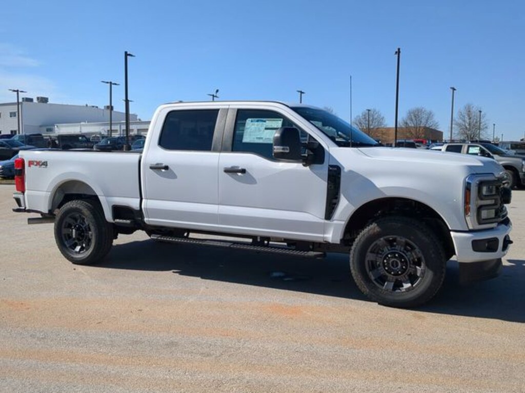 2025 Oxford White 2025 Ford F-250SD XL XL 4D Crew Cab 4WD 6.8L V8 Spray-In Bedliner, 4D Crew Cab, 6.8L V8, 10-Speed Automatic, 4WD, ABS brakes, Compass, Electronic Stability Control, Heated door mirrors, Illuminated entry, Low tire pressure warning, Remote keyless entry, Traction control. GVWR: 10,000 lb Payload Package, 4D Crew Cab, 6.8L V8, 10-Speed Automatic, 4WD, ABS brakes, Compass, Electronic Stability Control, Heated door mirrors, Illuminated entry, Low tire pressure warning, Remote keyless entry, Traction control, 17" Argent Painted Steel Wheels, 3.73 Axle Ratio, 4-Wheel Disc Brakes, 6 Speakers, Air Conditioning, AM/FM radio, AM/FM Stereo w/MP3 Player, Brake assist, Delay-off headlights, Dual front impact airbags, Dual front side impact airbags, Emergency communication system: SYNC 4 911 Assist, Exterior Parking Camera Rear, Front anti-roll bar, Front Center Armrest w/Storage, Front reading lights, Fully automatic headlights, HD Vinyl 40/20/40 Split Bench Seat, Outside temperature display, Overhead airbag, Overhead console, Panic alarm, Passenger vanity mirror, Power door mirrors, Power steering, Power windows, Rear reading lights, Rear step bumper, Security system, Speed control, Split folding rear seat, Steering wheel mounted audio controls, SYNC 4, Tachometer, Telescoping steering wheel, Tilt steering wheel, Trip computer, Turn signal indicator mirrors, and Variably intermittent wipers.